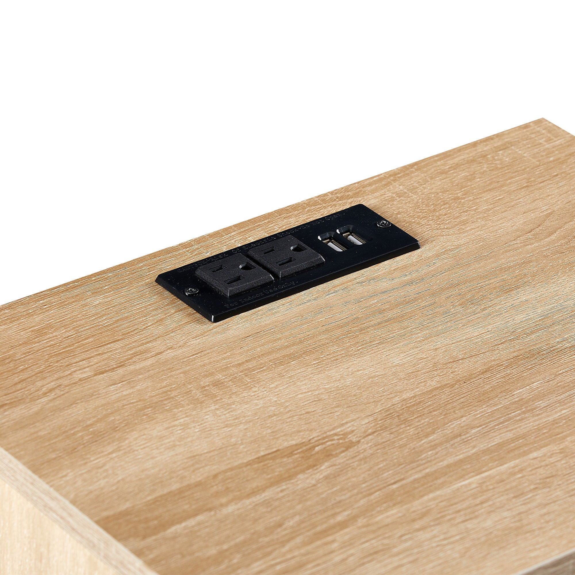 15.75" Rattan End Table With Power Outlet & USB Ports, Modern Nightstand With Drawer And Solid Wood Legs, Side Table For Living Room, Bedroom