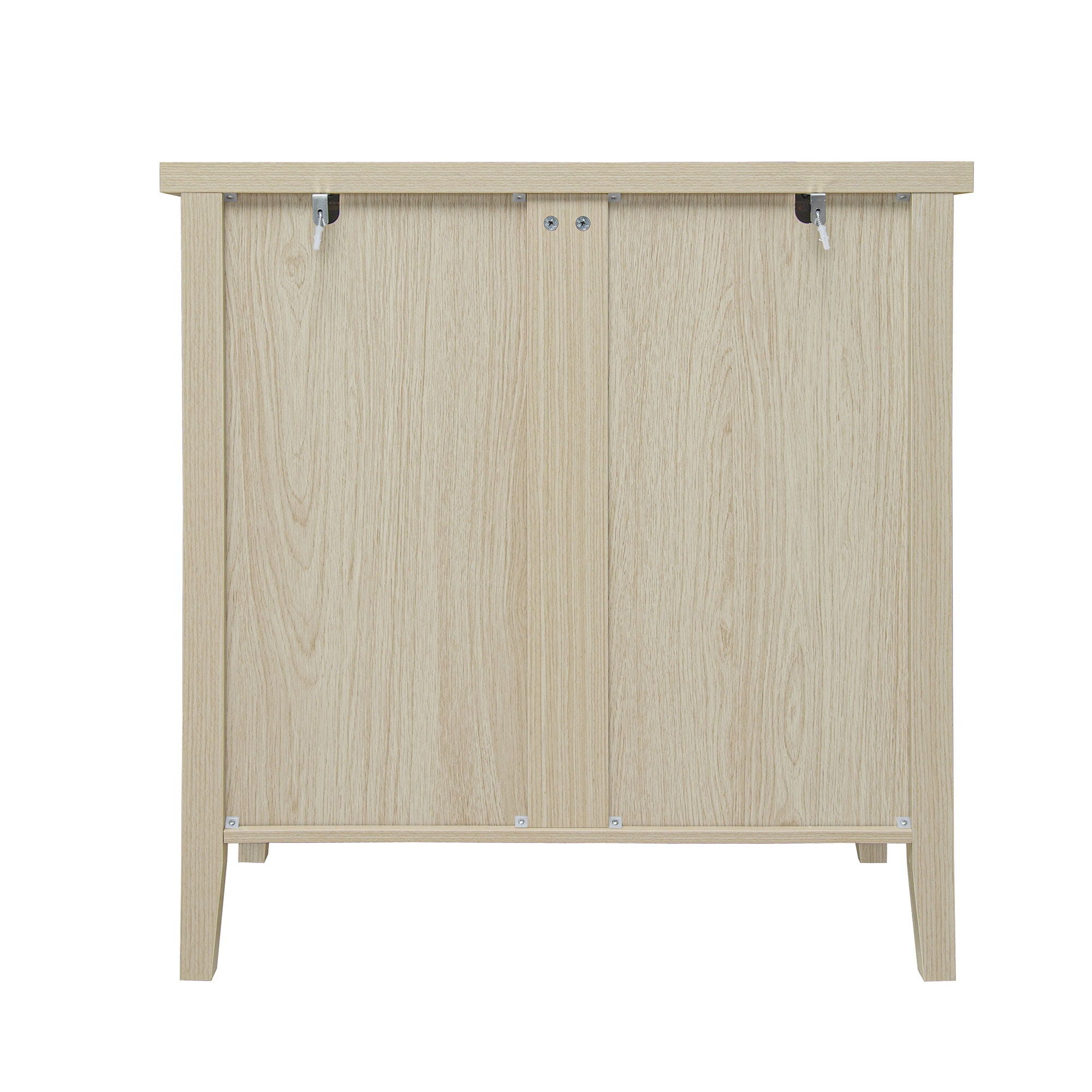 3 Drawer Buffet Sideboard With Adjustable Shelves, Storage Cabinet With Natural Seaweed Decor Doors For Living Room Kitchen Entryway - Natural