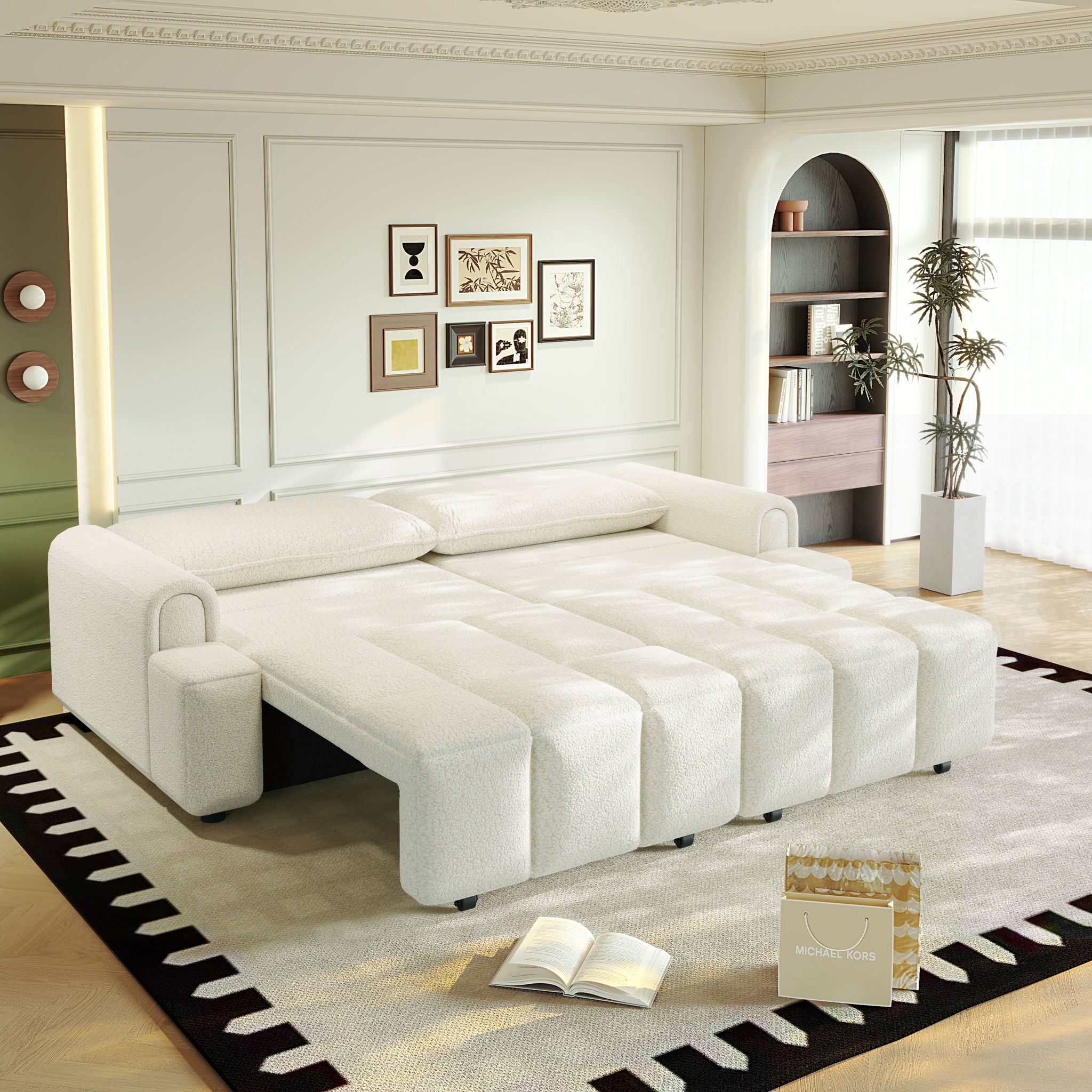 4 Seater Couch & Seats Storage, King Size 3 In 1 Convertible Sleeper Sofa Bed For Living Room - Beige / White90.2"W x 40.6"D x 38.2"H - 191.79 lb