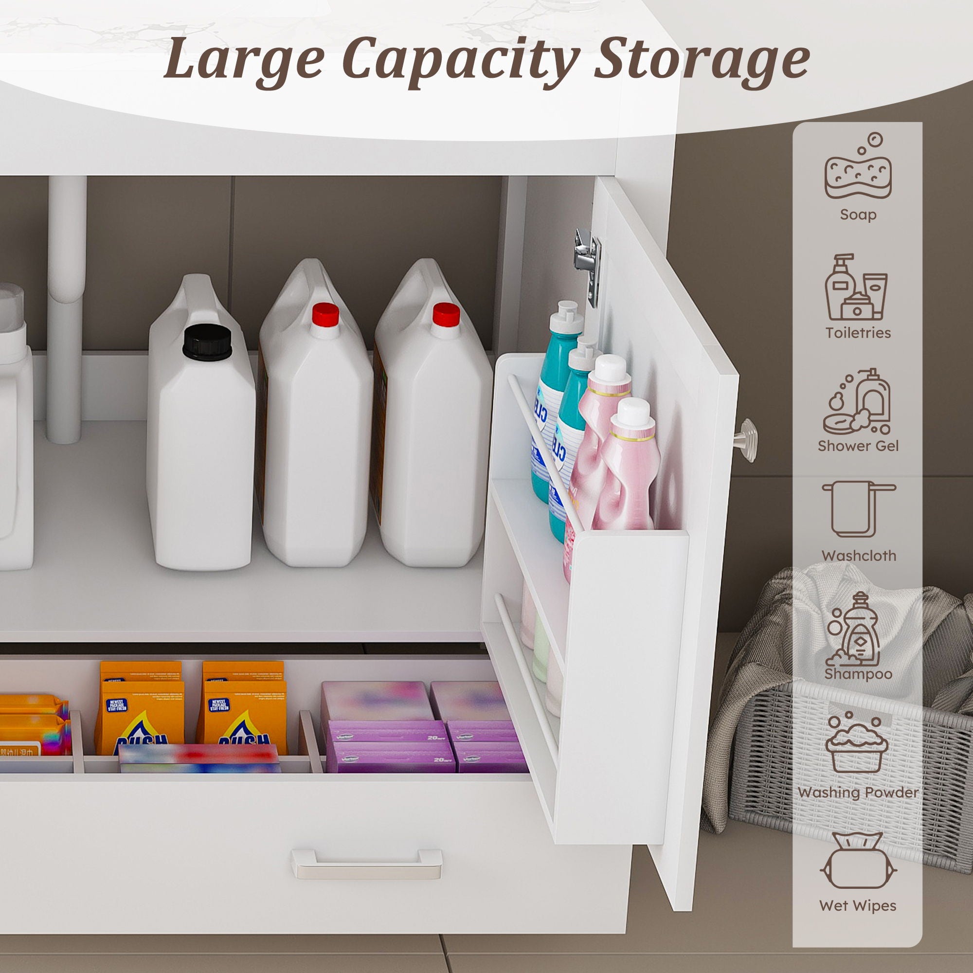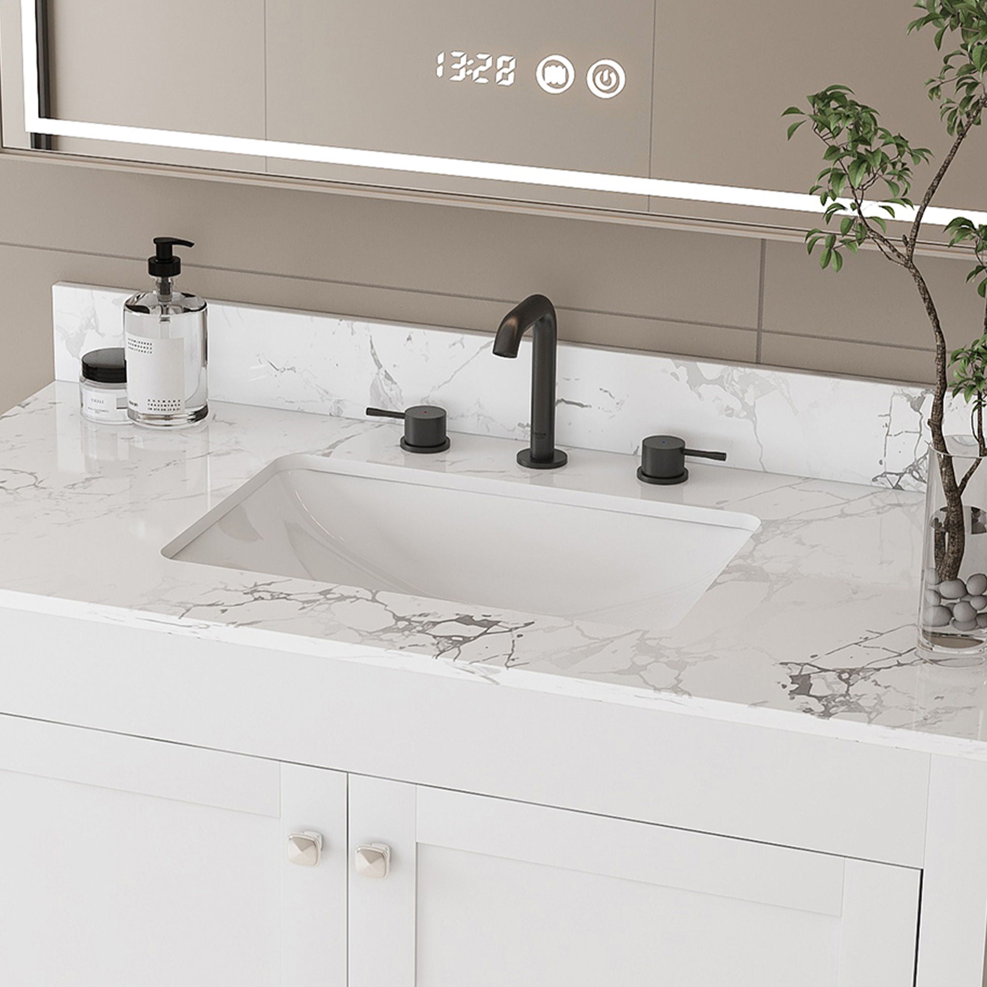 Ample storage space: The bathroom vanity features separate drawers and built-in shelves, offering organized storage for bathroom supplies. High quality...