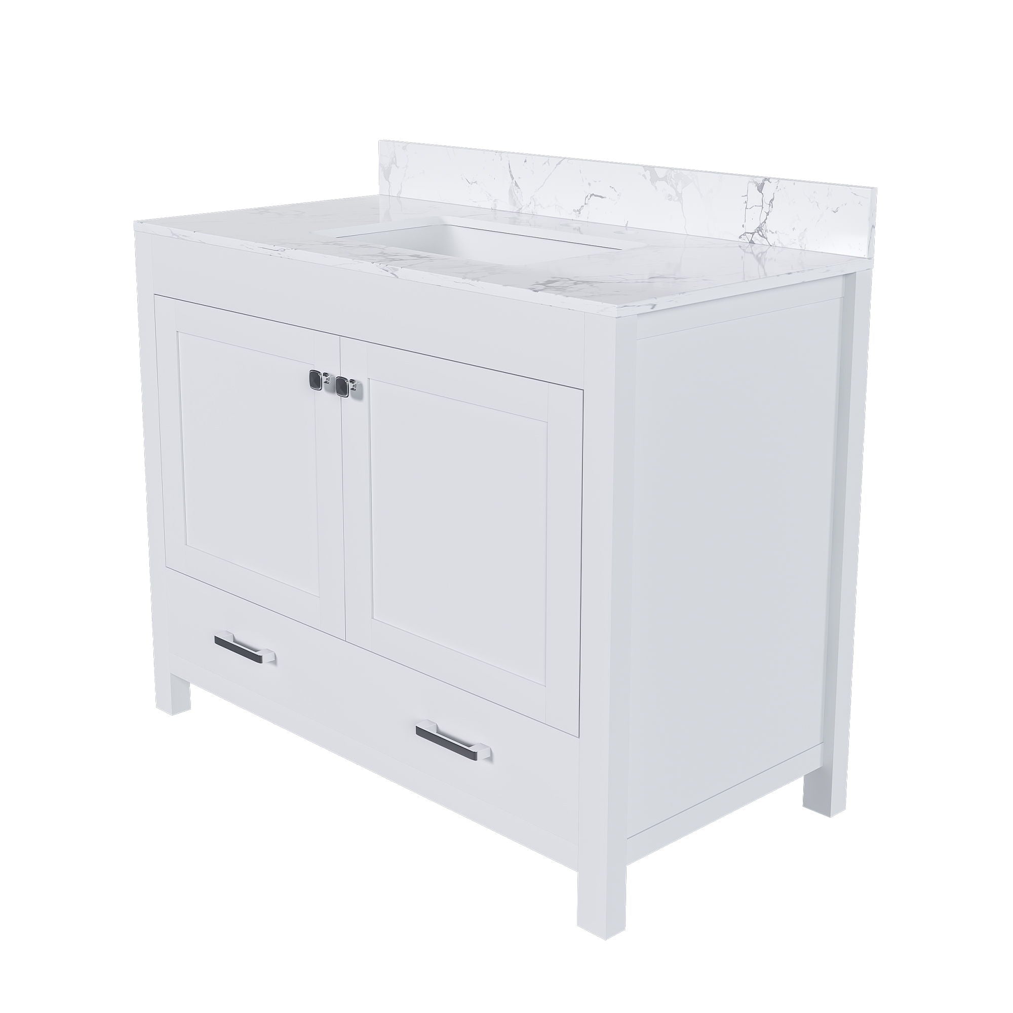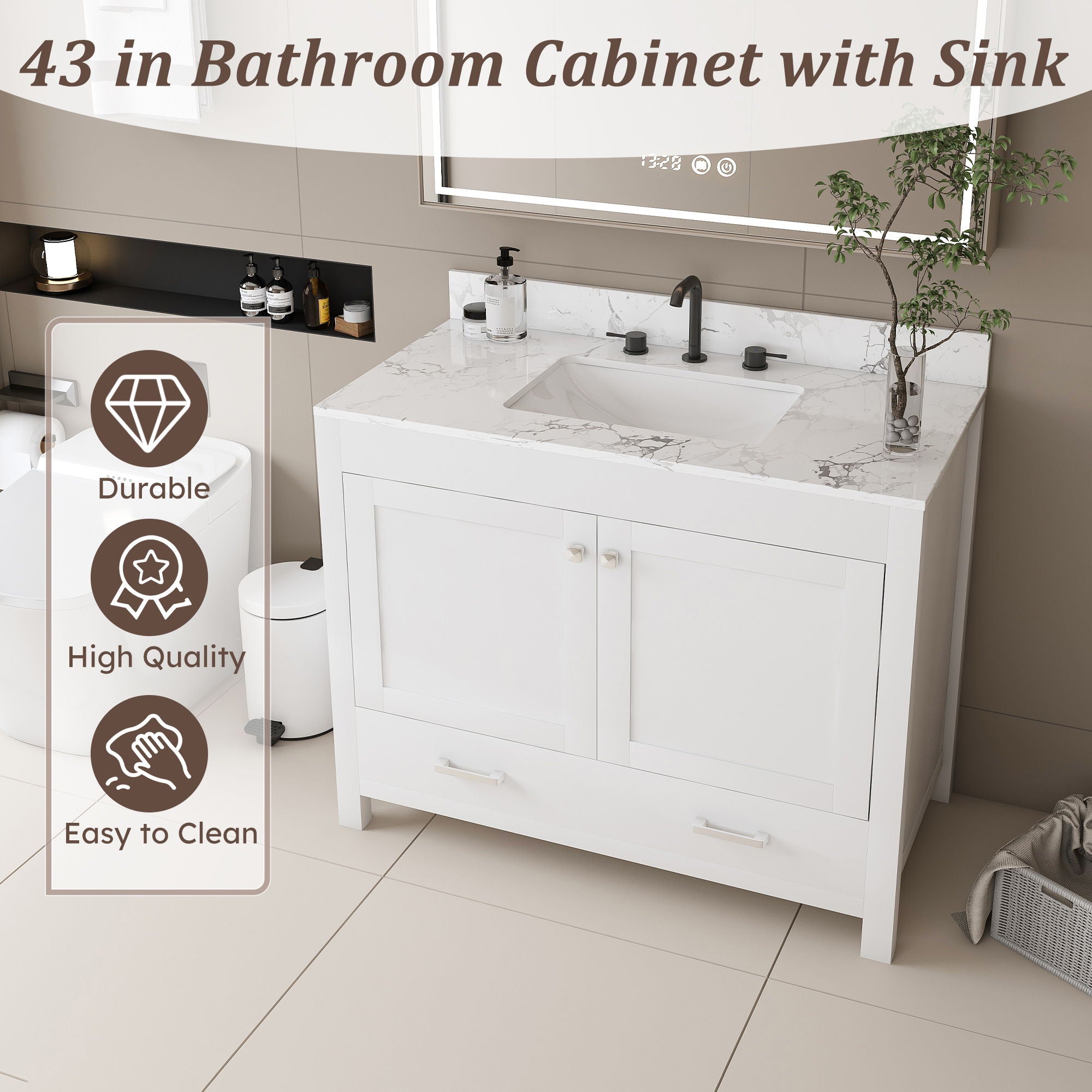 43" Bathroom Vanity With Artificial Marble Carrara Top Set, Multi Functional Bathroom Cabinet With Doors And Drawer - White
