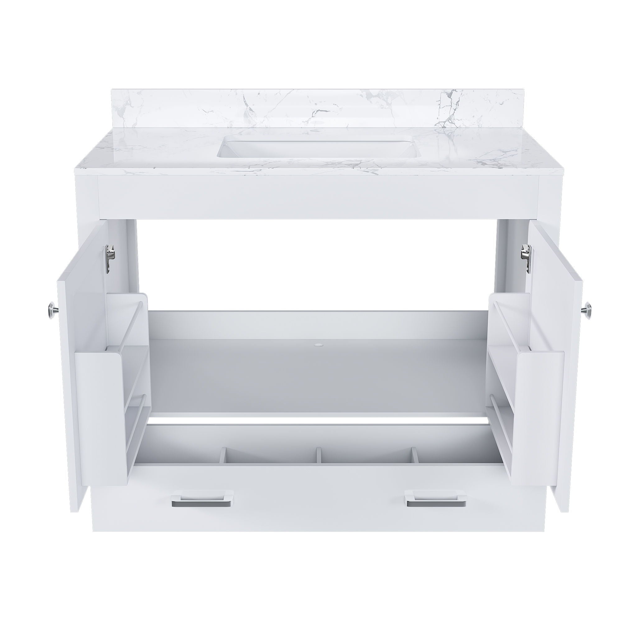 43" Bathroom Vanity With Artificial Marble Carrara Top Set, Multi Functional Cabinet With Doors And Drawer - White