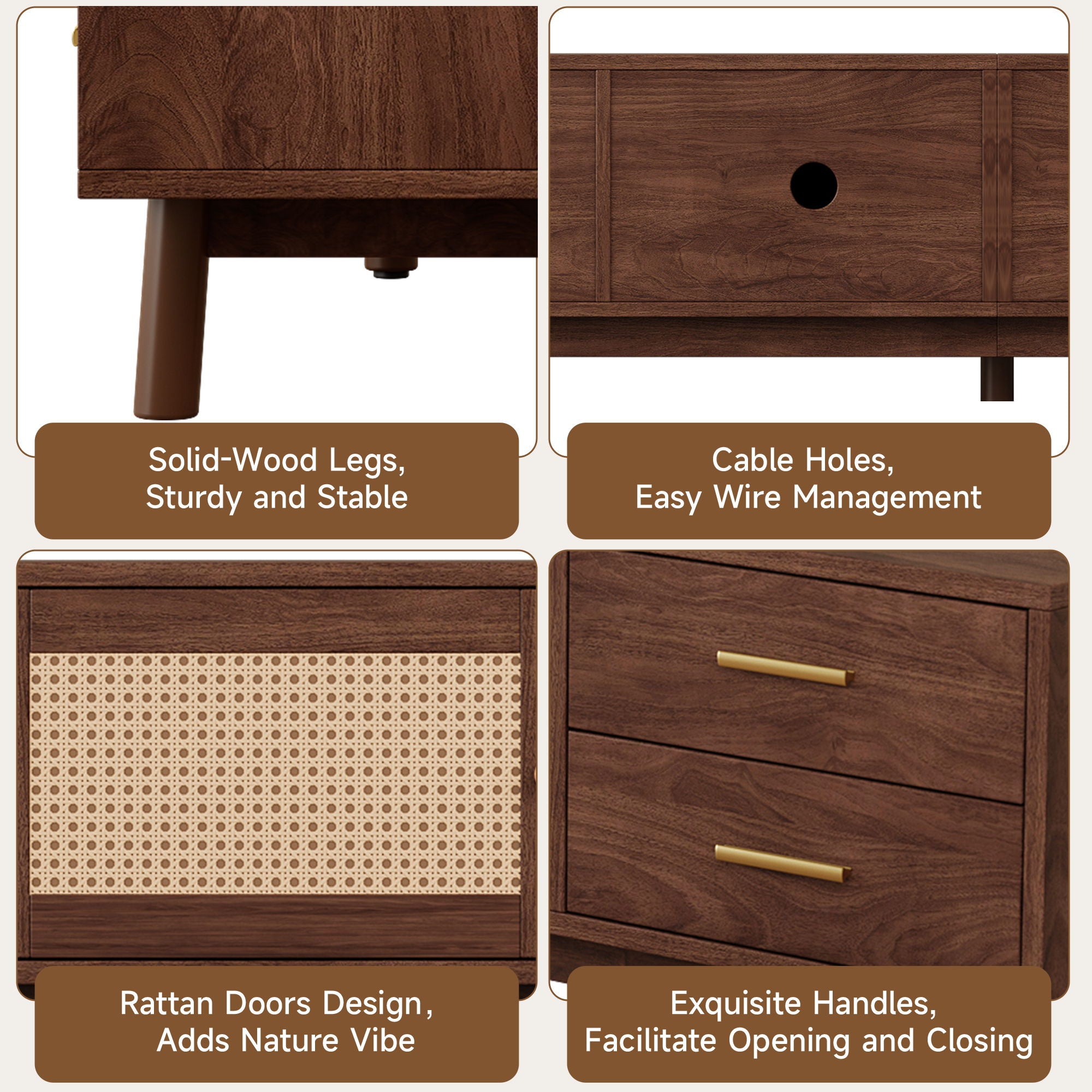 70" TV Stand With Doors For TVs Up To 80", Media Console With 4 Drawers & Cable Holes - Dark Brown
