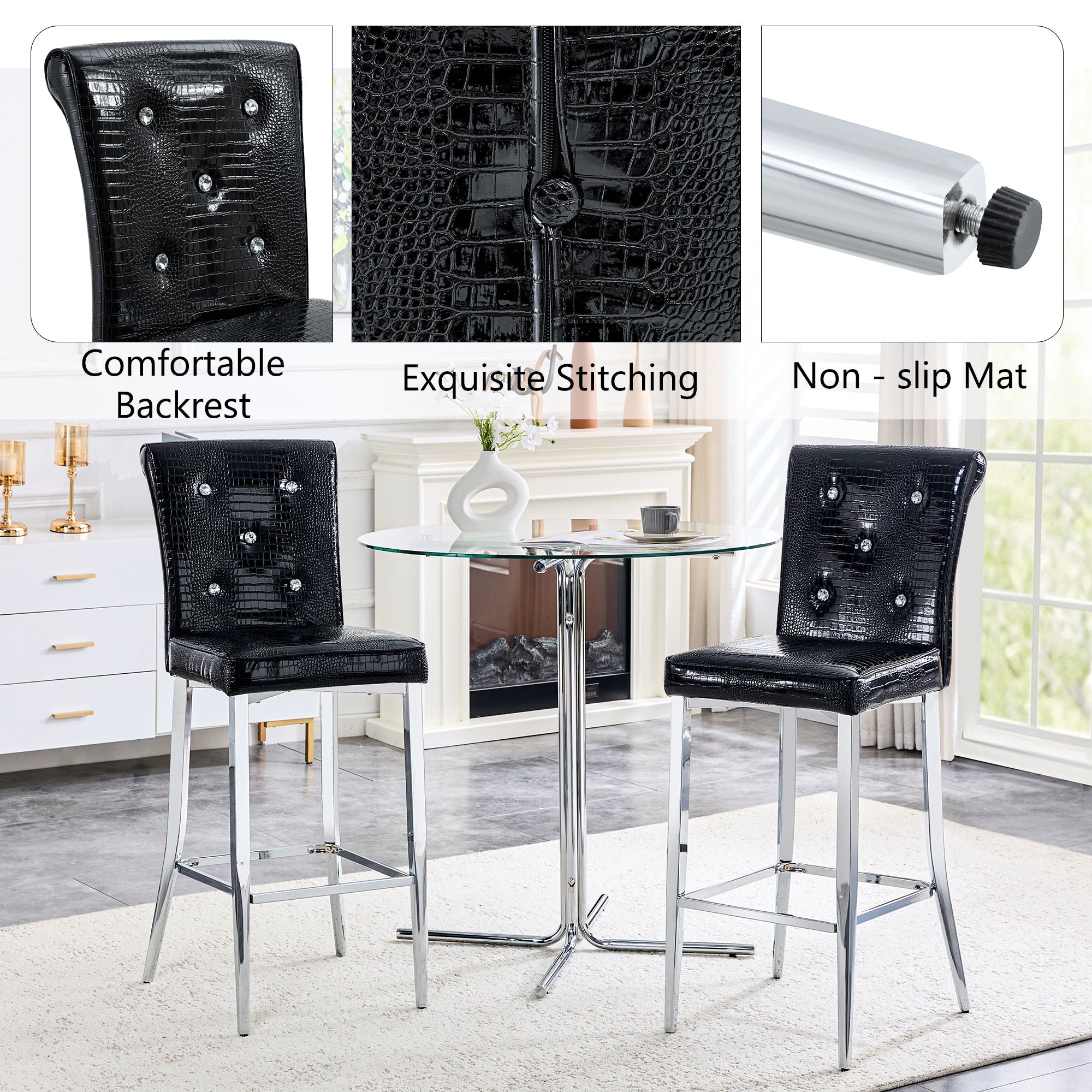 Bar Chairs & Crystal Clasp Design (Set of 2)