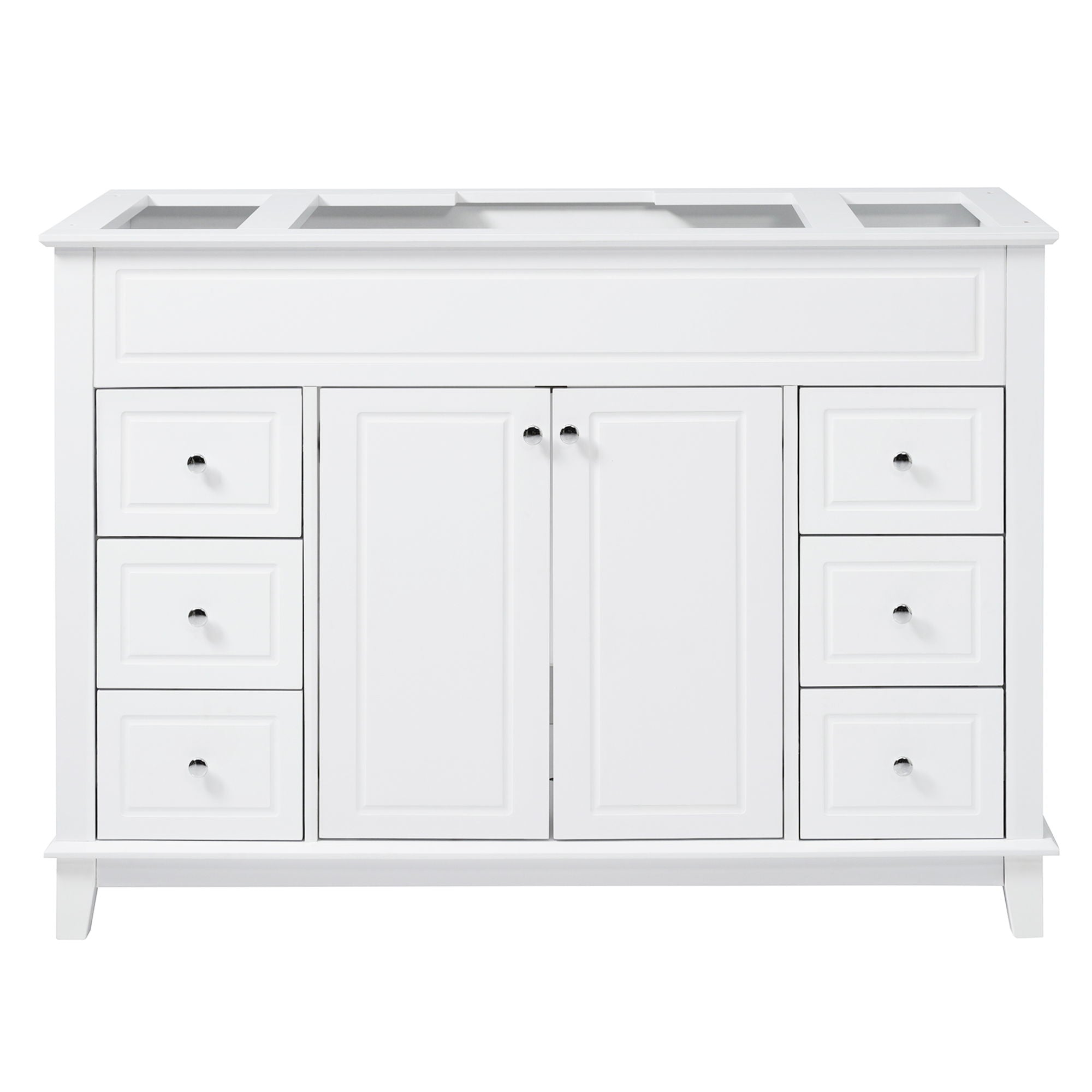 Bathroom Vanity Cabinet Only, 6 Soft Close Drawers & Double Doors With 2 Tier Shelves - White