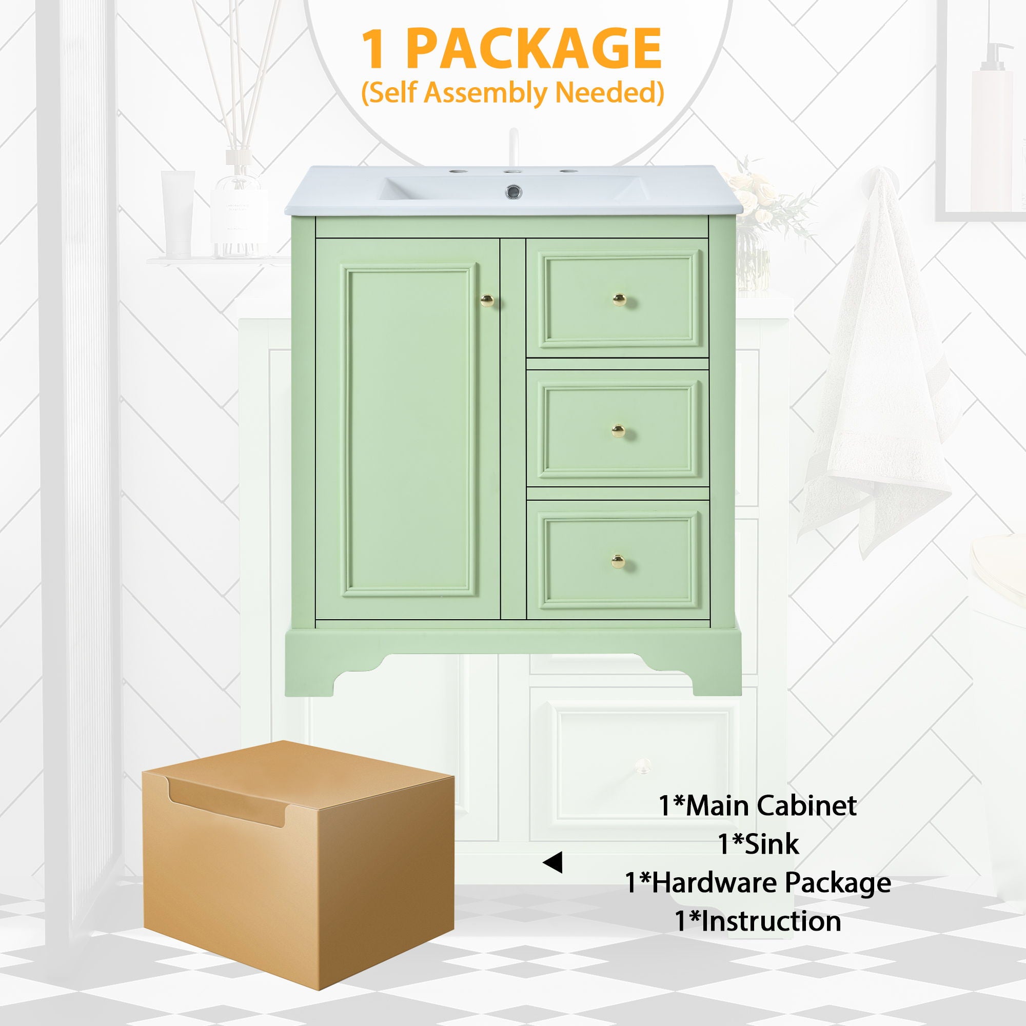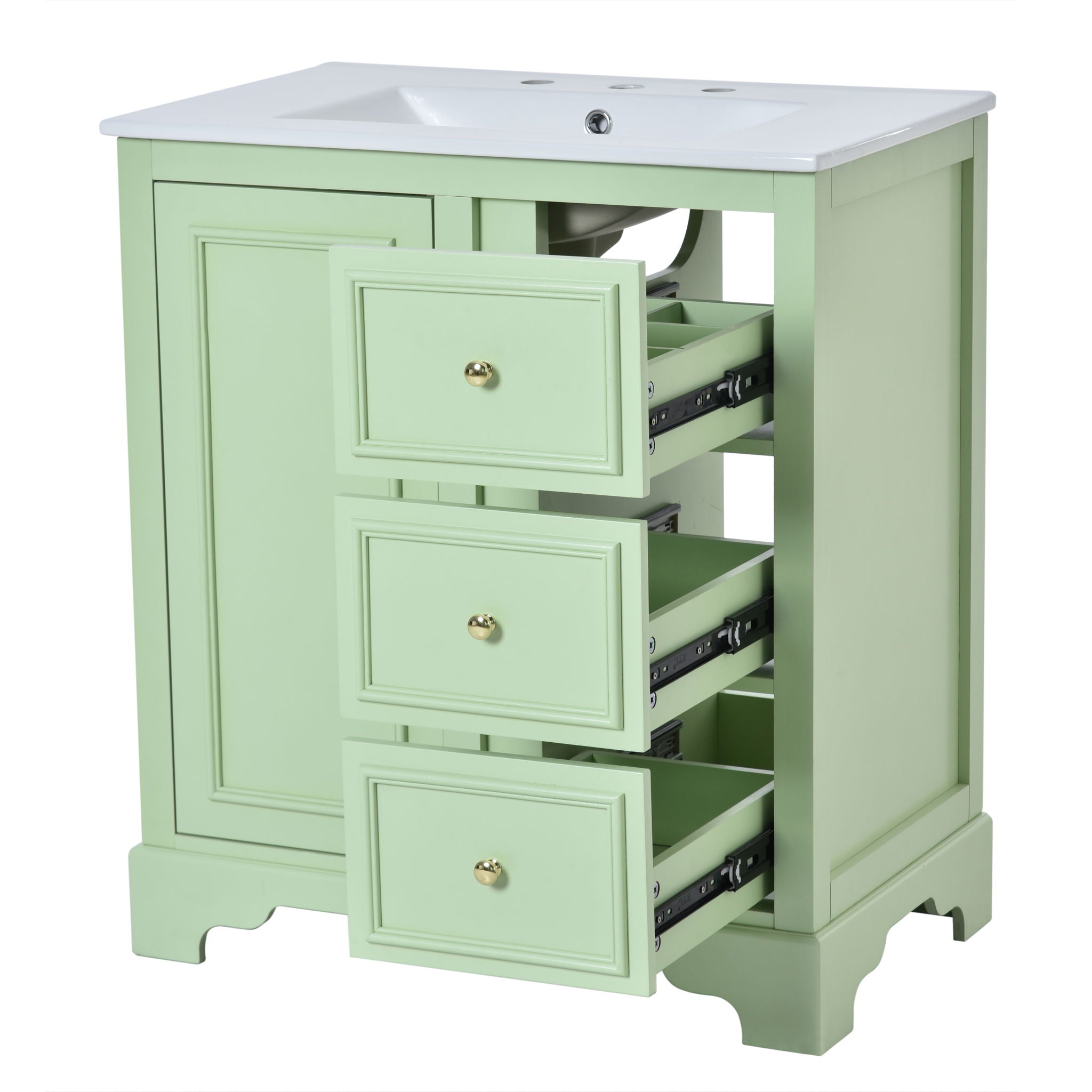 Bathroom Vanity Cabinet With Ceramic Basin, 3 Drawers And Adjustable Shelves