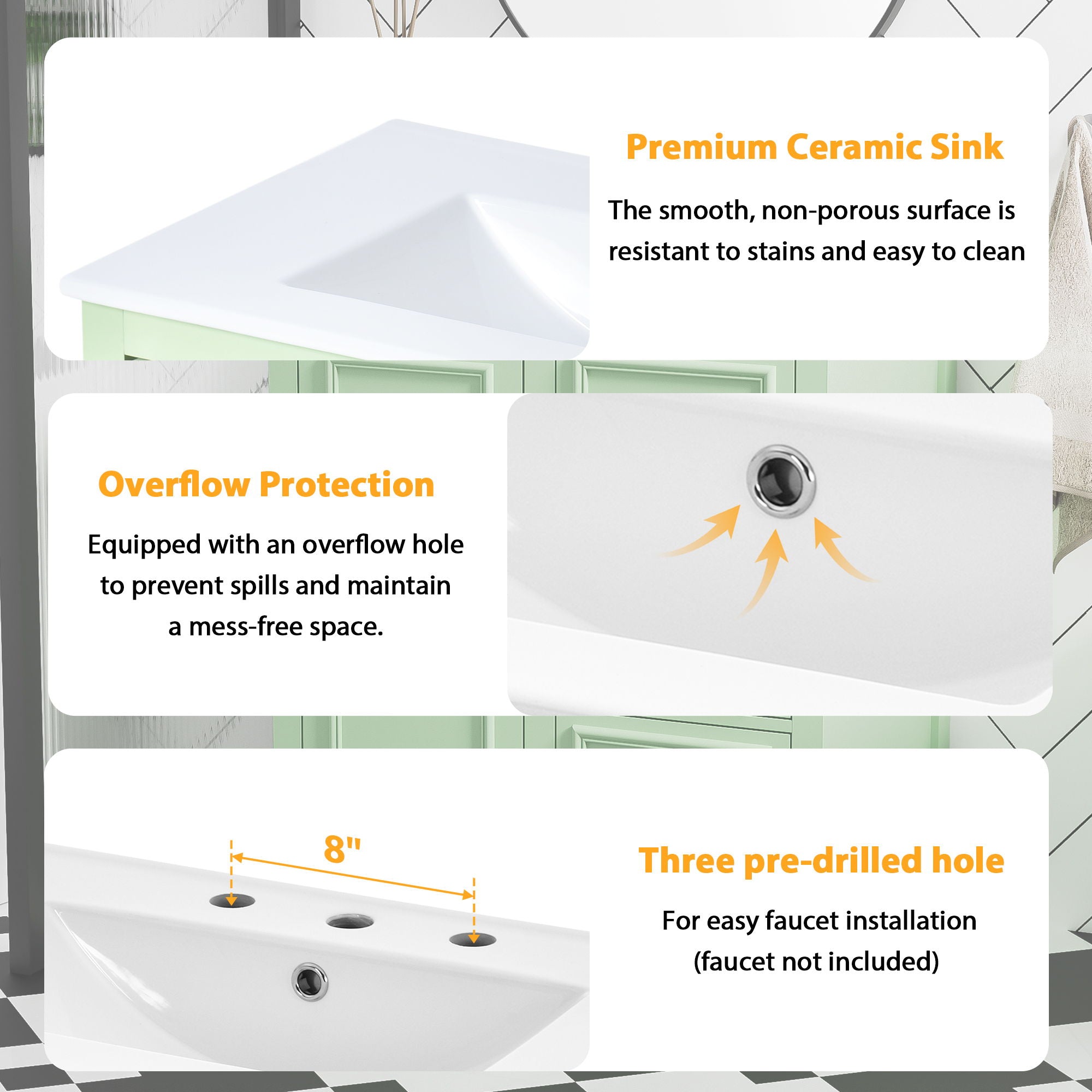Compact Size Design: Ideal for small bathrooms with dimensions of 29.96*18.46*33.7 inches, saving space efficiently. Premium Ceramic Sink: Easy to...