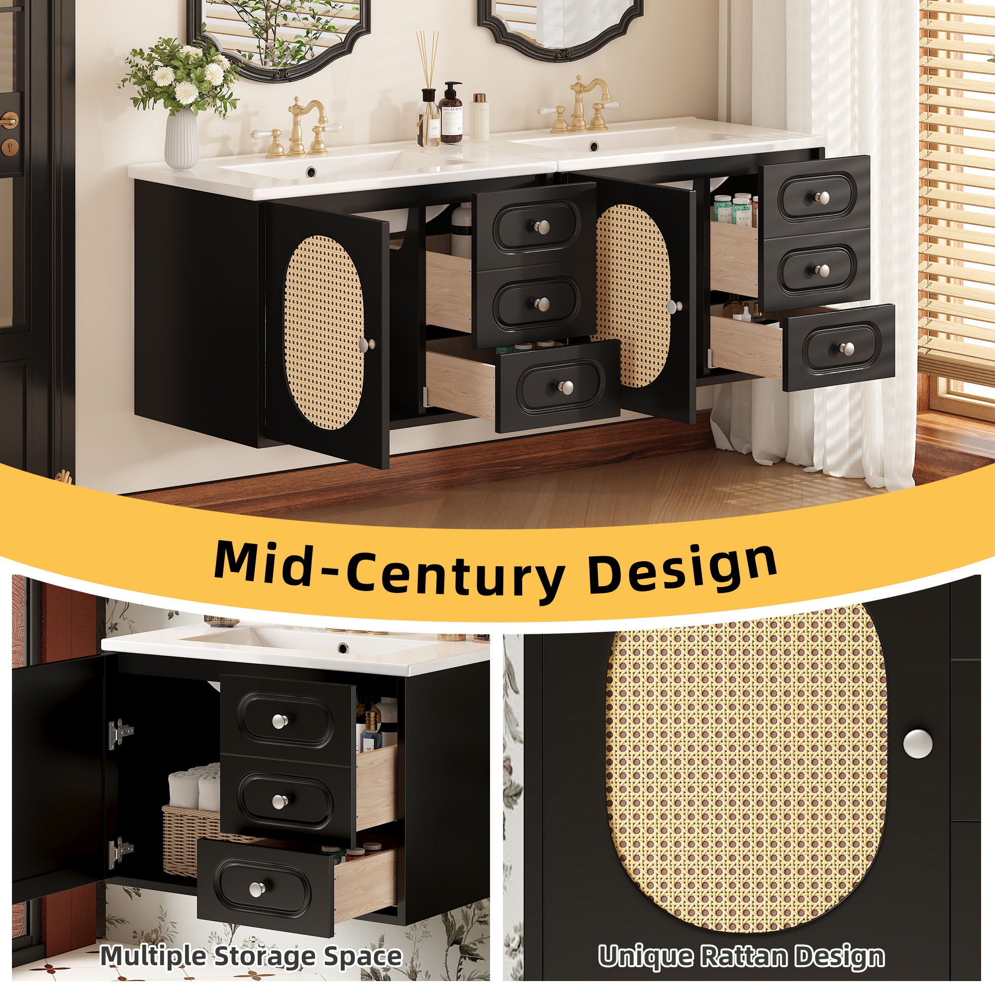 Elegant Mid-Century Design: Timeless silhouette with natural rattan accents enhances visual appeal and complements diverse interior styles. Smart and Spacious...