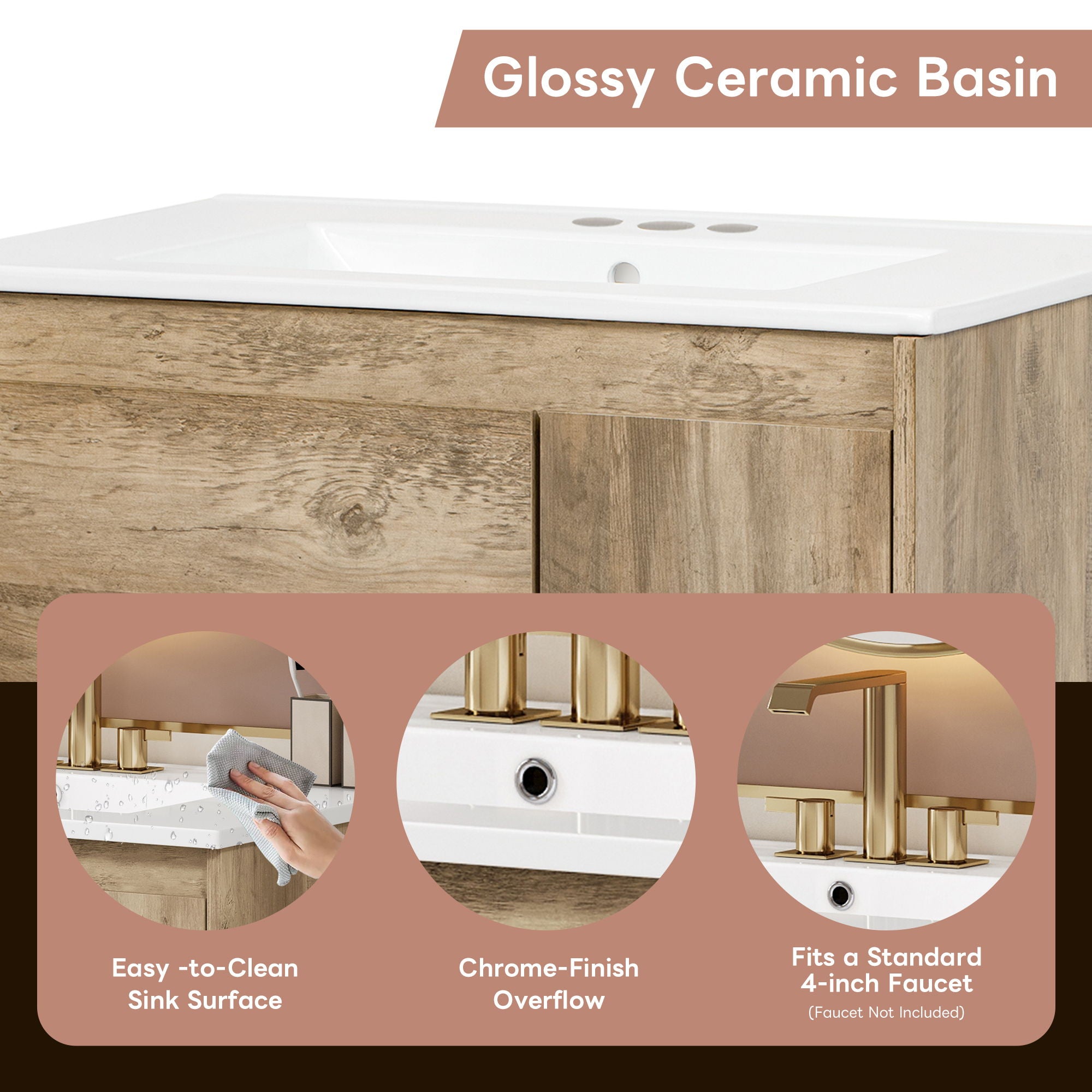 Bathroom Vanity Cabinet With Sink, Sliding Drawer, Soft Closing Door, Open Shelf - Natural Wood