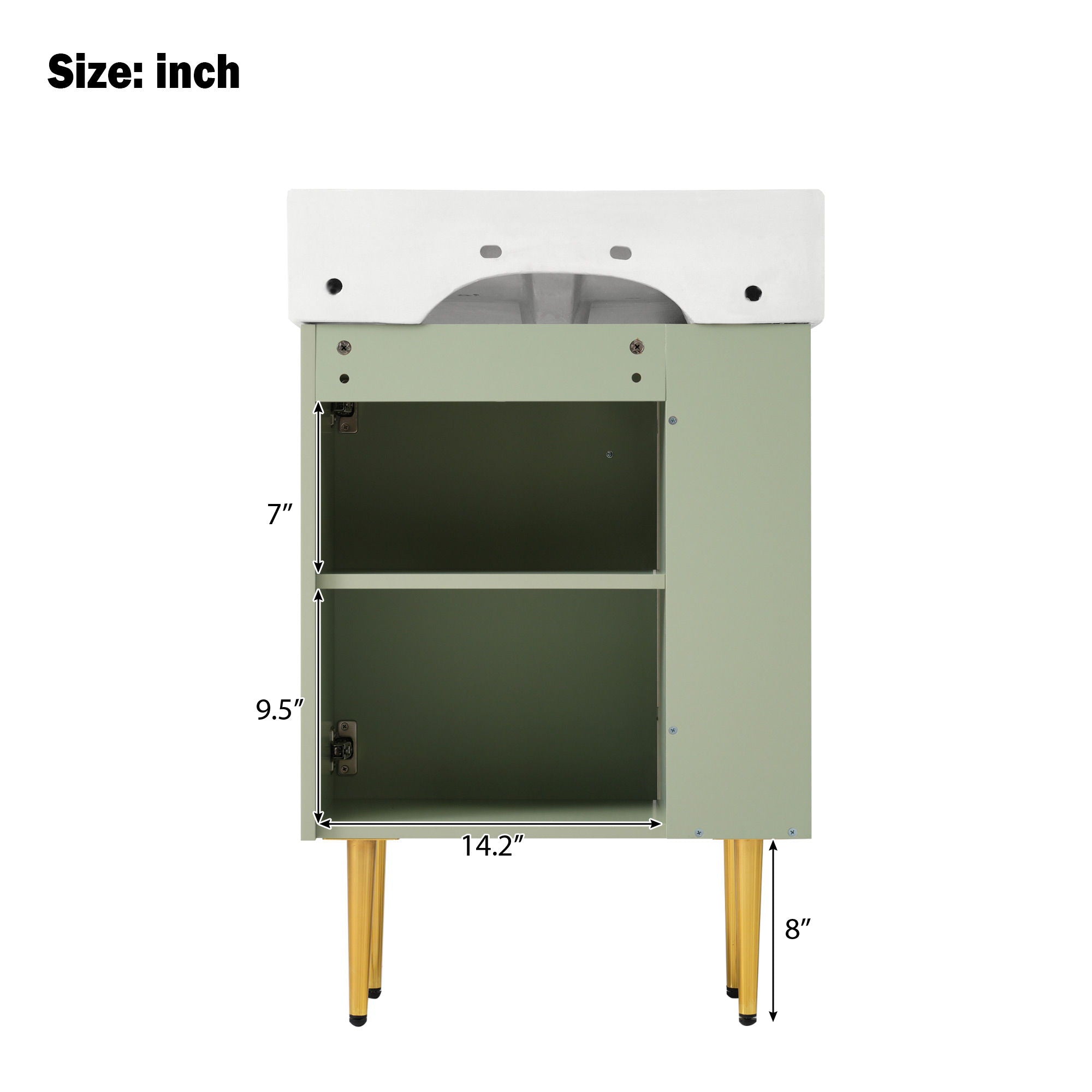 Bathroom Vanity, Combo Cabinet, Bathroom Storage Cabinet, Single Ceramic Sink, Right Side Storage - Green12.2"W x 21.6"D x 33.9"H - 54.0 lb