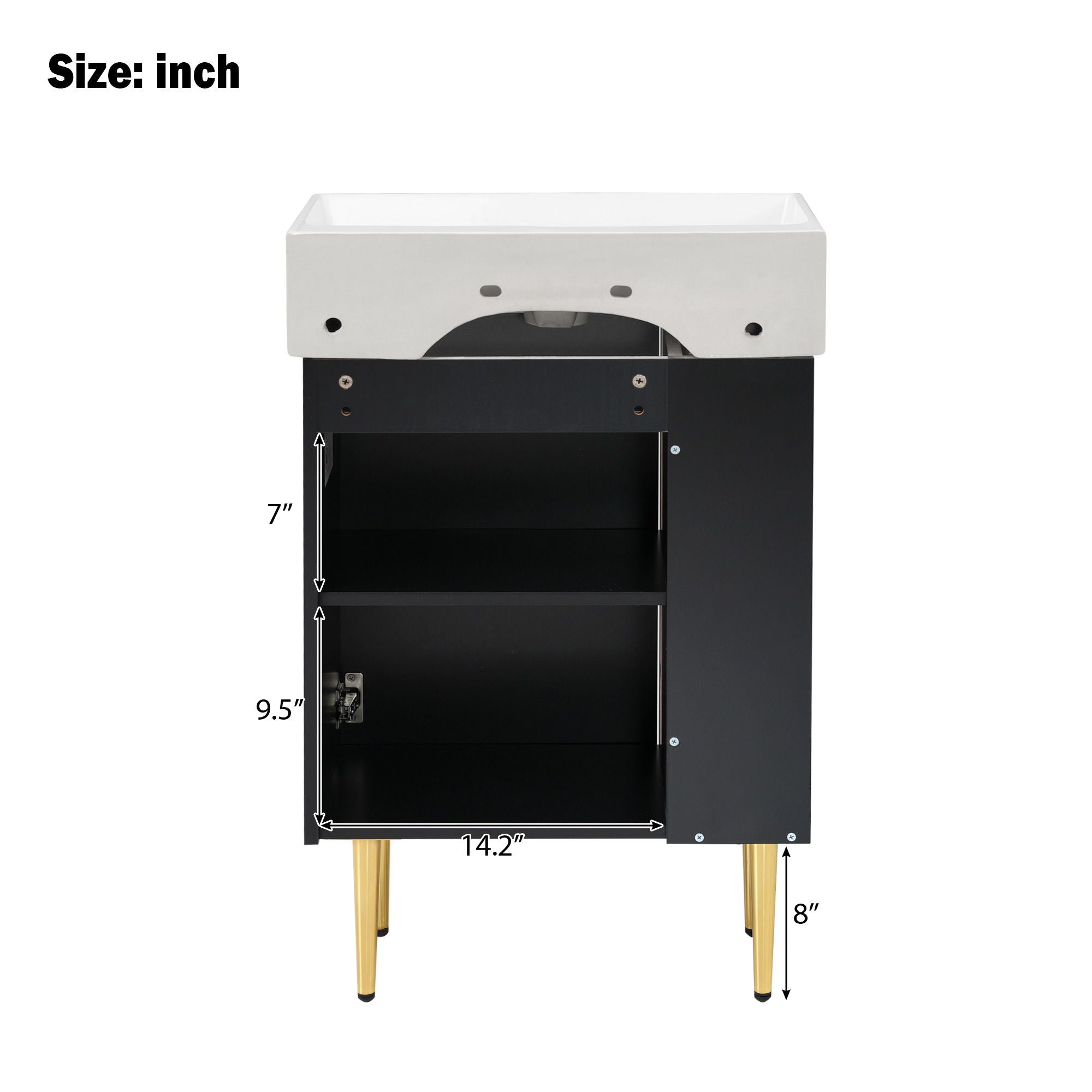 Bathroom Vanity, Combo Cabinet, Bathroom Storage Cabinet, Single Ceramic Sink, Right Side Storage - Black12.2"W x 21.6"D x 33.9"H - 54.0 lb