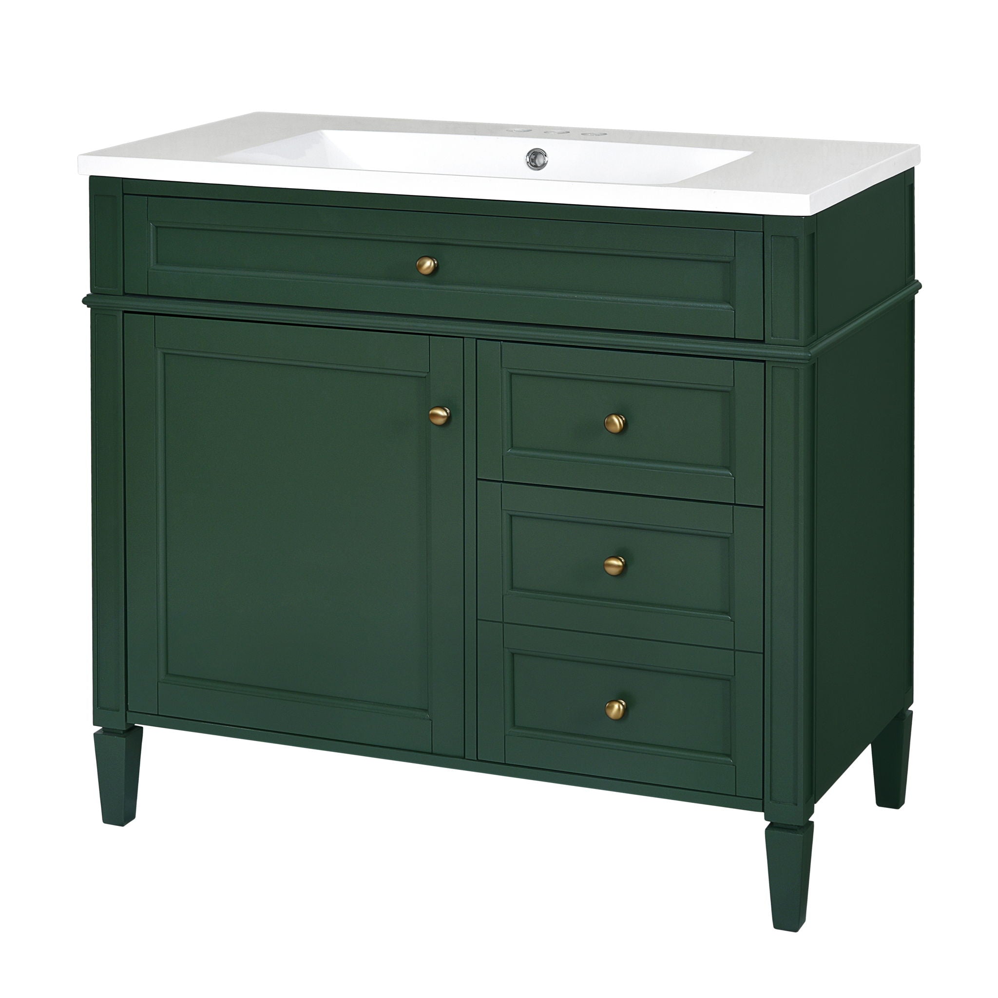 Bathroom Vanity With Top Sink, Modern Bathroom Storage Cabinet, 2 Drawers And A Tip-Out Drawer, Single Sink Bathroom Vanity - Green36.0"W x 18.0"D x 34.0"H - 101.55 lb