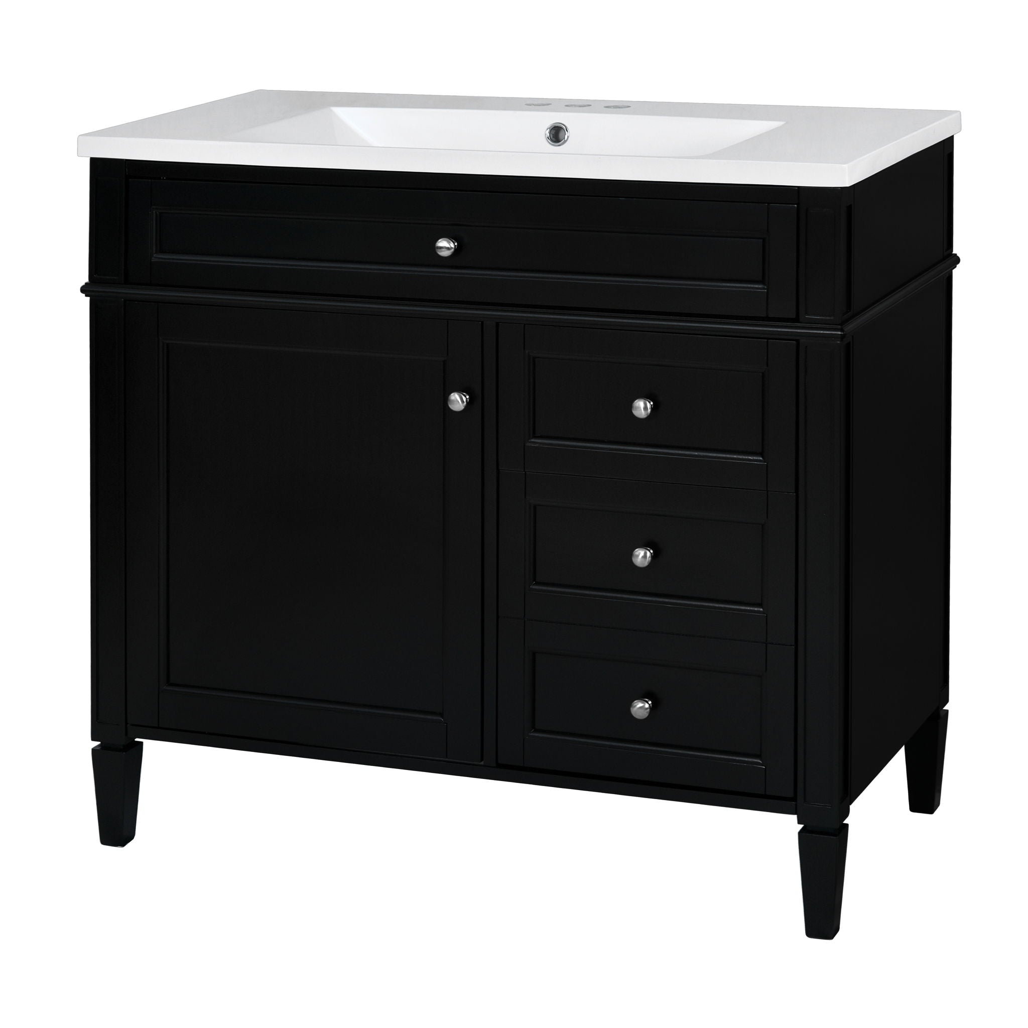 Bathroom Vanity With Top Sink, Modern Bathroom Storage Cabinet, 2 Drawers And A Tip-Out Drawer, Single Sink Bathroom Vanity - Black36.0"W x 18.0"D x 34.0"H - 101.55 lb