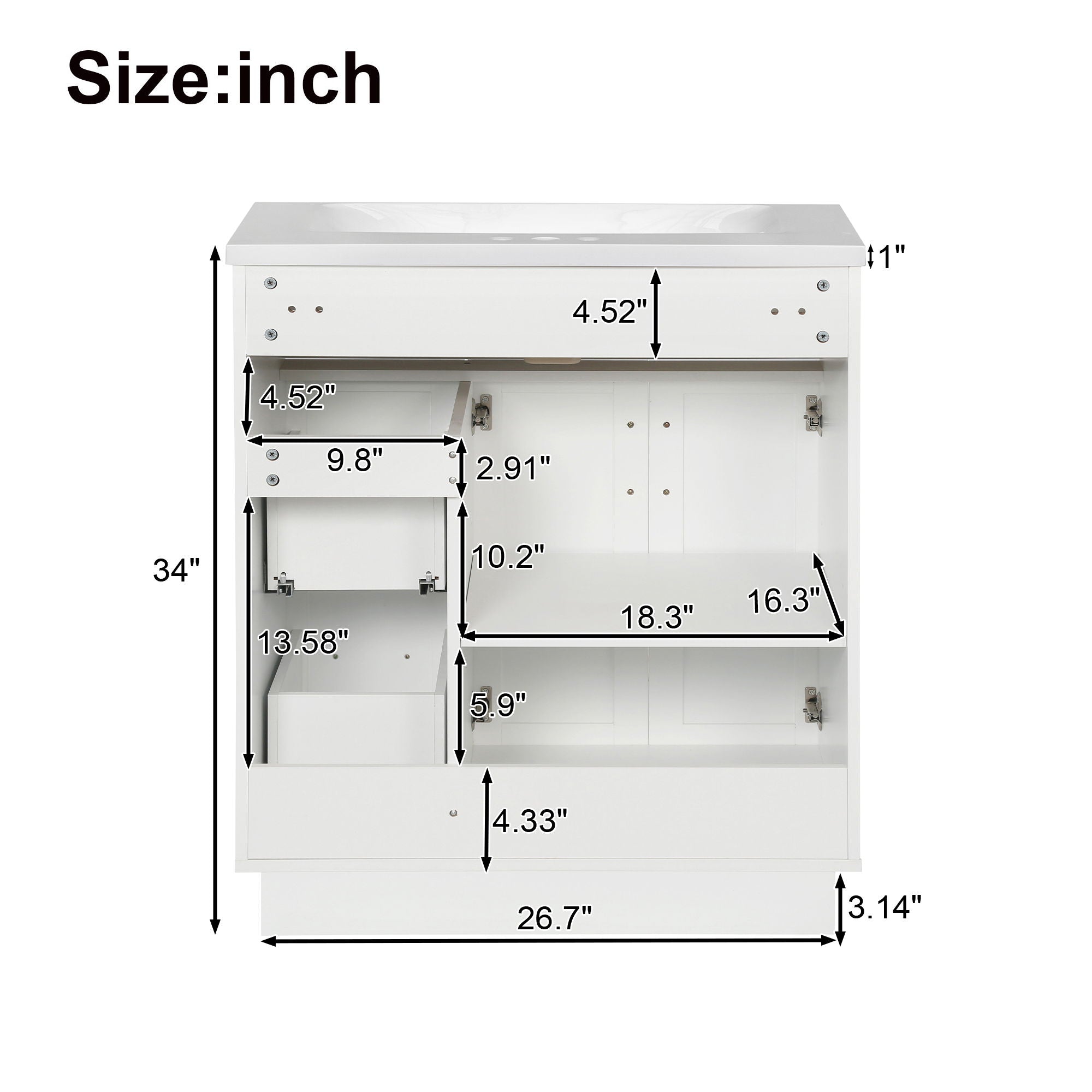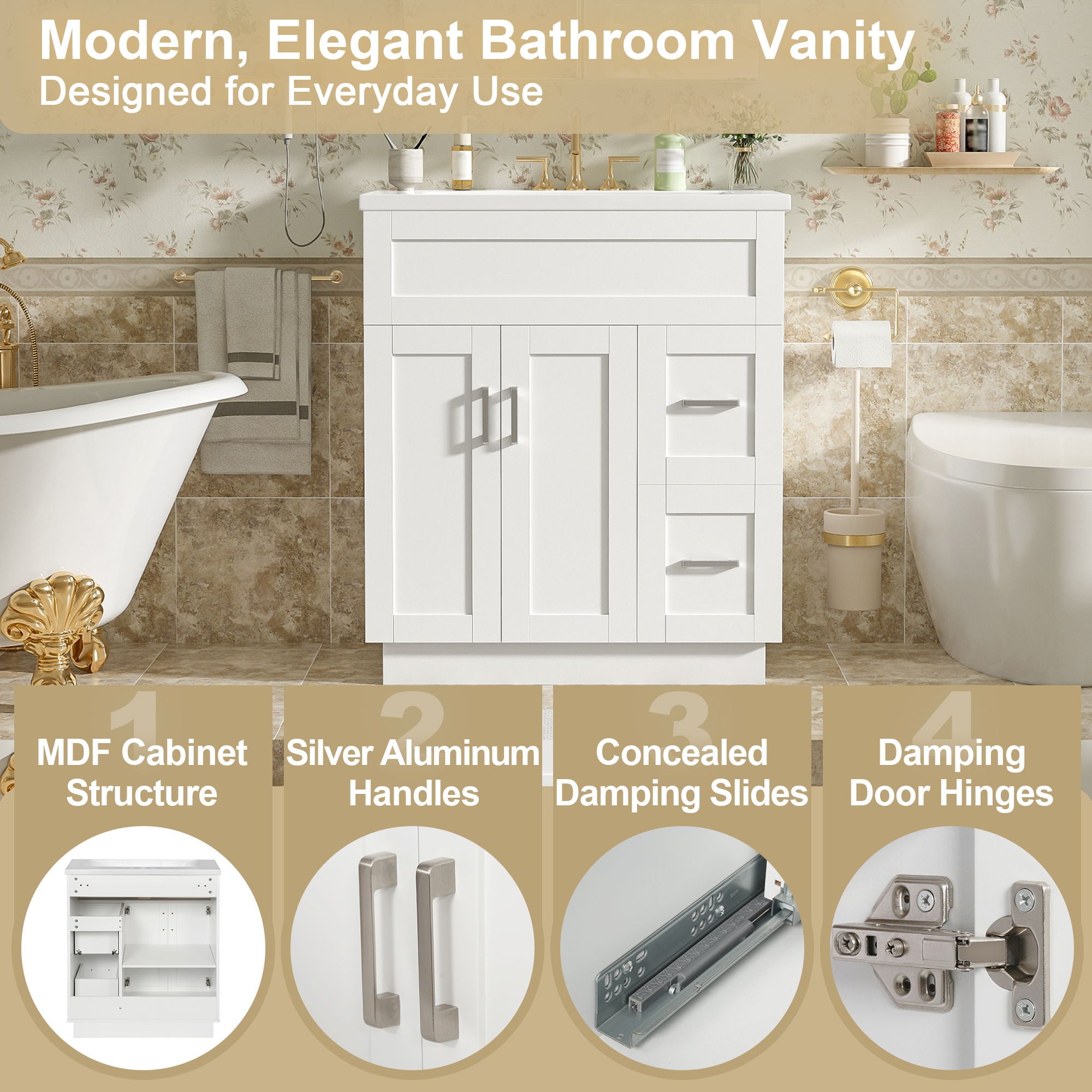 Bathroom Vanity With 2 Doors, 2 Drawers, Adjustable Shelf, Hidden Slides & Soft Close Hinges
