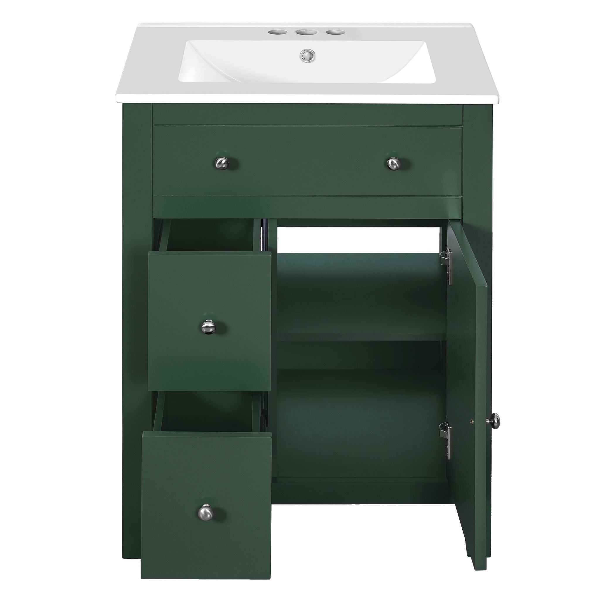 Bathroom Vanity With Basin, Rectangular Cabinet With 2 Drawers And Soft Closing Door