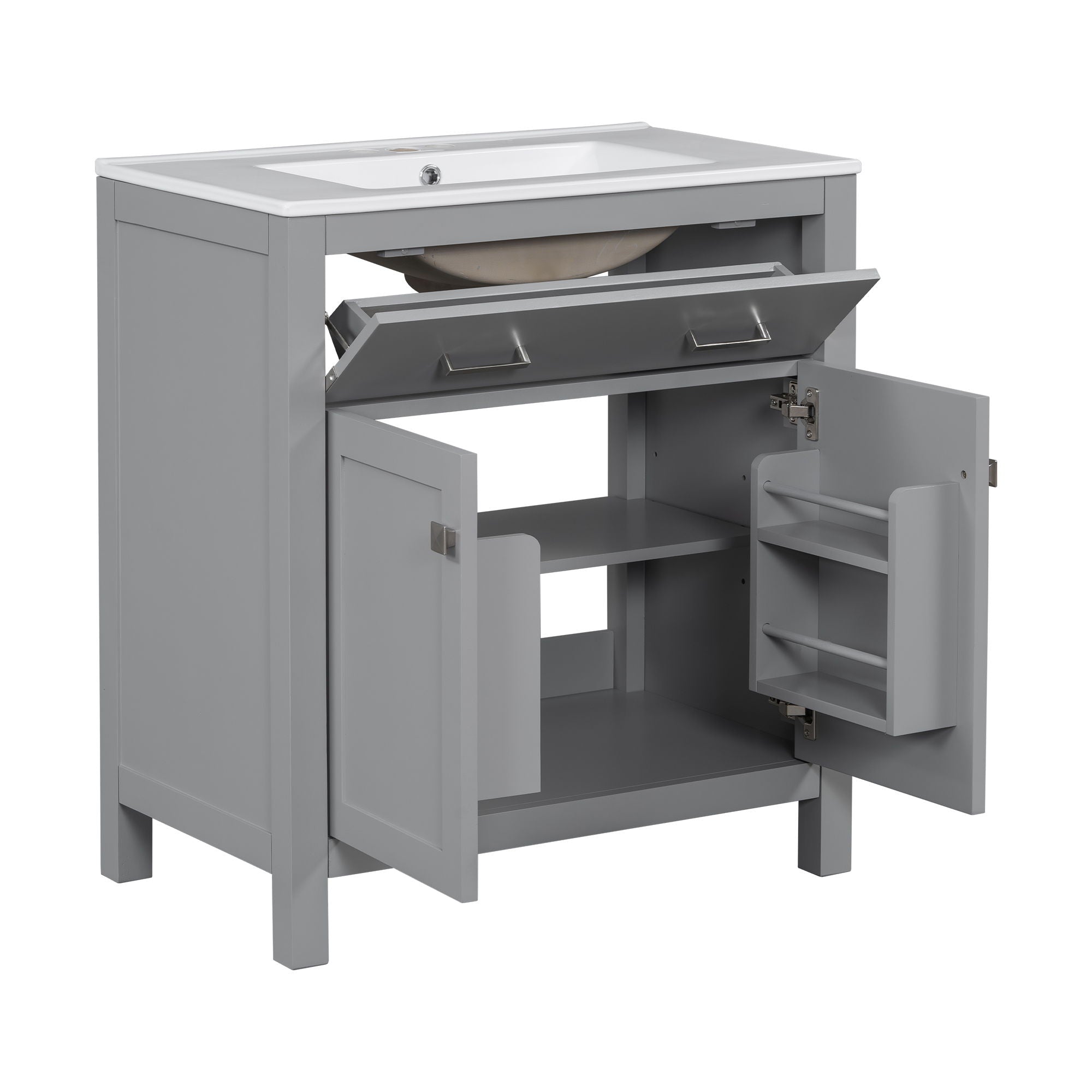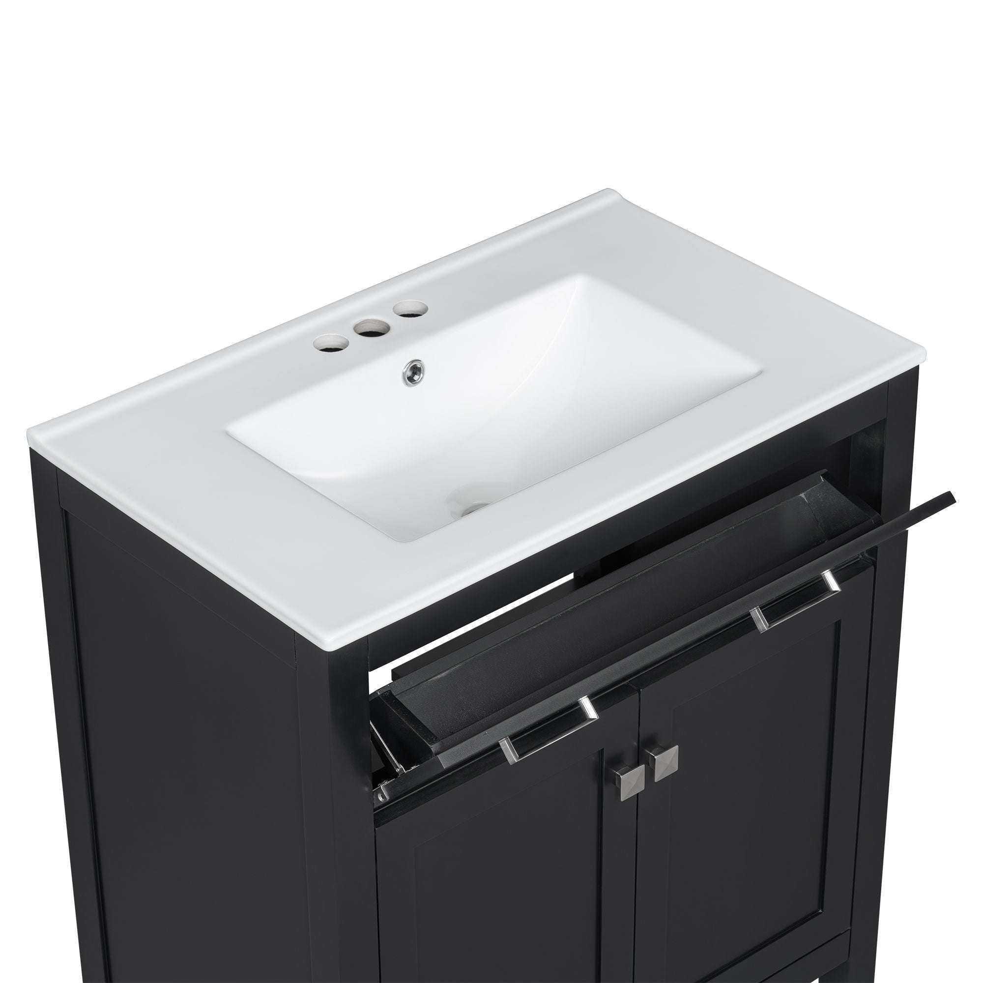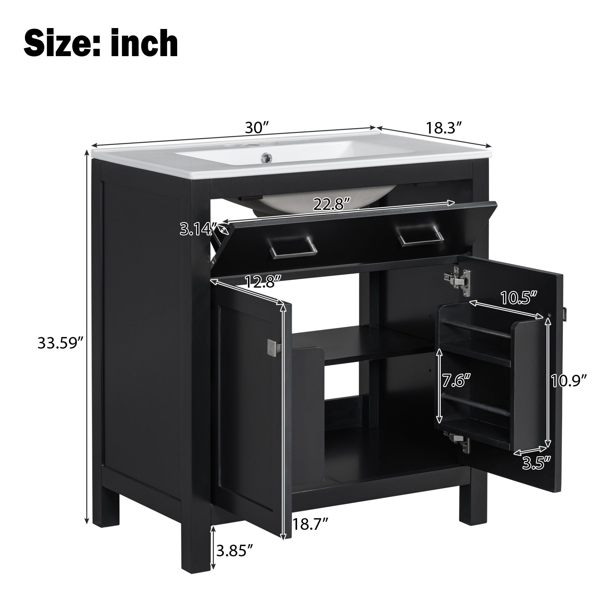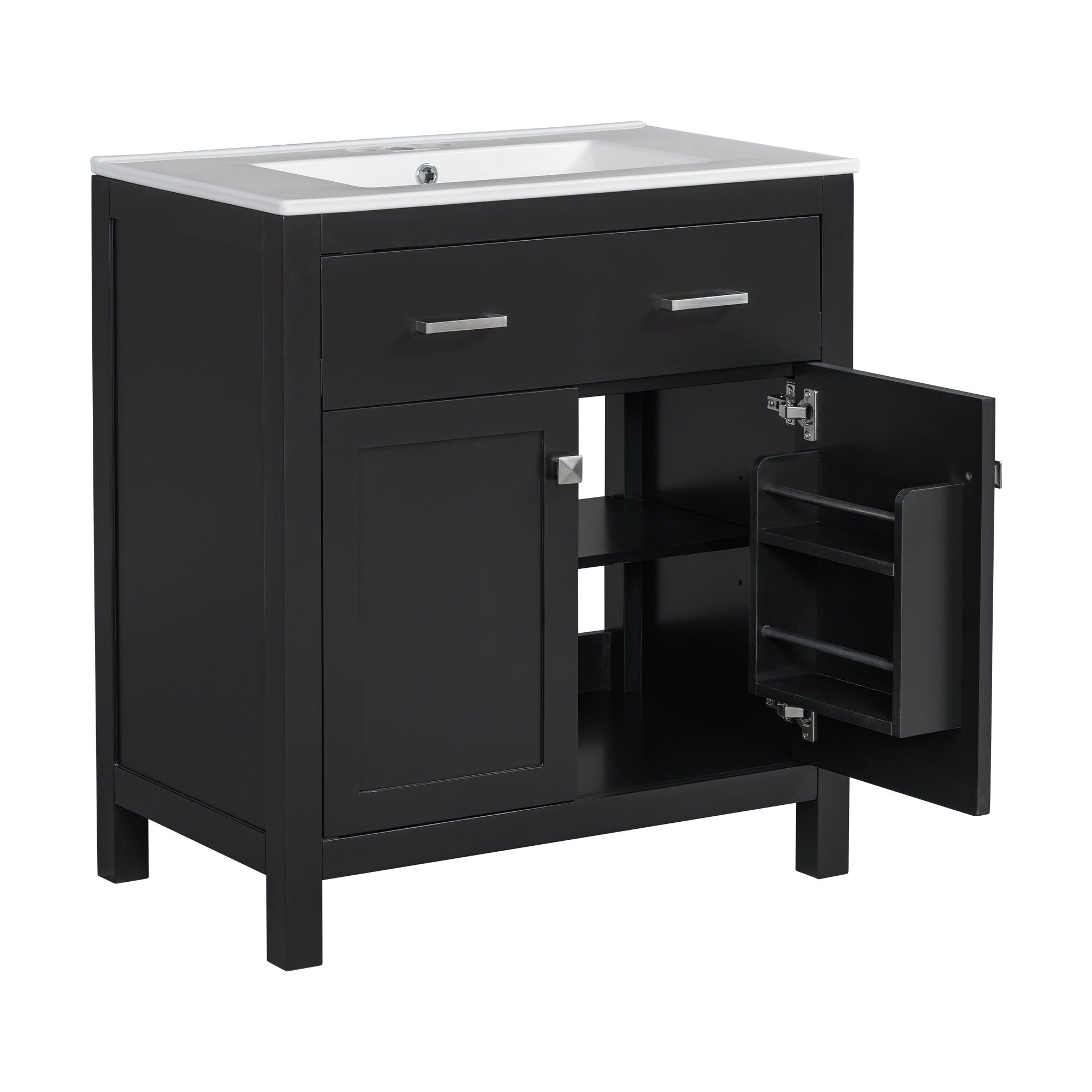 Bathroom Vanity With Ceramic Sink, Modern Single Bathroom Cabinet With 2 Doors And A Shelf, Soft Close Doors