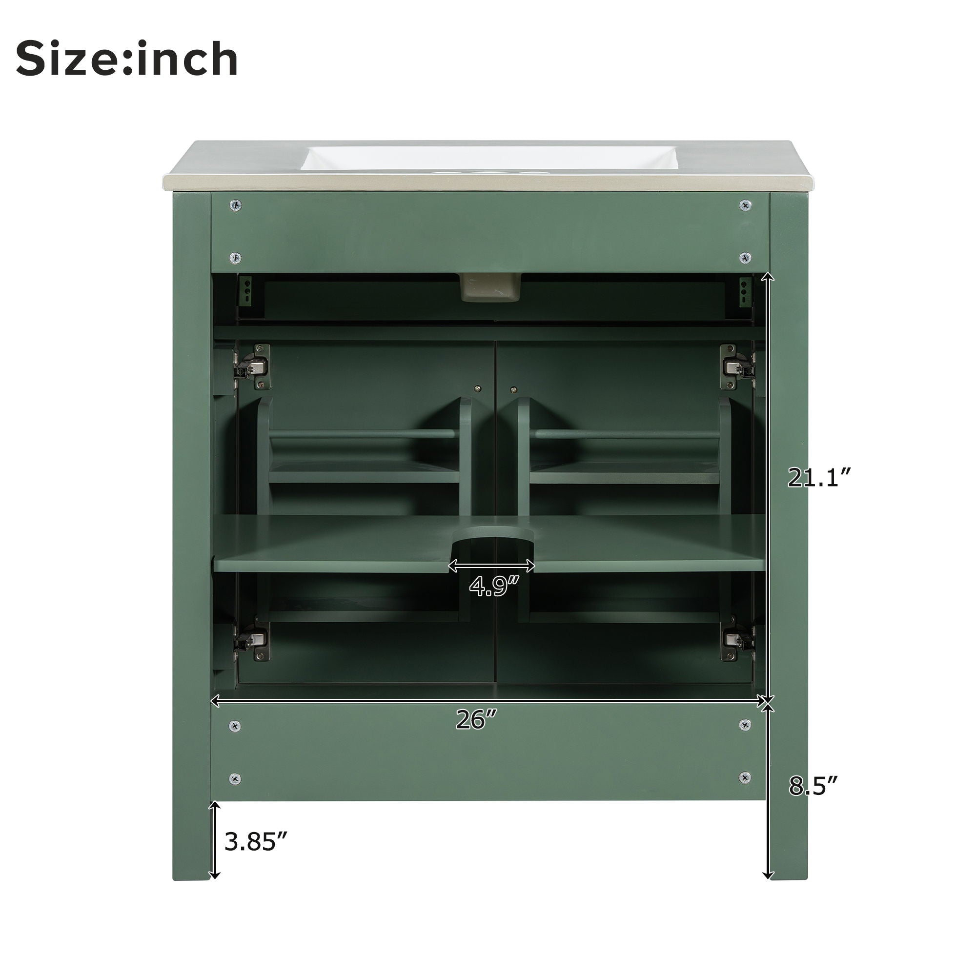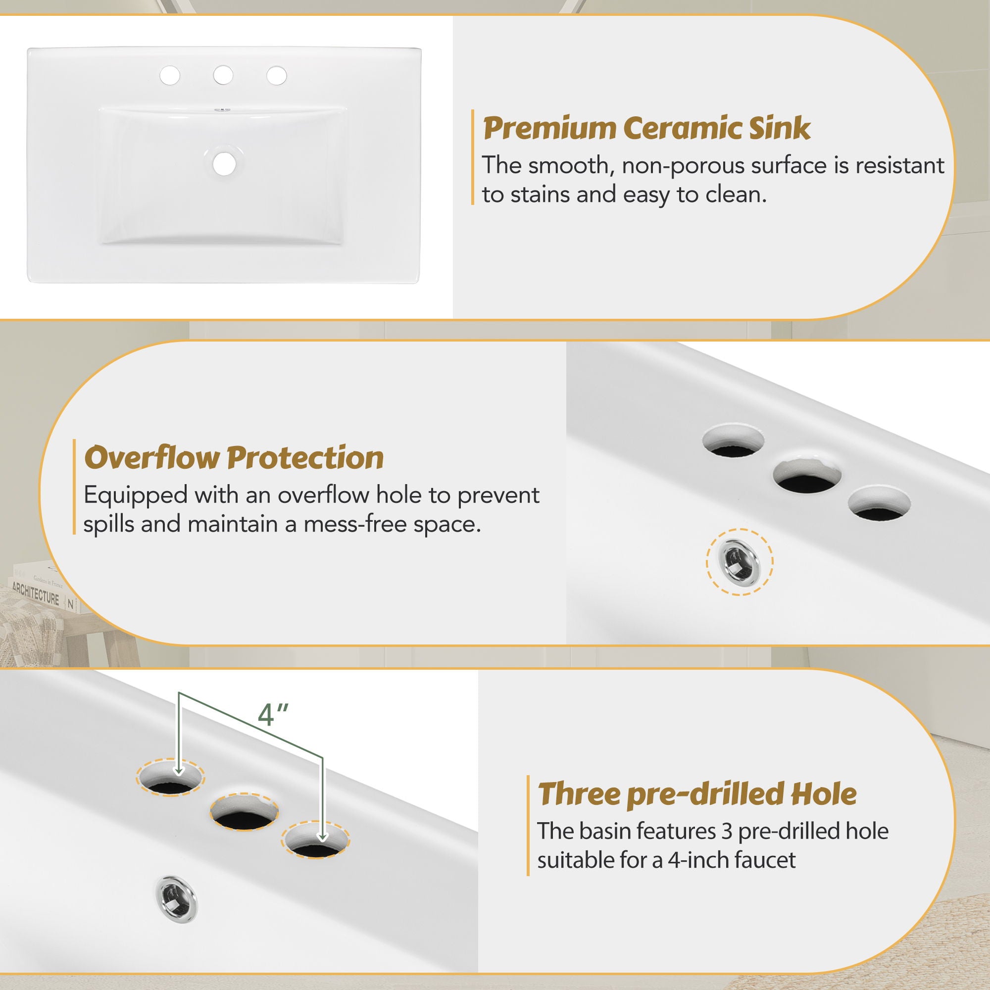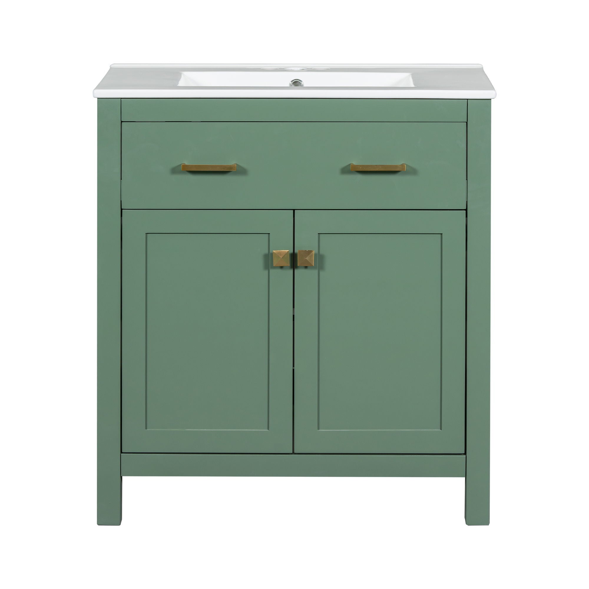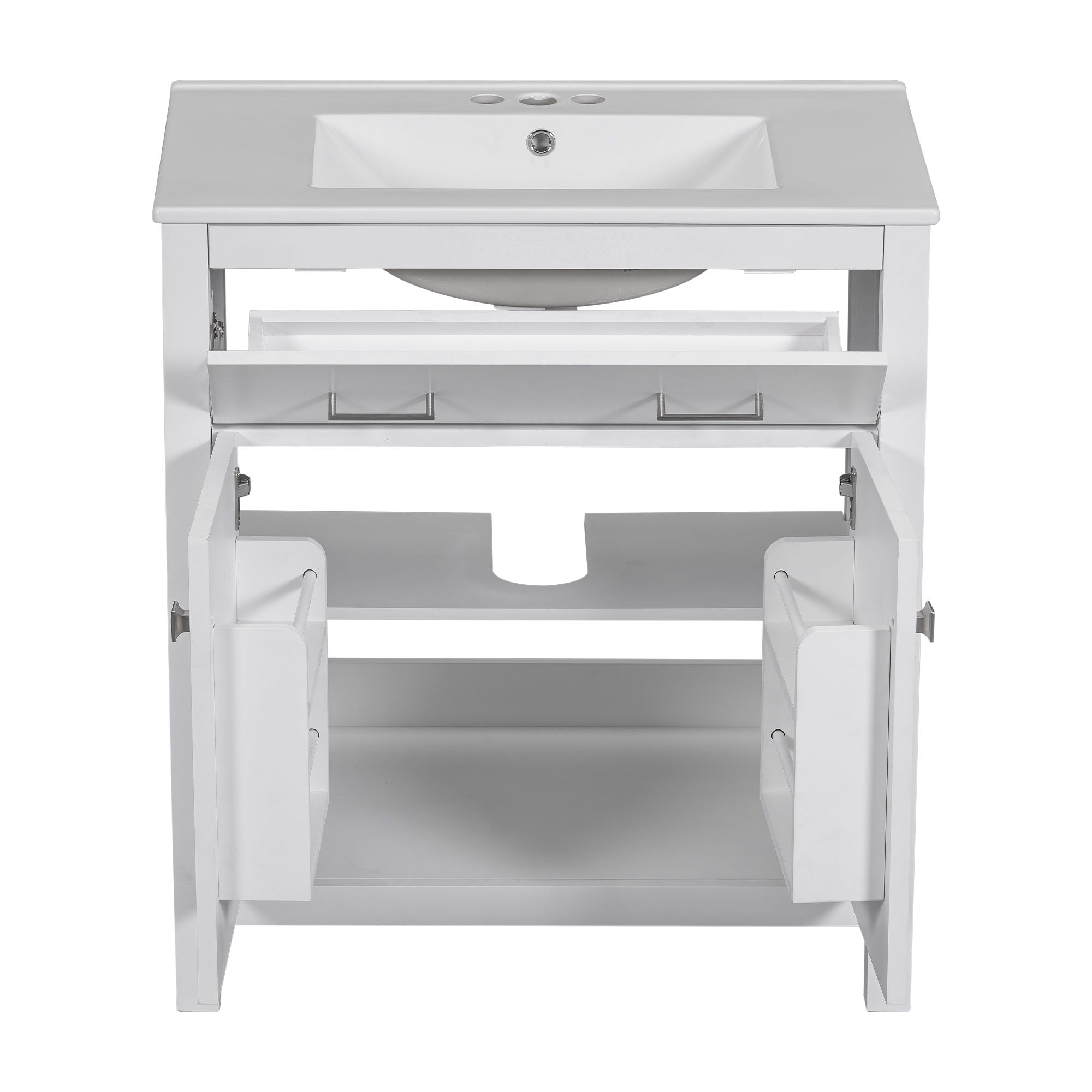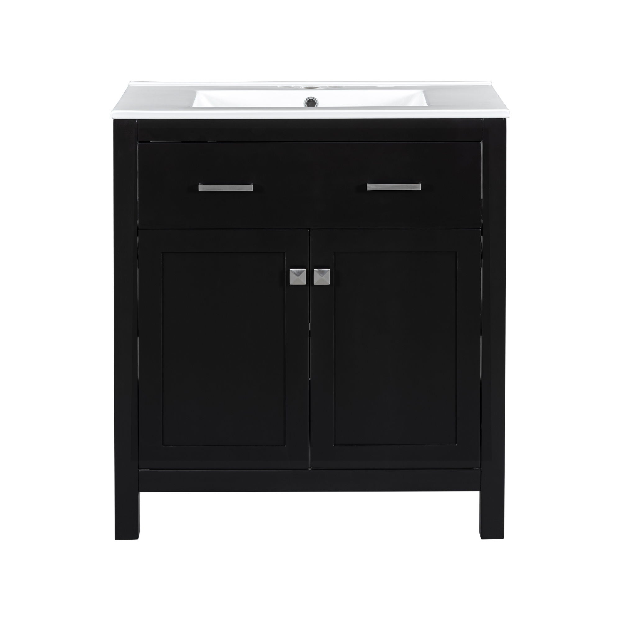 Bathroom Vanity With Ceramic Sink, Modern Single Bathroom Cabinet With 2 Doors And A Shelf, Soft Close Doors