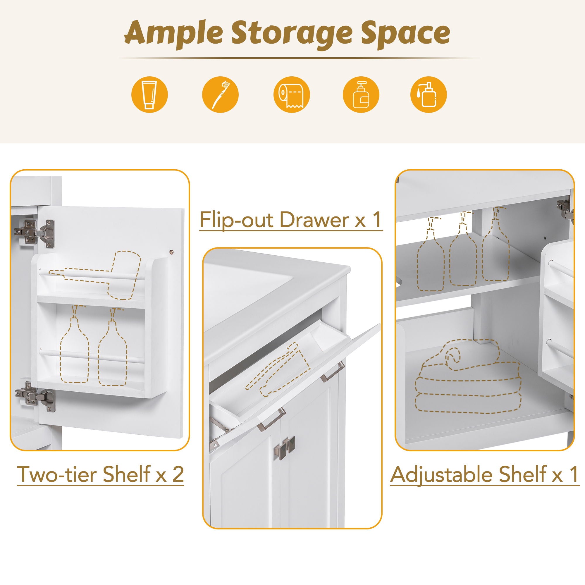 Versatile Storage: Features a flip-out drawer, two cabinet doors with storage racks, and a height-adjustable U-shaped shelf that provides ample...