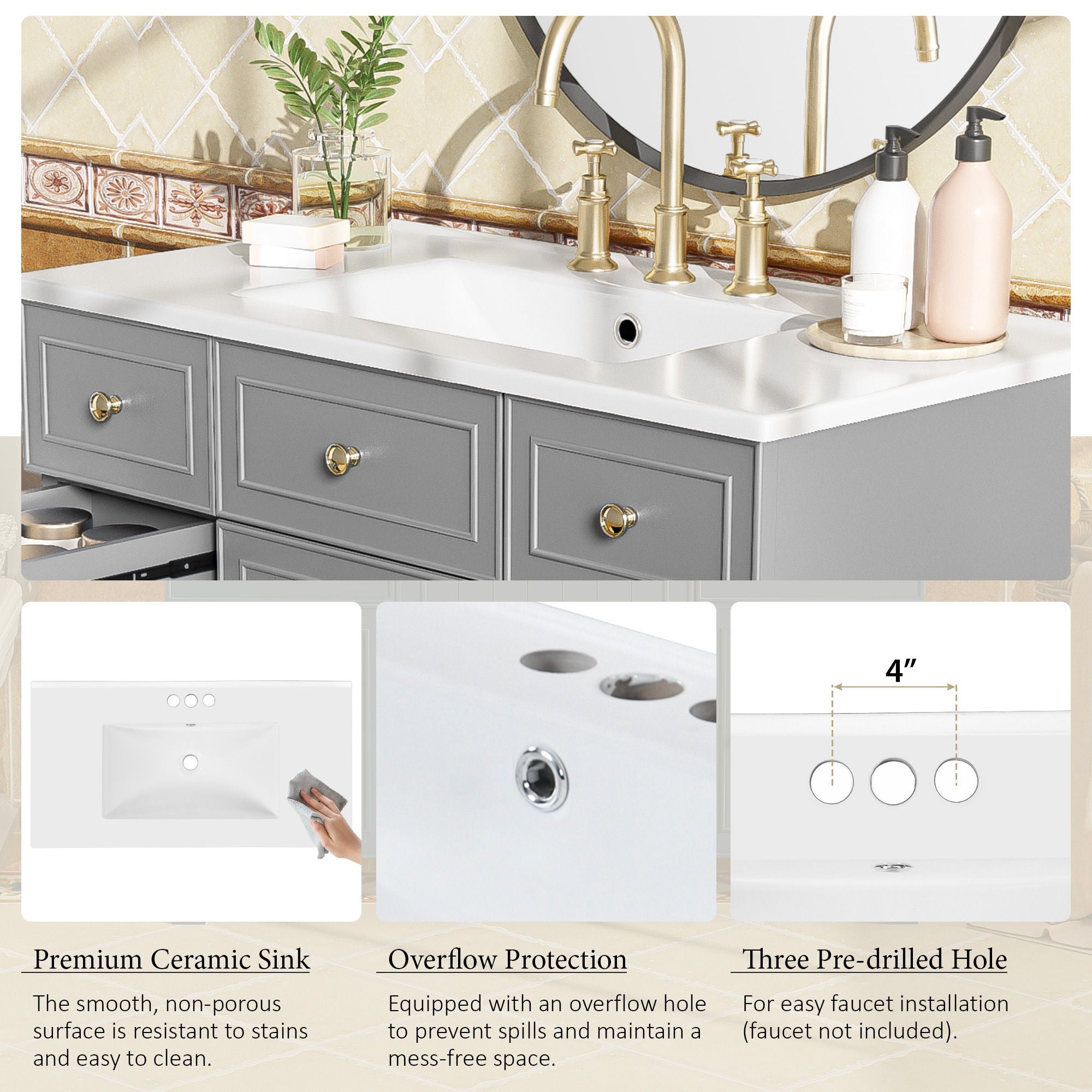 - [Solid Wood & Structure]:Built with a solid wood frame and panels, this vanity is sturdy, durable, and ideal for daily bathroom use.