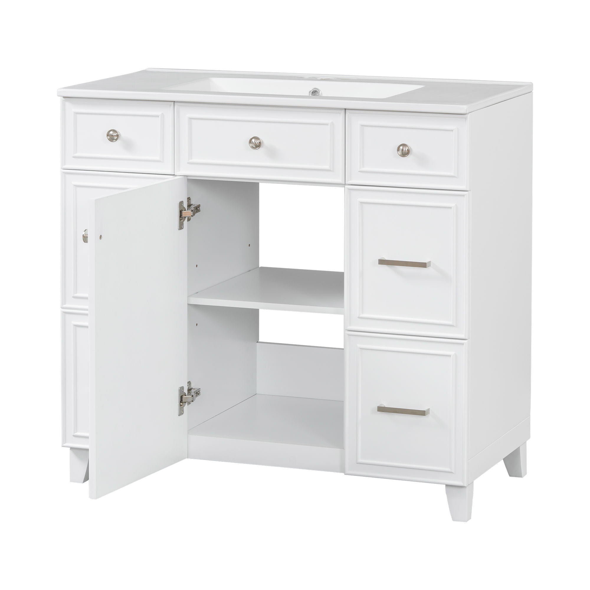 36" Bathroom Vanity With Sink, Soft Close Doors, And Adjustable Shelves Solid Frame - White18.3"W x 36.0"D x 34.0"H - 114.64 lb