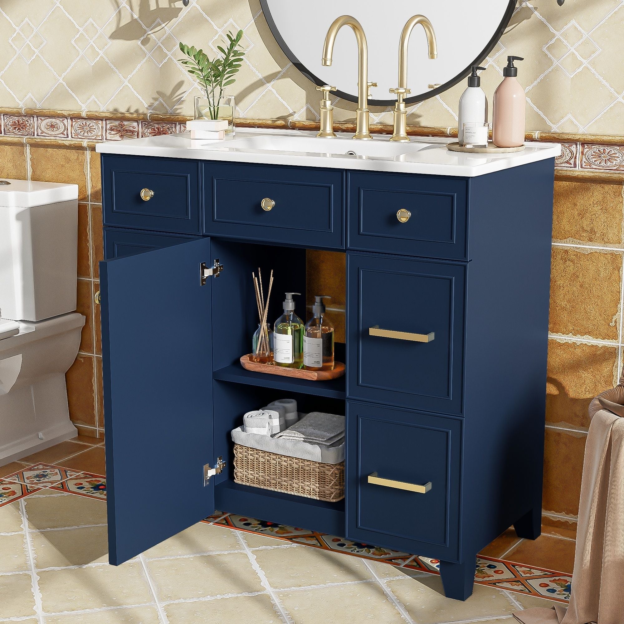 Bathroom Vanity With Sink, Soft Close Doors, Adjustable Shelves - Blue18.3"W x 36.0"D x 34.0"H - 114.64 lb