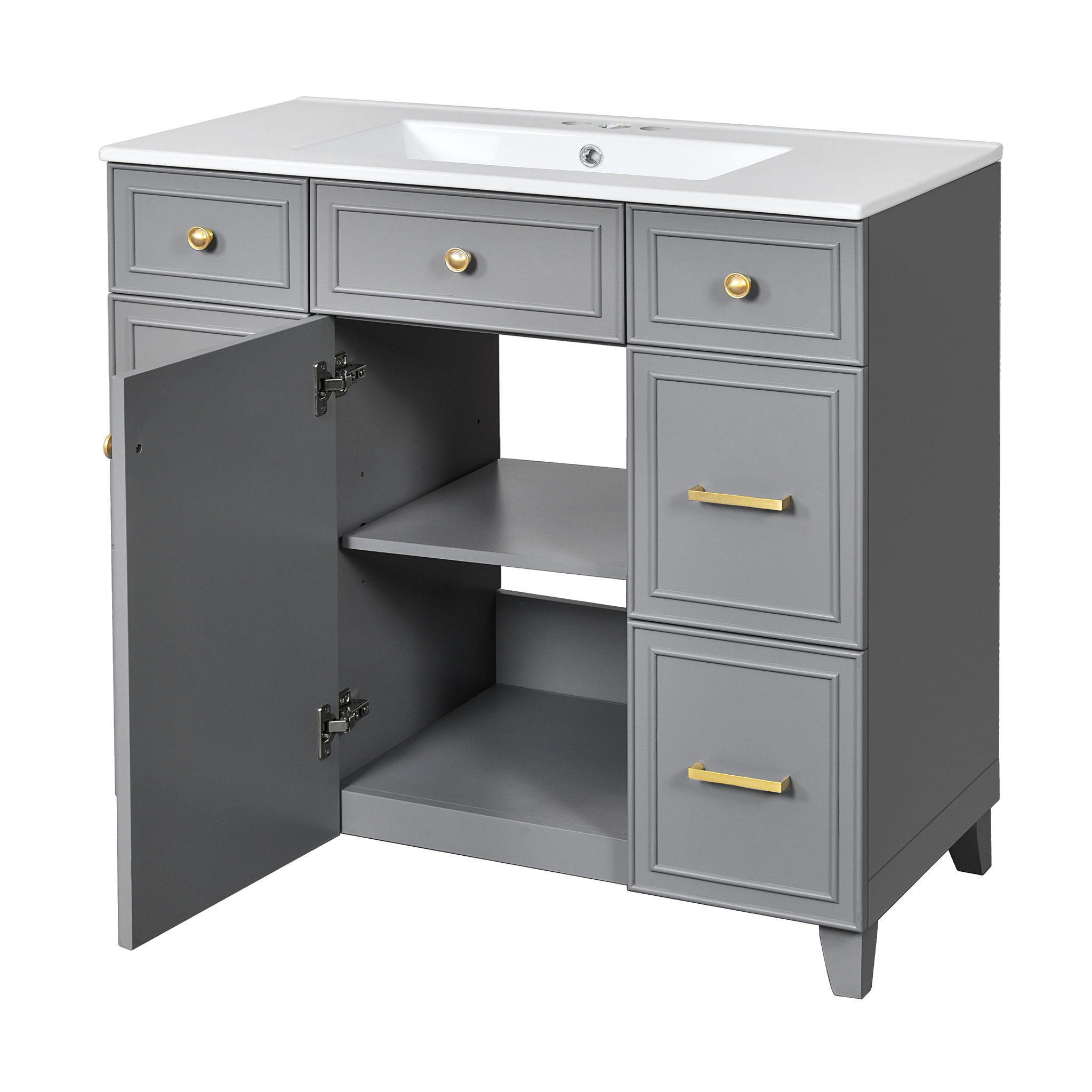 Bathroom Vanity With Sink, Soft Close Doors, Adjustable Shelves, 36" - Gray18.3"W x 36.0"D x 34.0"H - 114.64 lb