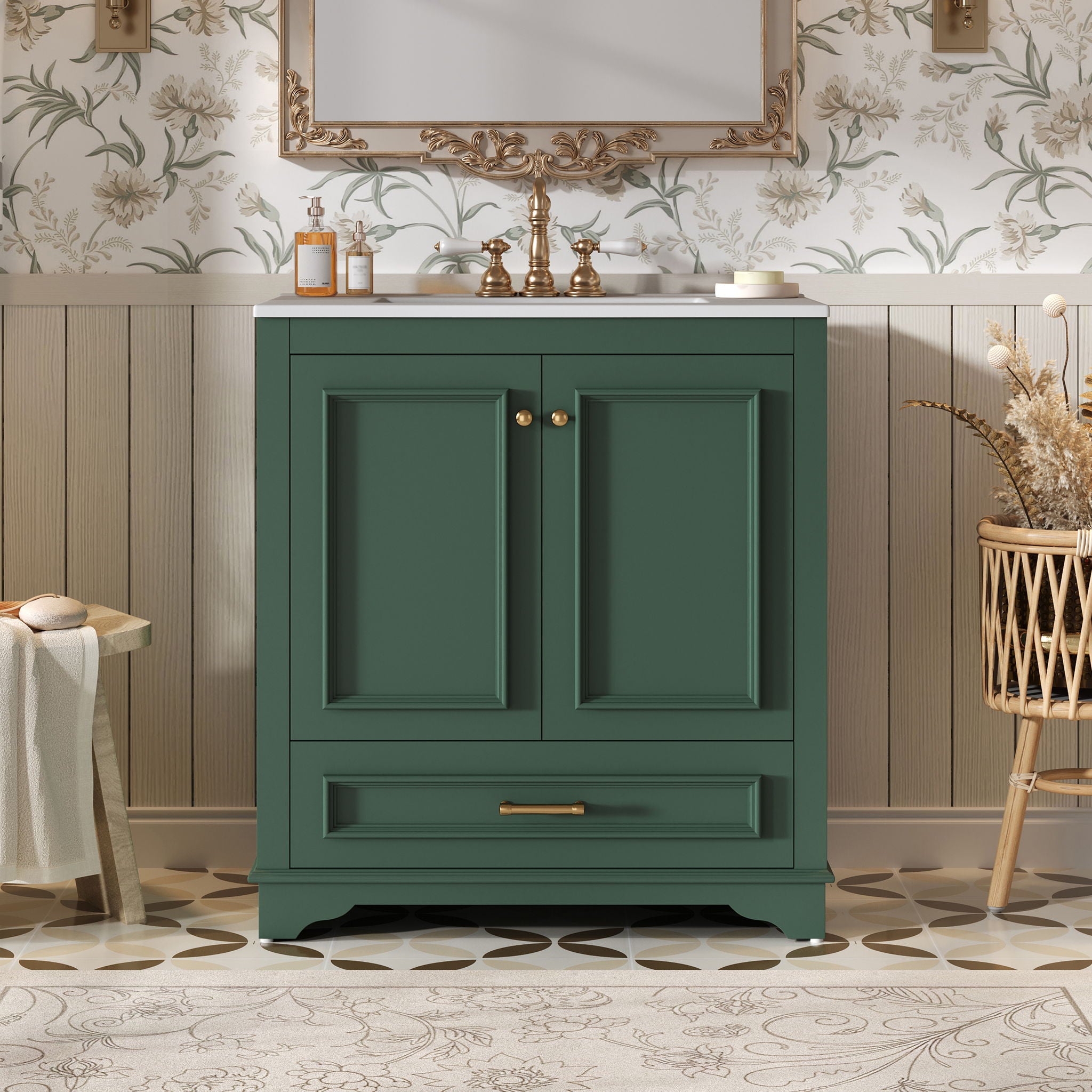 Bathroom Vanity With Sink, Cabinet With 2 Soft Closing Doors And Drawer Storage - Green30.5"W x 18.4"D x 33.9"H - 89.29 lb
