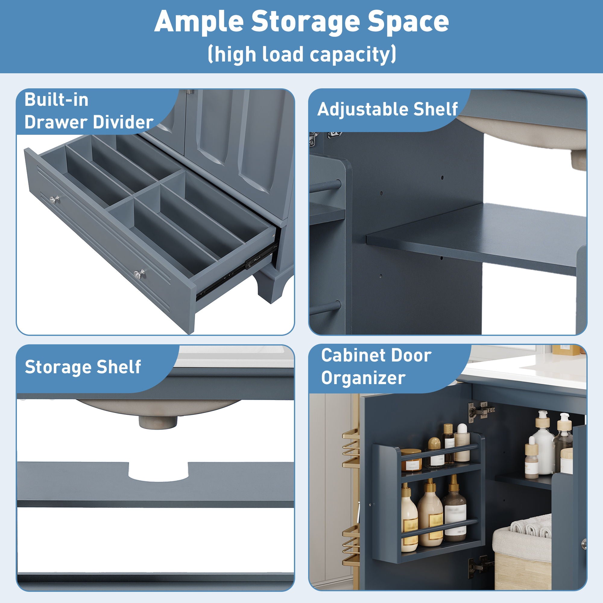 Bathroom Vanity With Sink, Cabinet With Adjustable Shelf And Drawer Divider