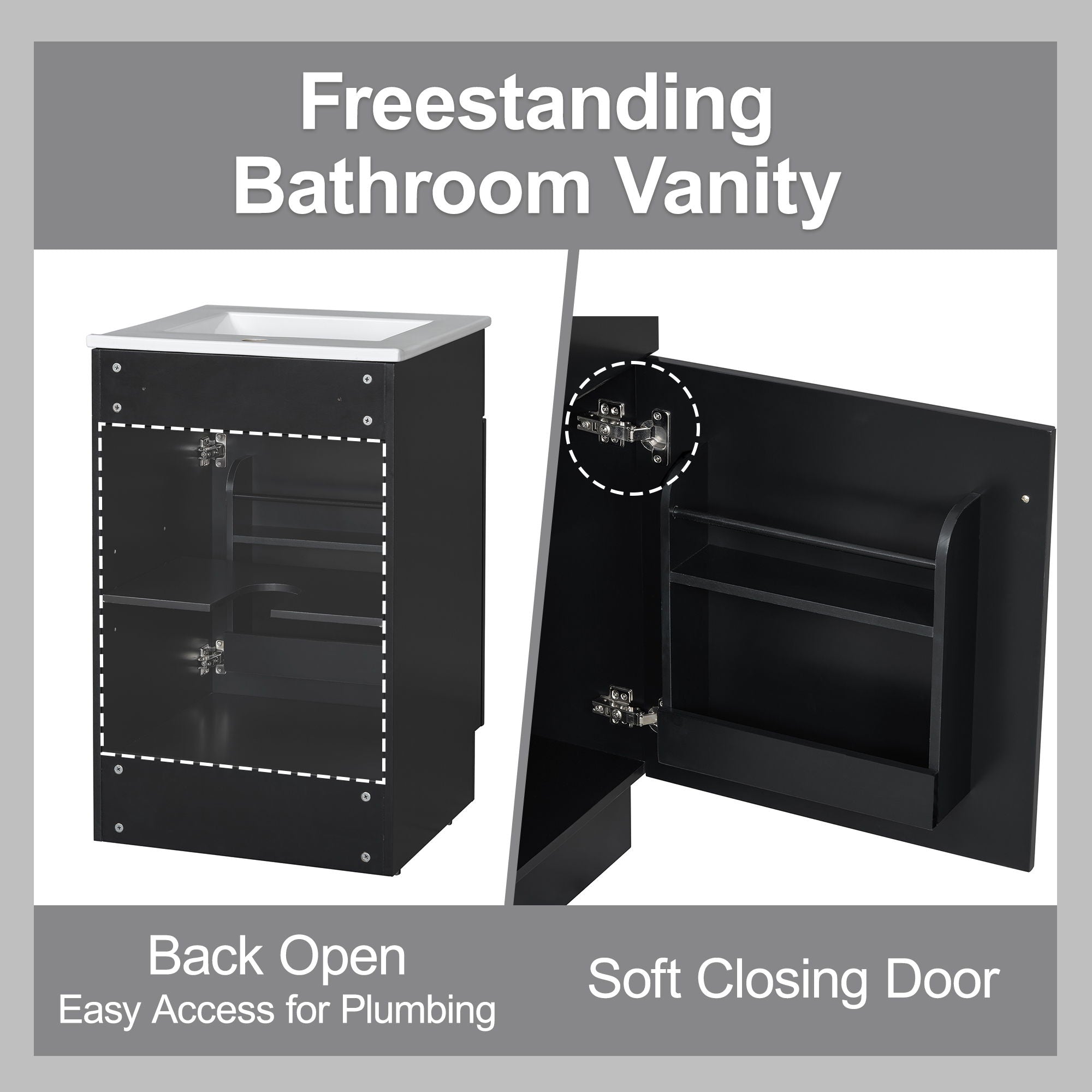 20" Bathroom Vanity With Sink, Freestanding Cabinet With Door Shelf And Adjustable Shelf, And Ceramic Construction - Black20.0"W x 18.3"D x 32.2"H - 59.53 lb