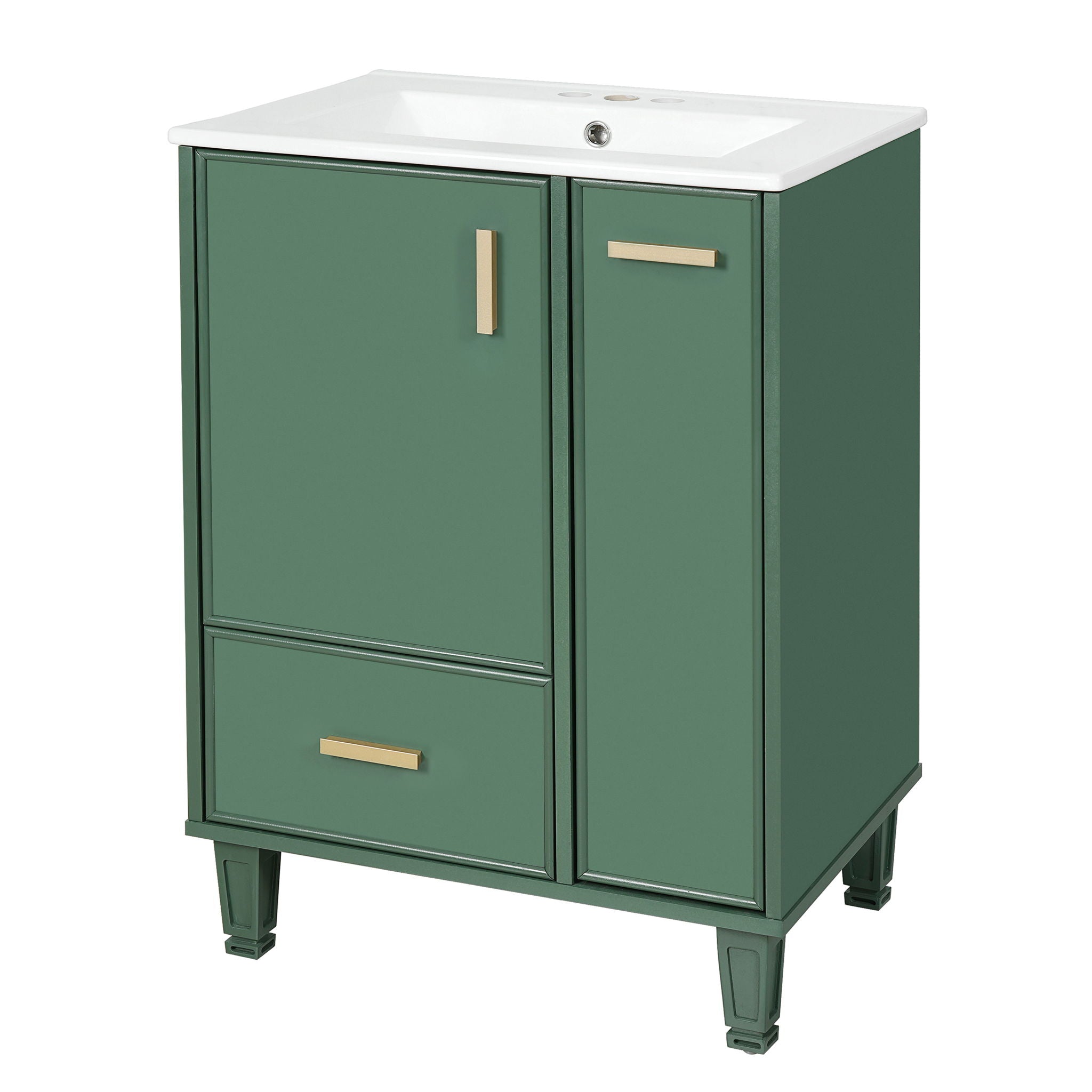 Solid Wood And 24" Bathroom Vanity With Sink, Deep Drawer, Door Shelf, 2 Tier Basket - Green
