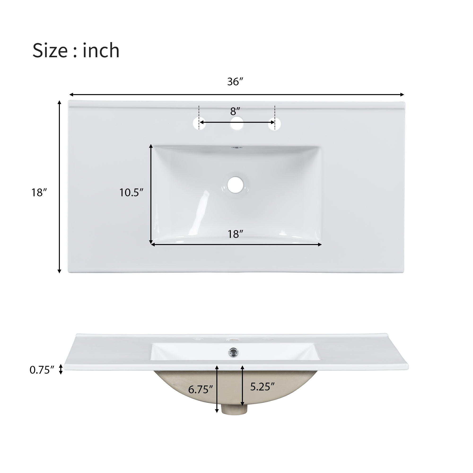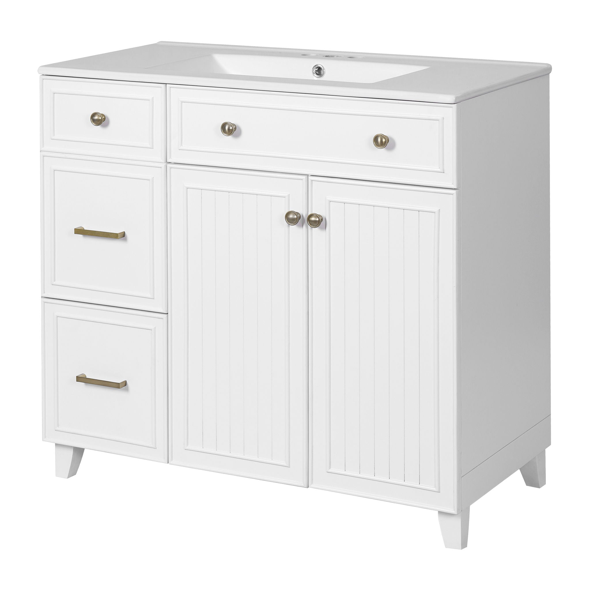 36" Bathroom Vanity With Sink, Soft Close Doors, Adjustable Shelves - White18.3"W x 36.0"D x 34.0"H - 106.48 lb