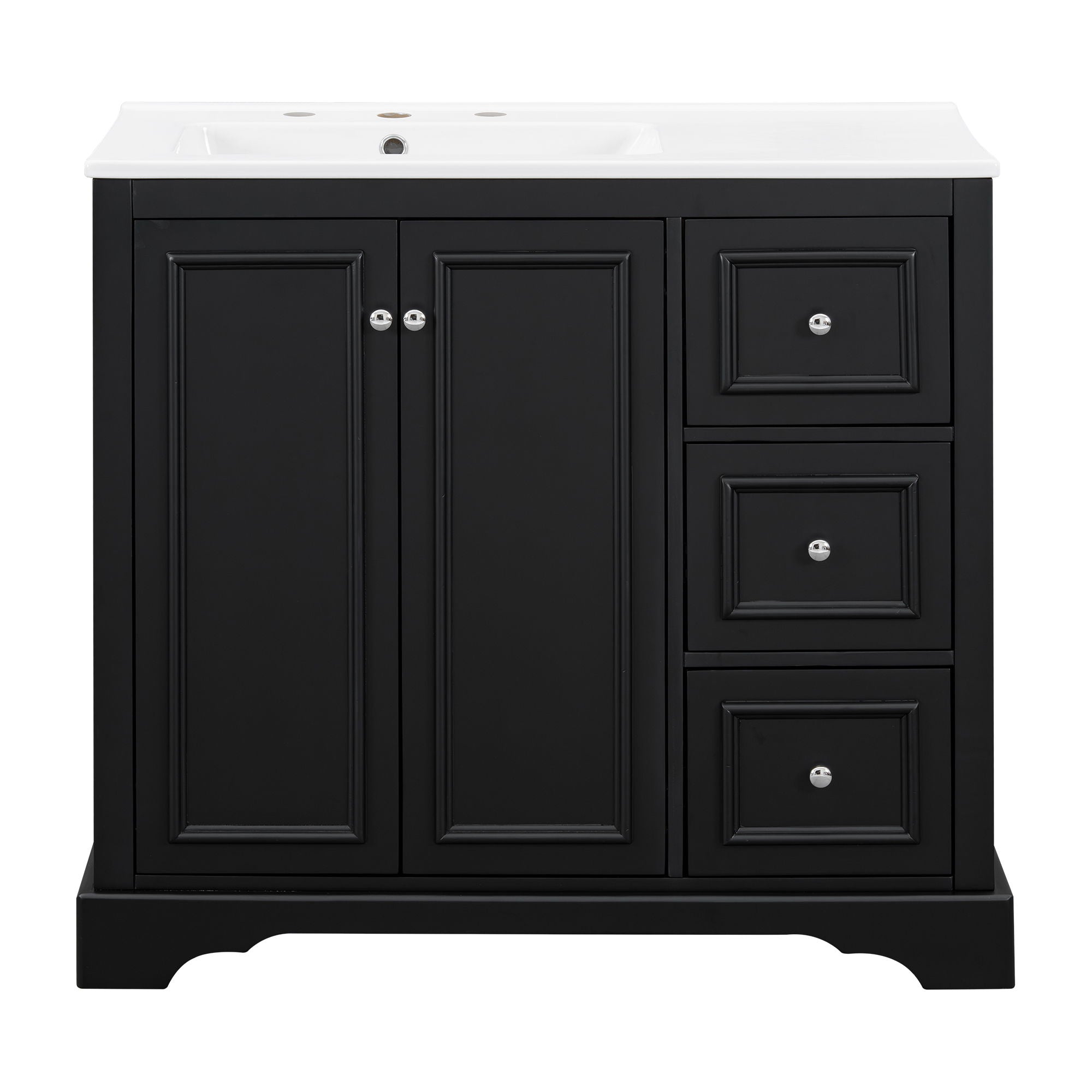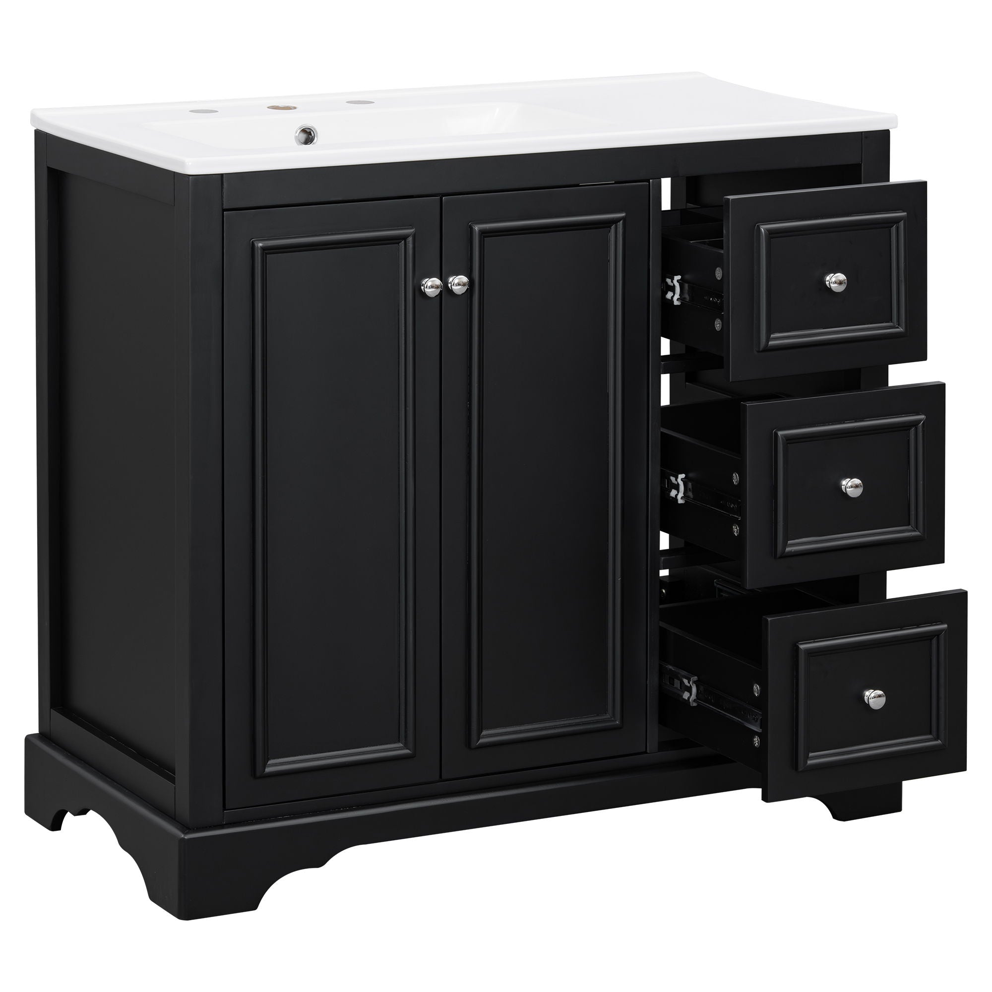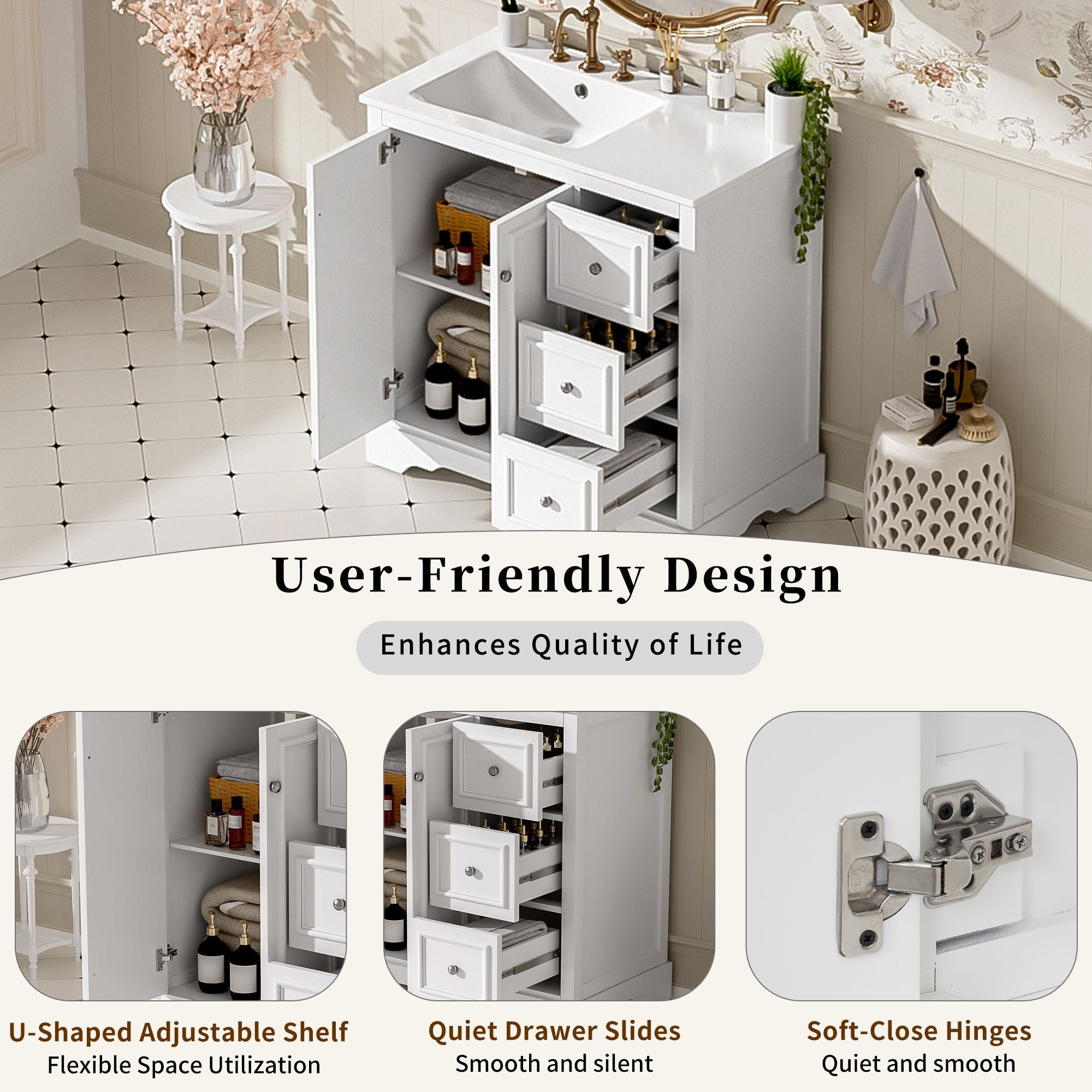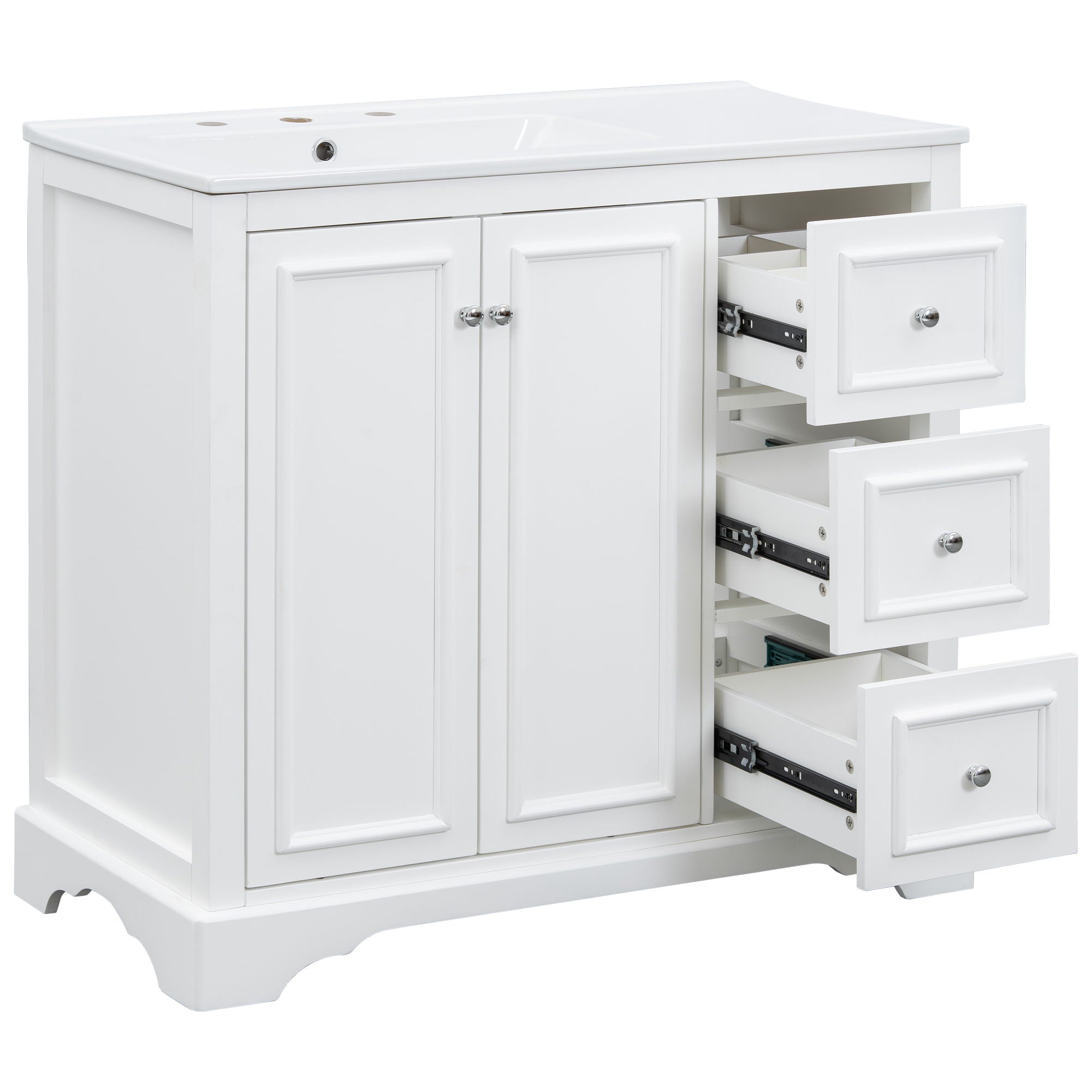 Bathroom Vanity With Sink, Soft-Close Doors, Adjustable U-Shelf, 3 Drawers