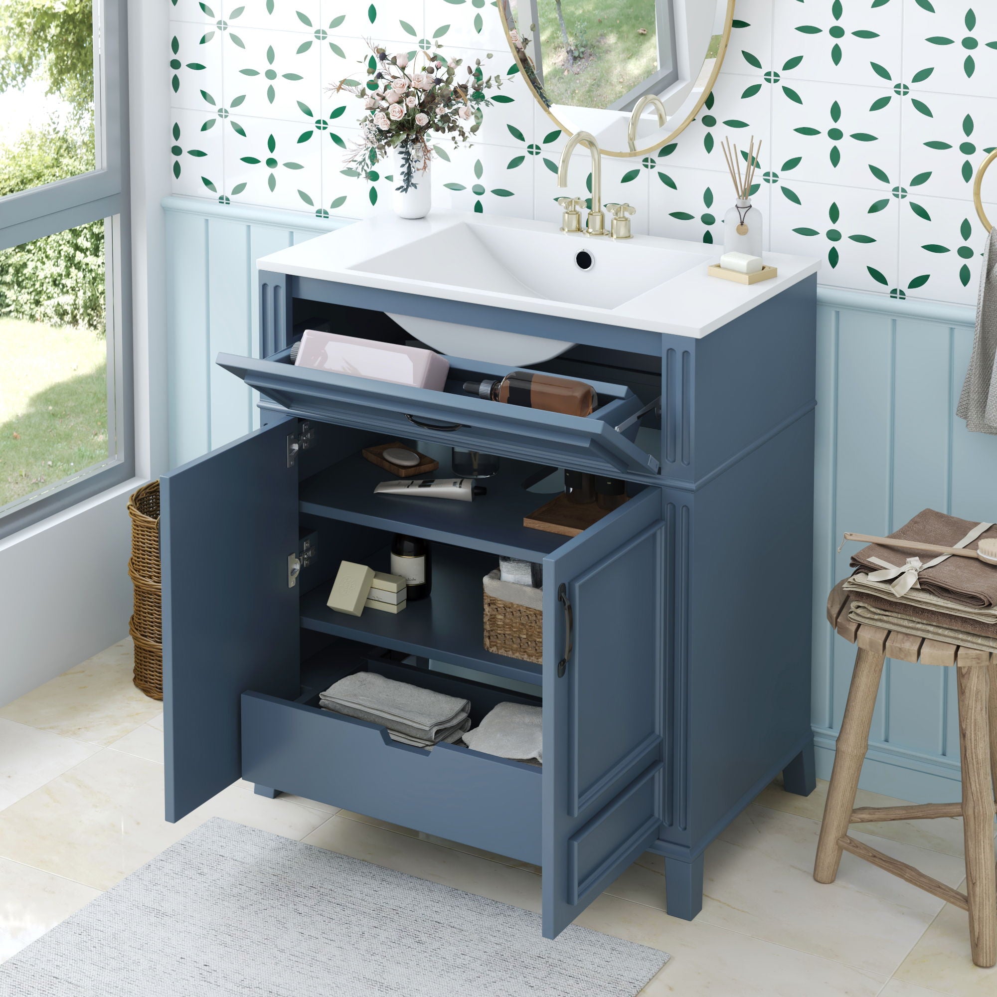 Bathroom Vanity With Sink Storage Cabinet - Blue