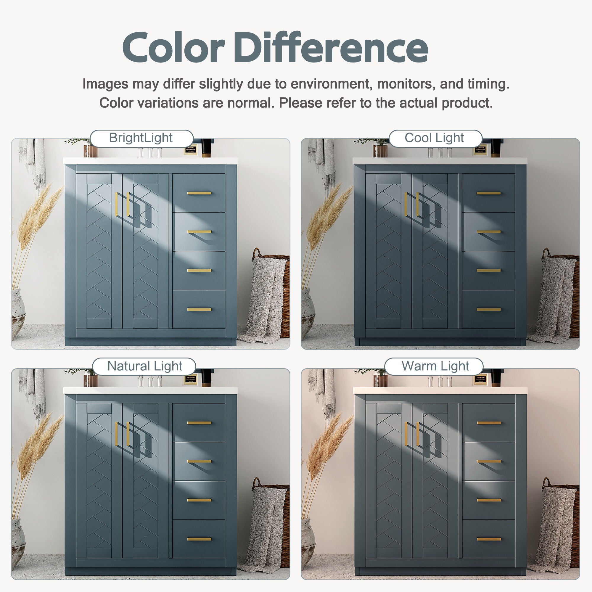 Bathroom Vanity With Sink, Storage Cabinet, Freestanding Set With 3 Drawers & Soft Closing Doors