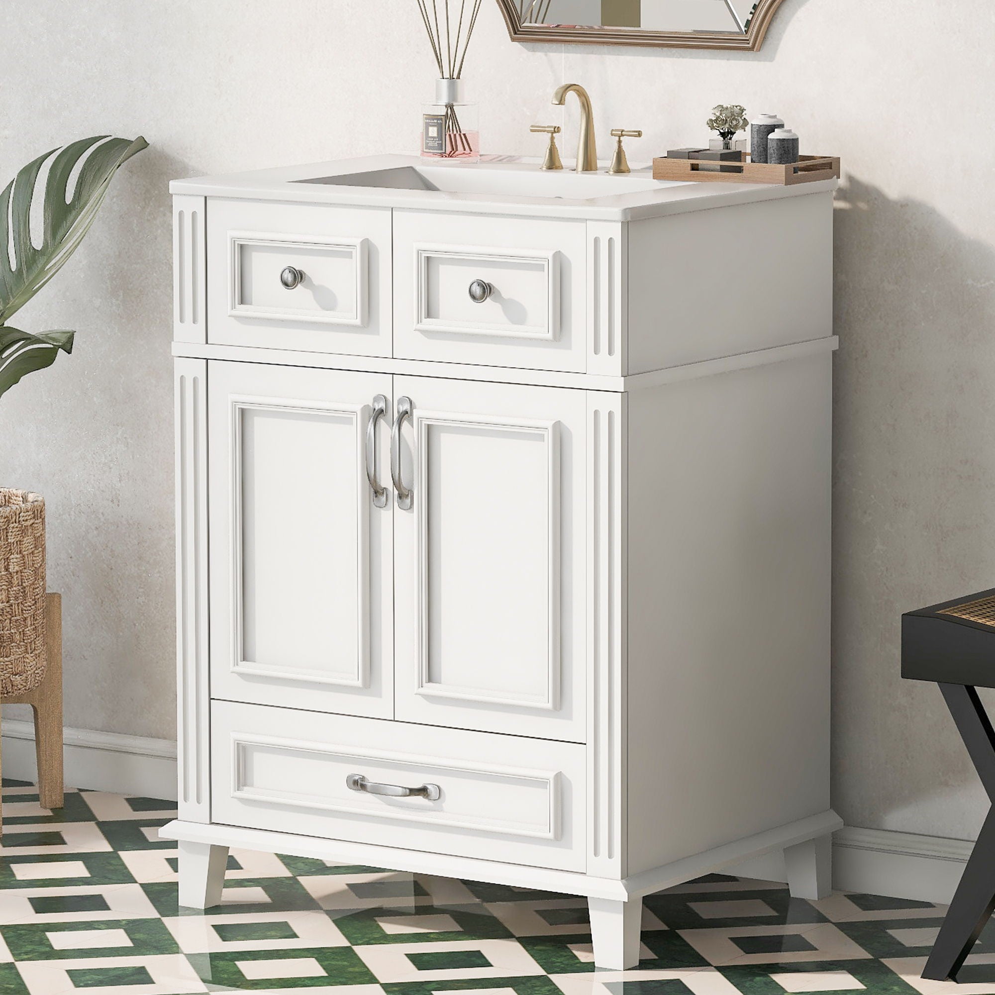 Solid Wood Frame: Durable construction with rubberwood frame ensures strength and longevity Ceramic Sink: Smooth, wear-resistant surface ideal for daily...