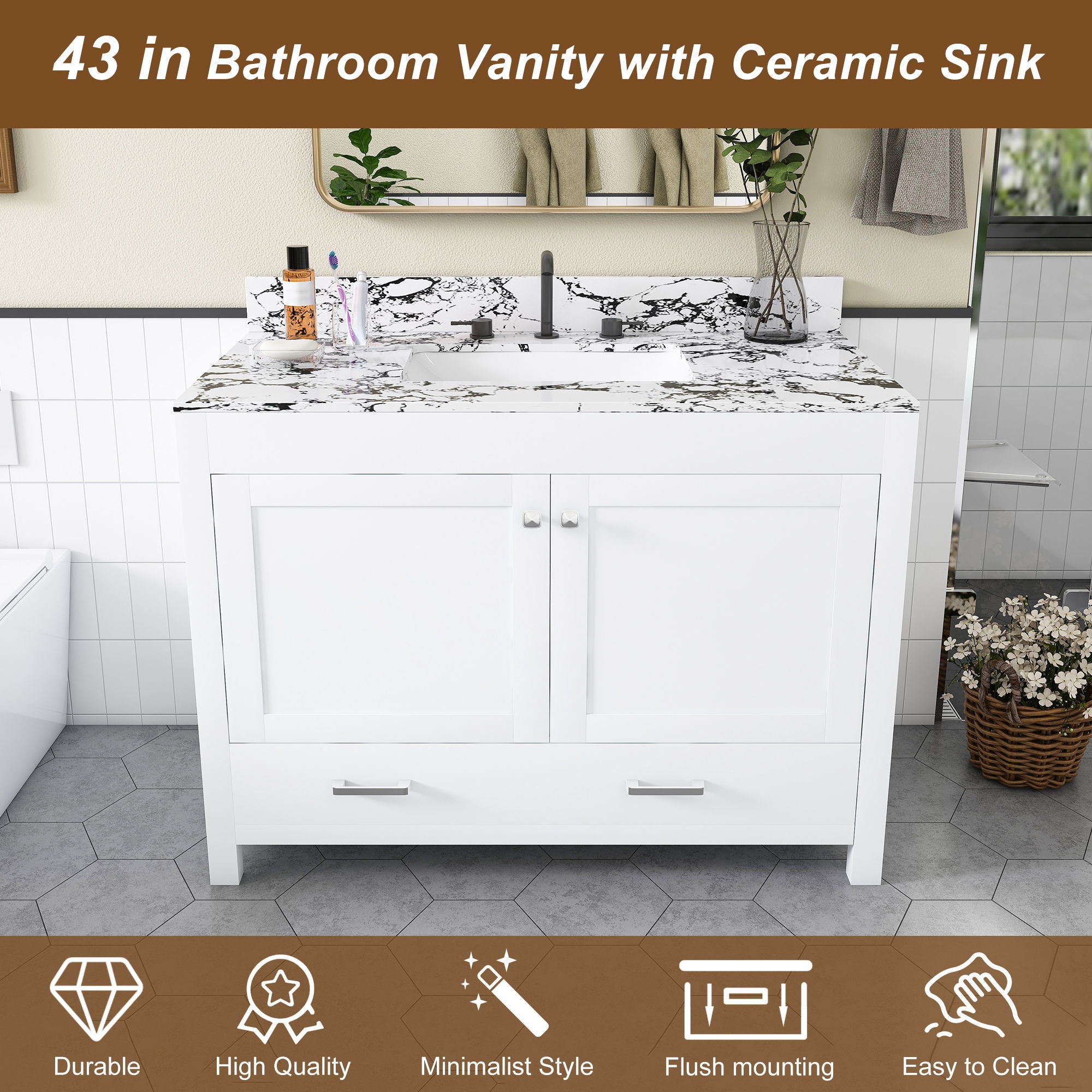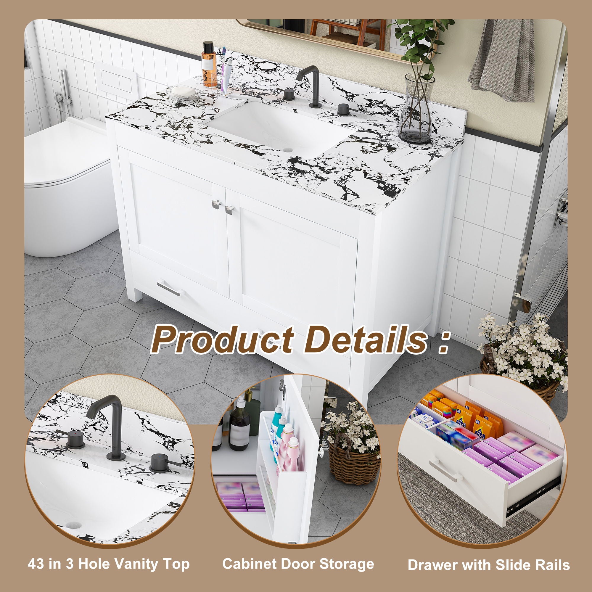 Ample Storage: Multiple drawers and shelf-lined cabinets provide organized space for bathroom essentials Durable Build: Solid wood frame with waterproof...