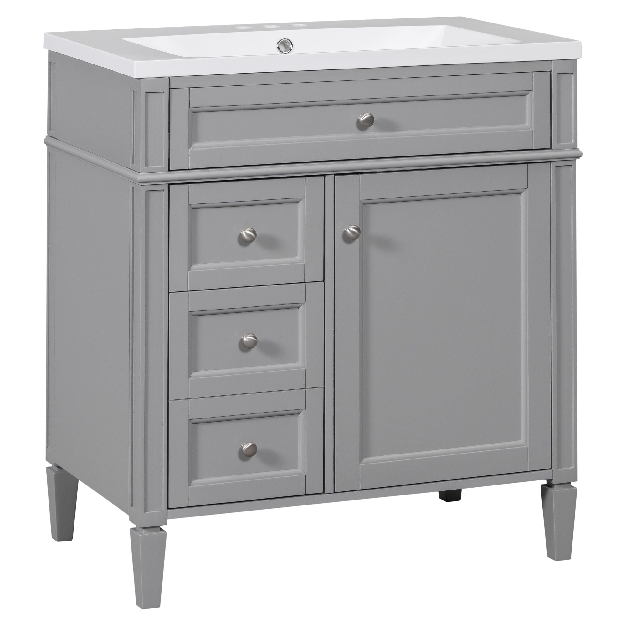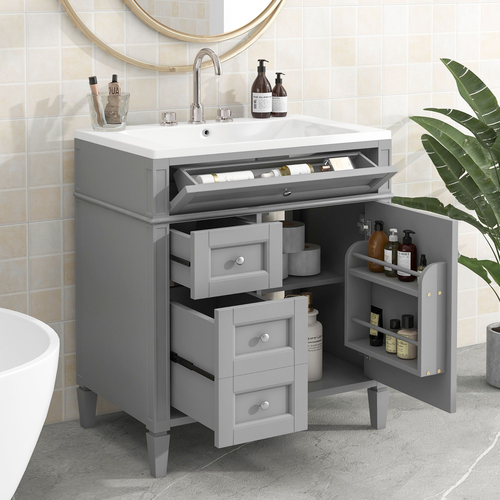Bathroom Vanity With Top Sink, 2 Drawers And Tip-Out Drawer, Cabinet Storage Unit - Gray