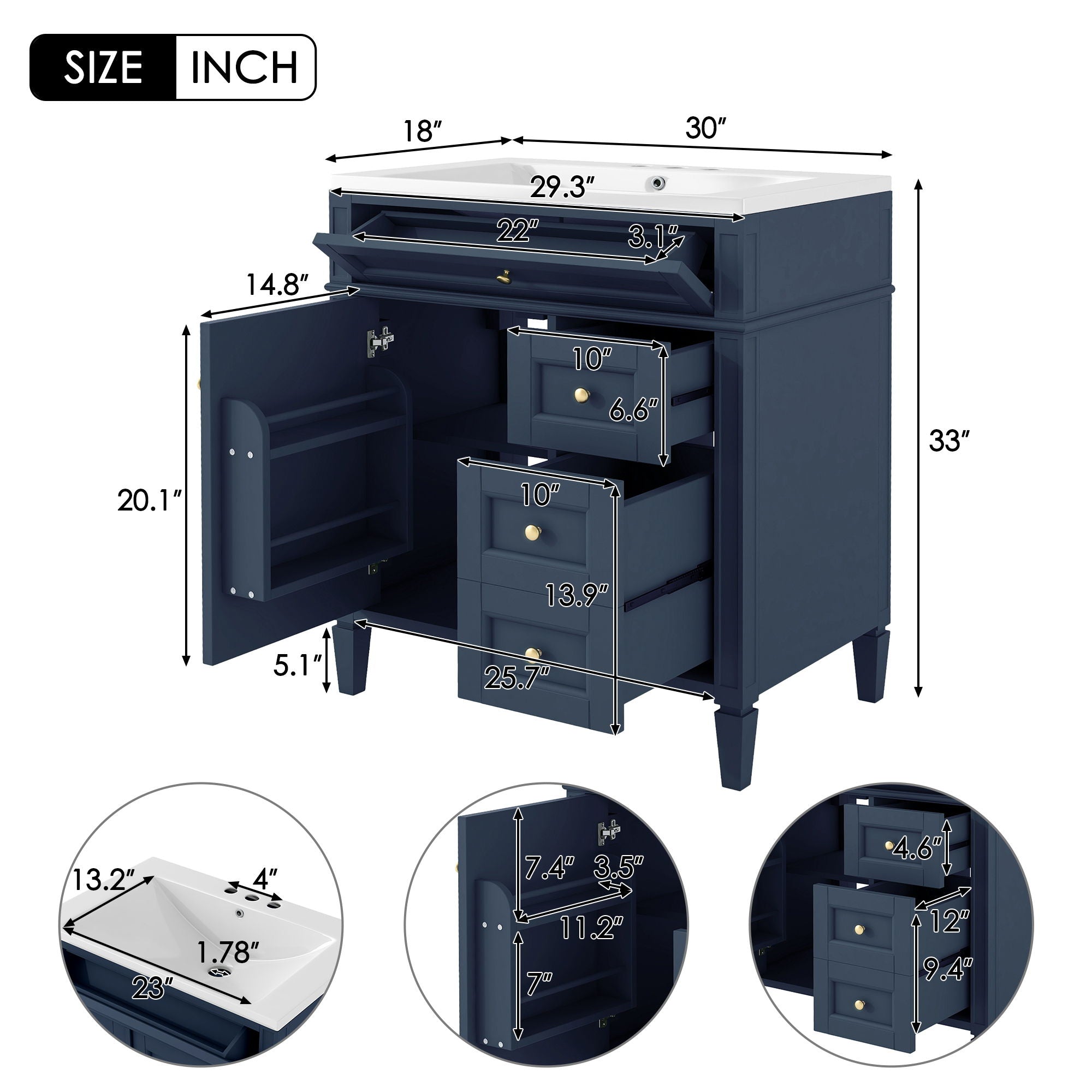Bathroom Vanity With Top Sink, Storage Cabinet & 2 Drawers And Tip Out Drawer - Blue