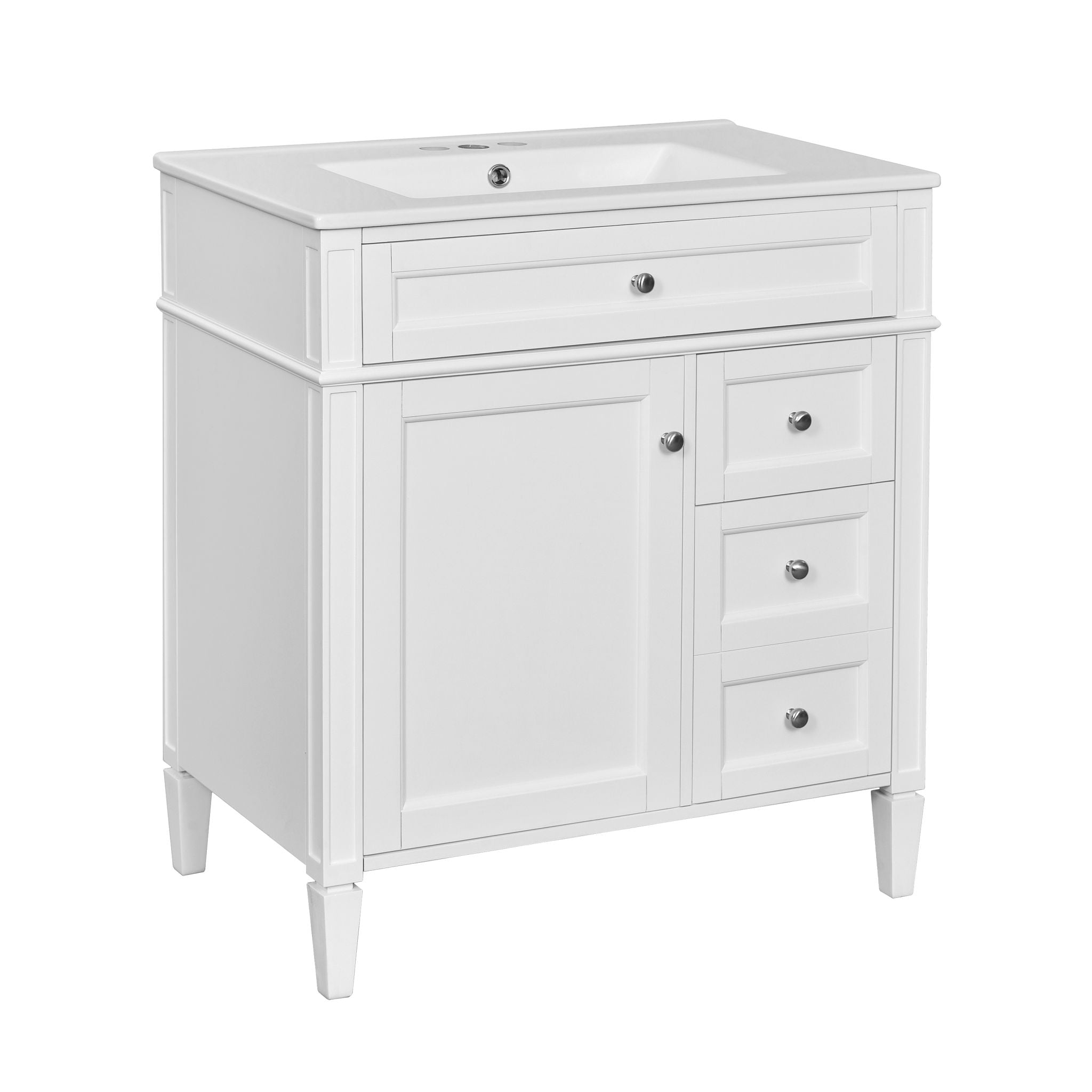 Bathroom Vanity With Top Sink, 2 Drawers & Tip Out Drawer, Rectangular Design - White30.0"W x 18.0"D x 33.8"H - 96.56 lb