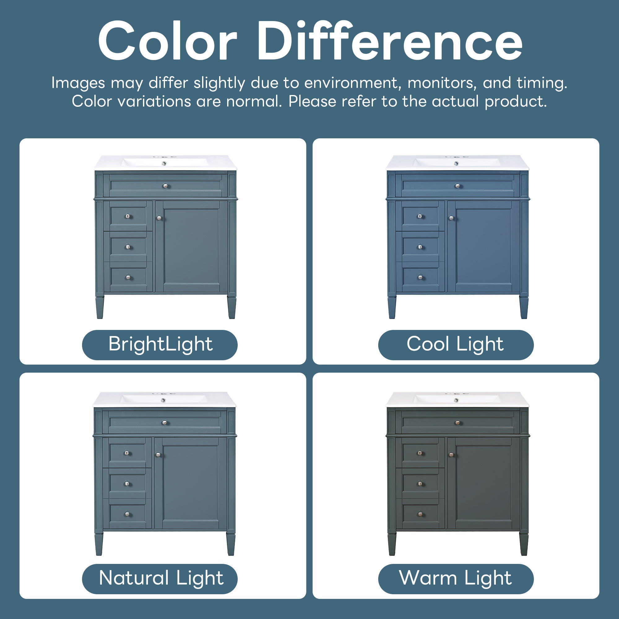 Bathroom Vanity With Top Sink, Storage Cabinet With 2 Drawers And Tip Out Drawer, Rectangular Design - Blue
