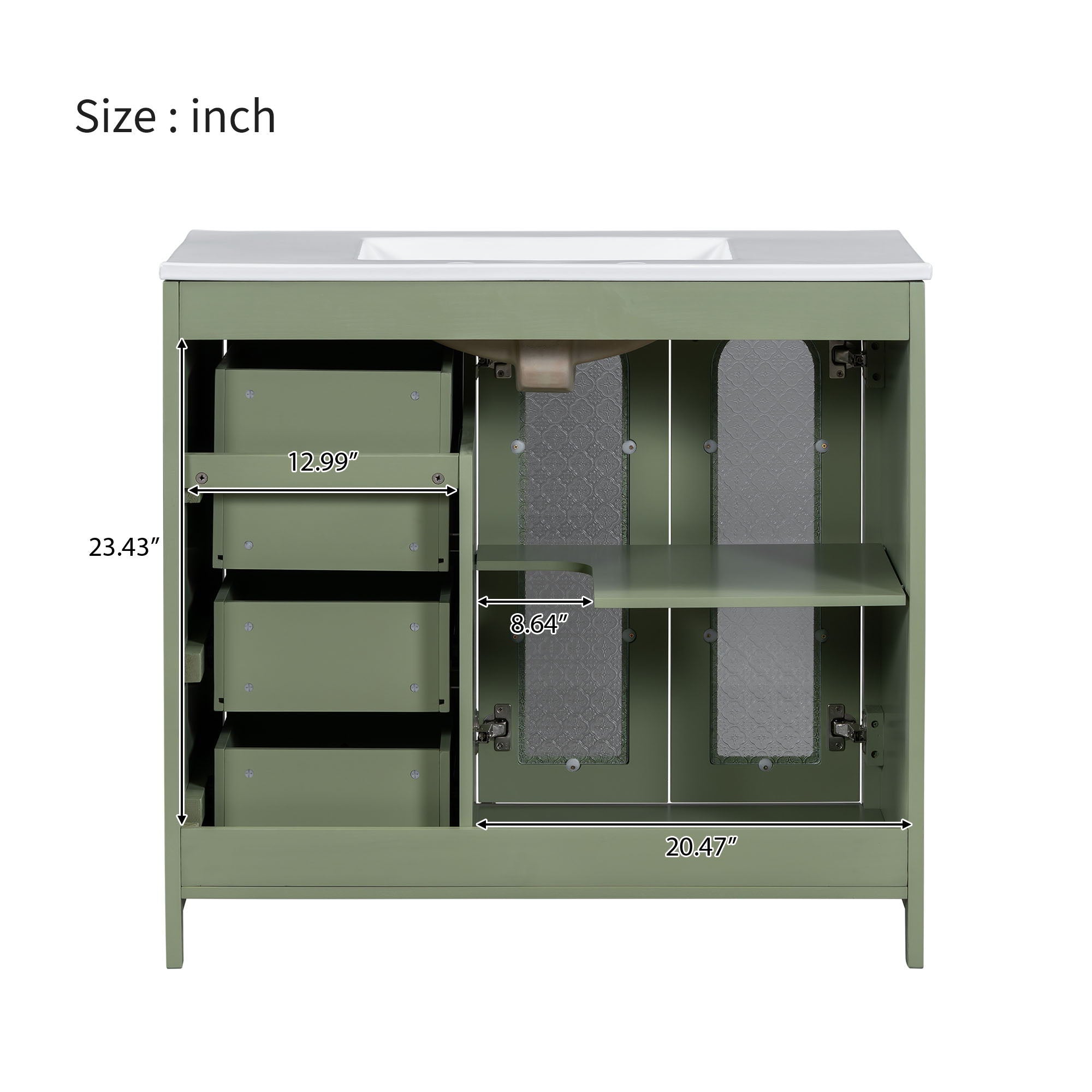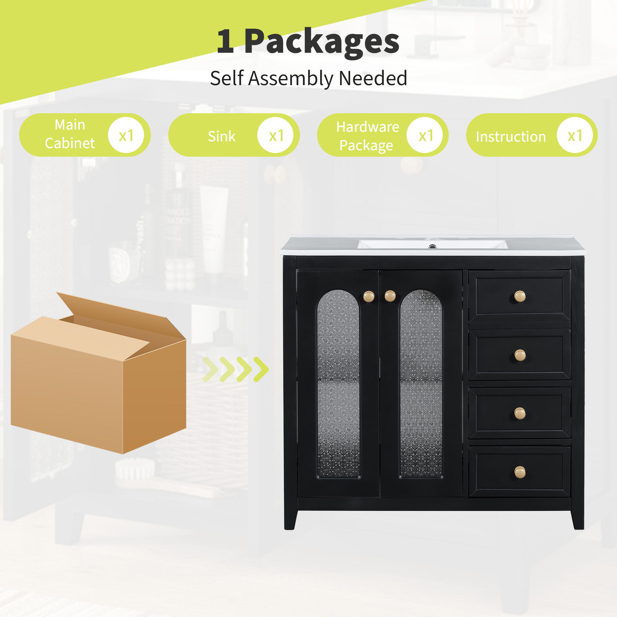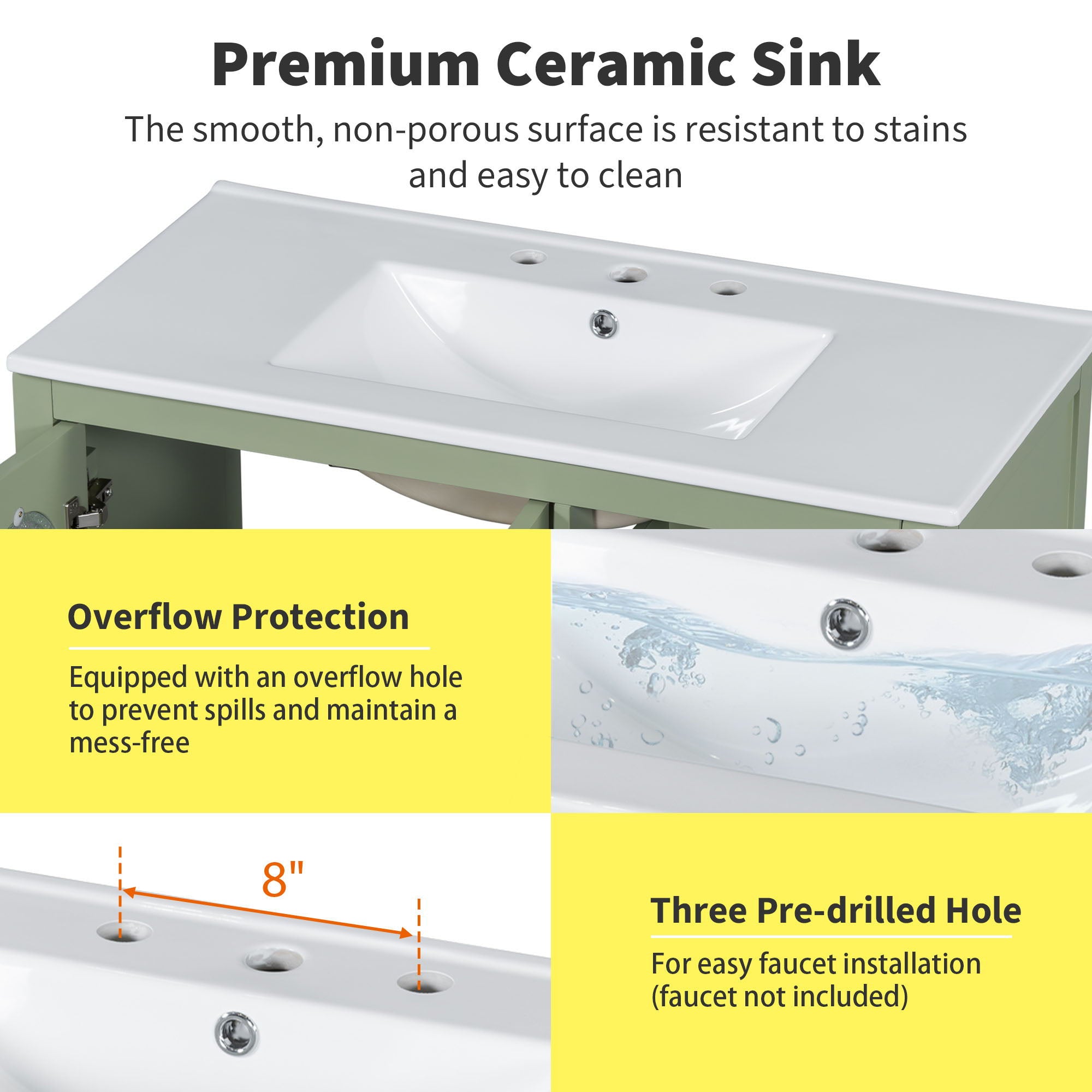 Compact Design: Dimensions of 36.02*18.23*33.86 inches, perfect for small bathrooms without sacrificing style. Easy Maintenance: Features a ceramic basin that...