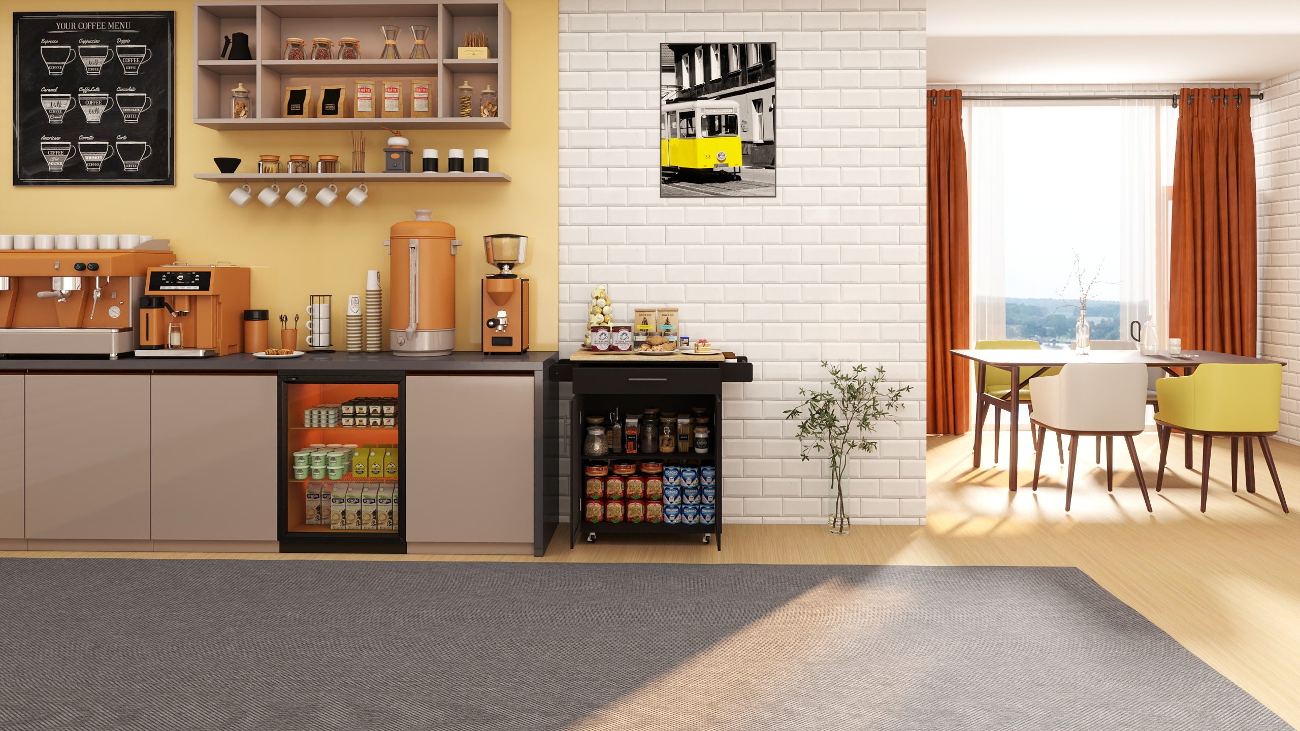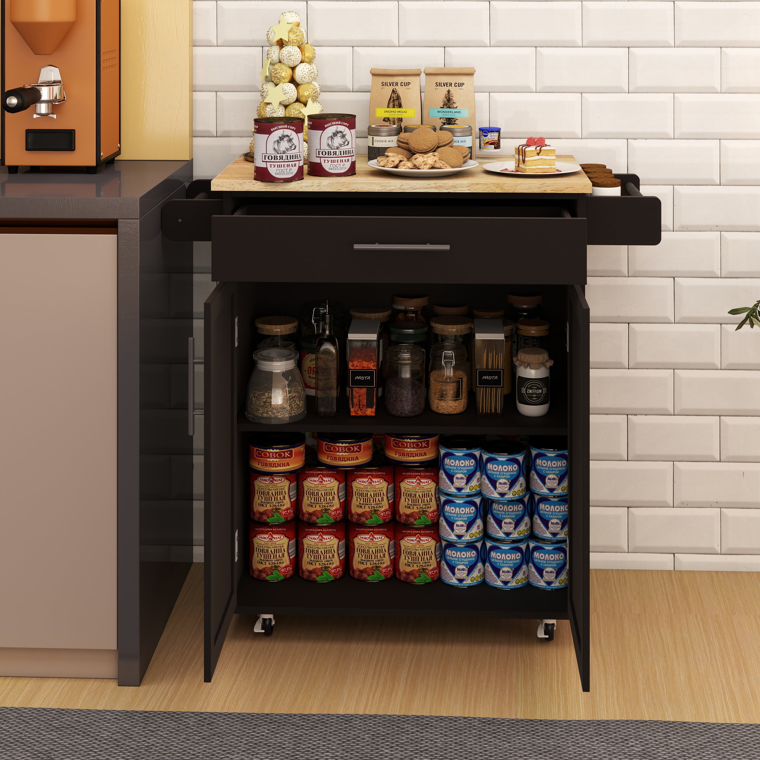 Black Kitchen Island Cart with 1 Drawer, 2-Door Cabinet & Adjustable Shelving – Solid Rubberwood Countertop