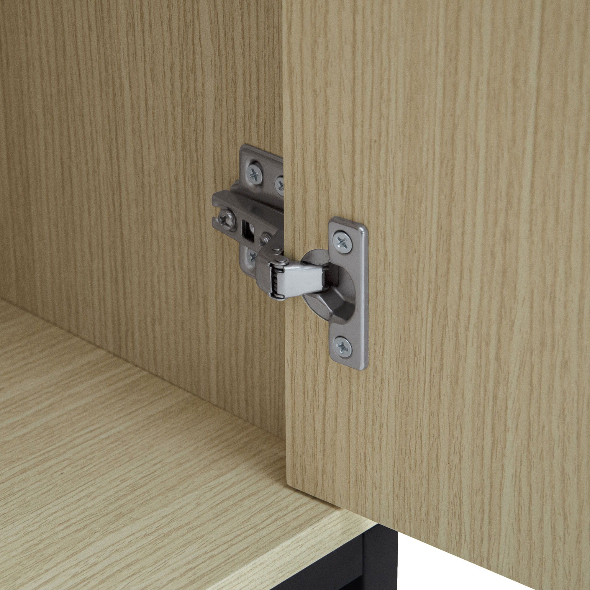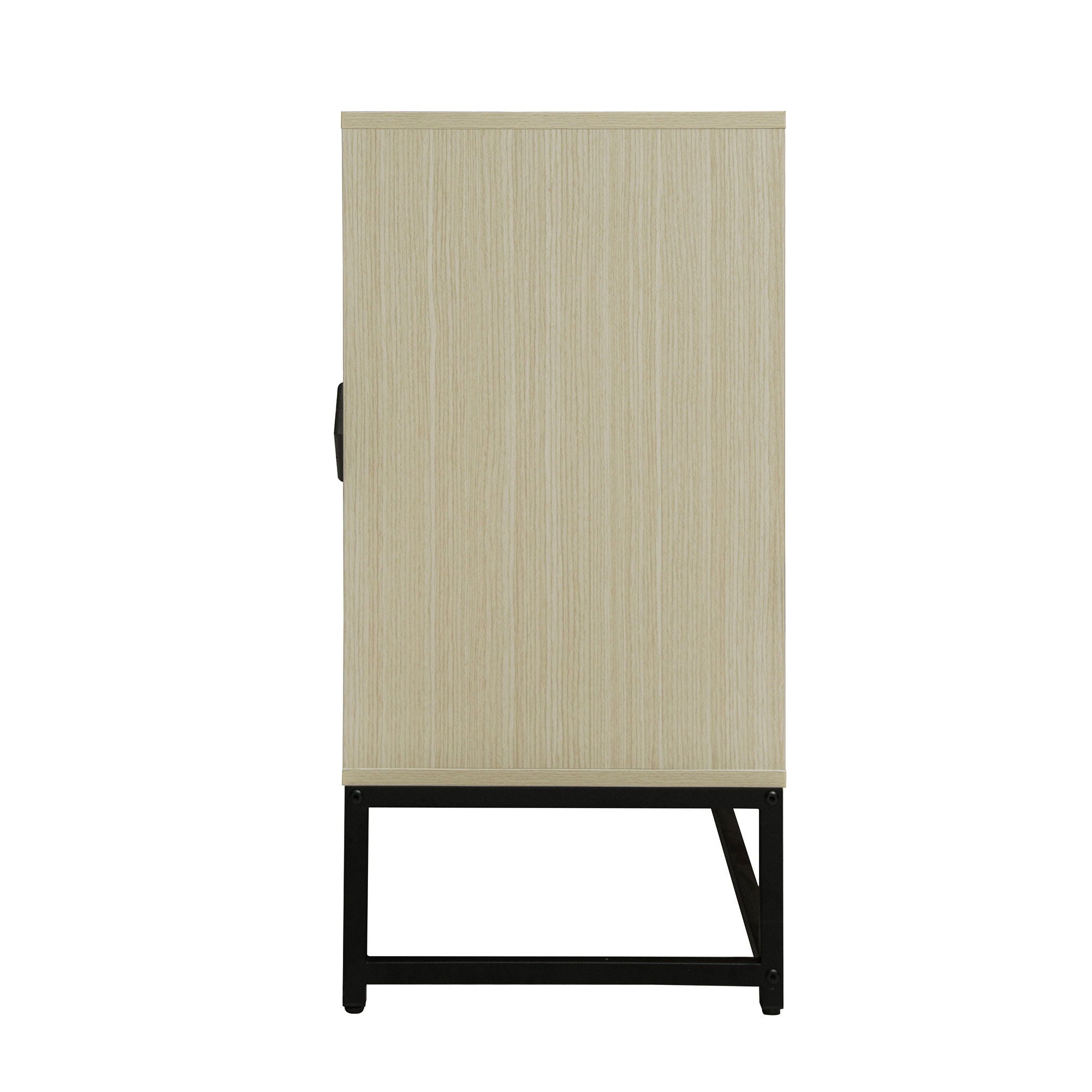 Spacious Four-Door Storage: Features two large compartments divided by a central partition, each with adjustable shelves offering three height settings...