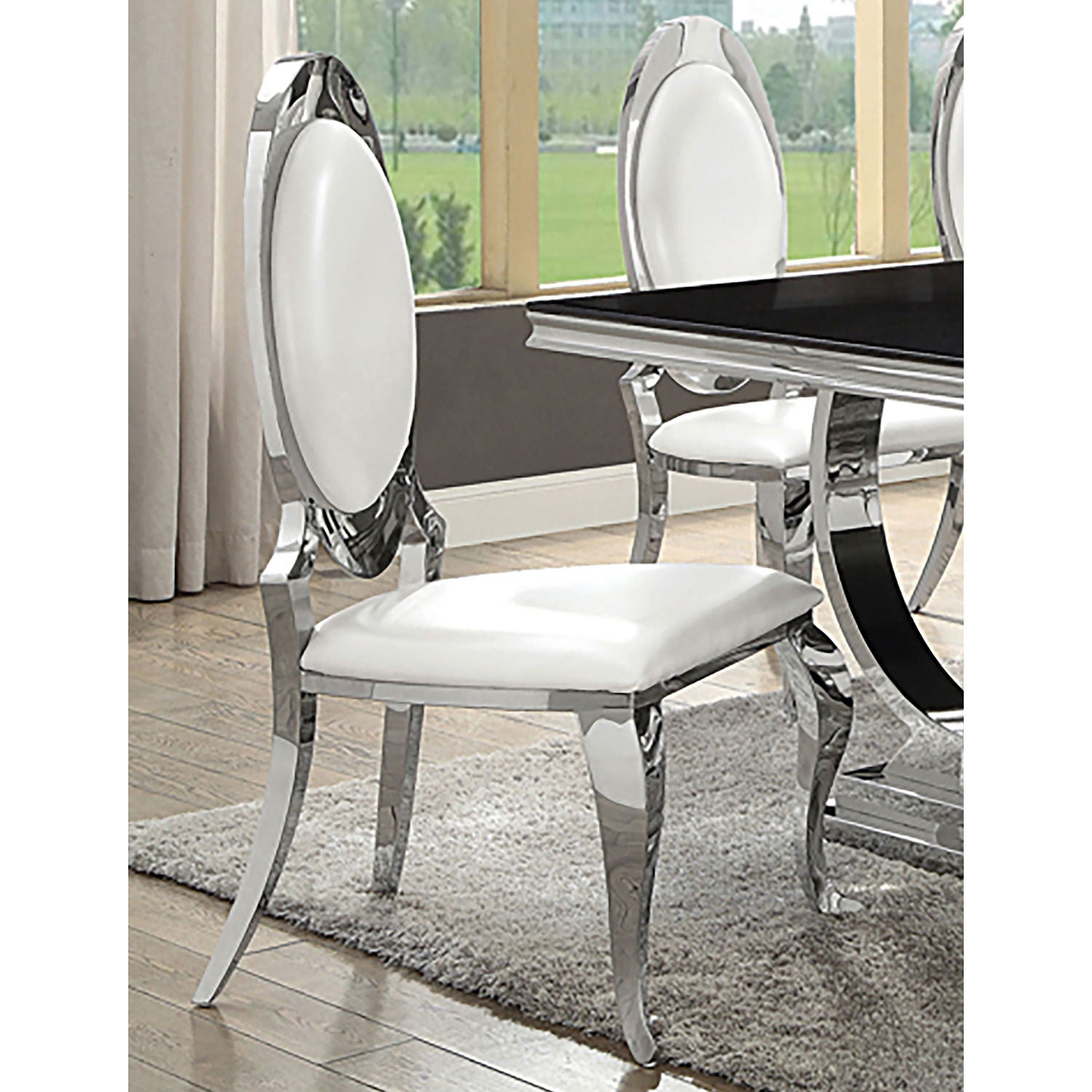 Elegant oval backrest with cabriole legs: blends traditional craftsmanship with modern flair High-shine chrome stainless steel frame: durable and visually...