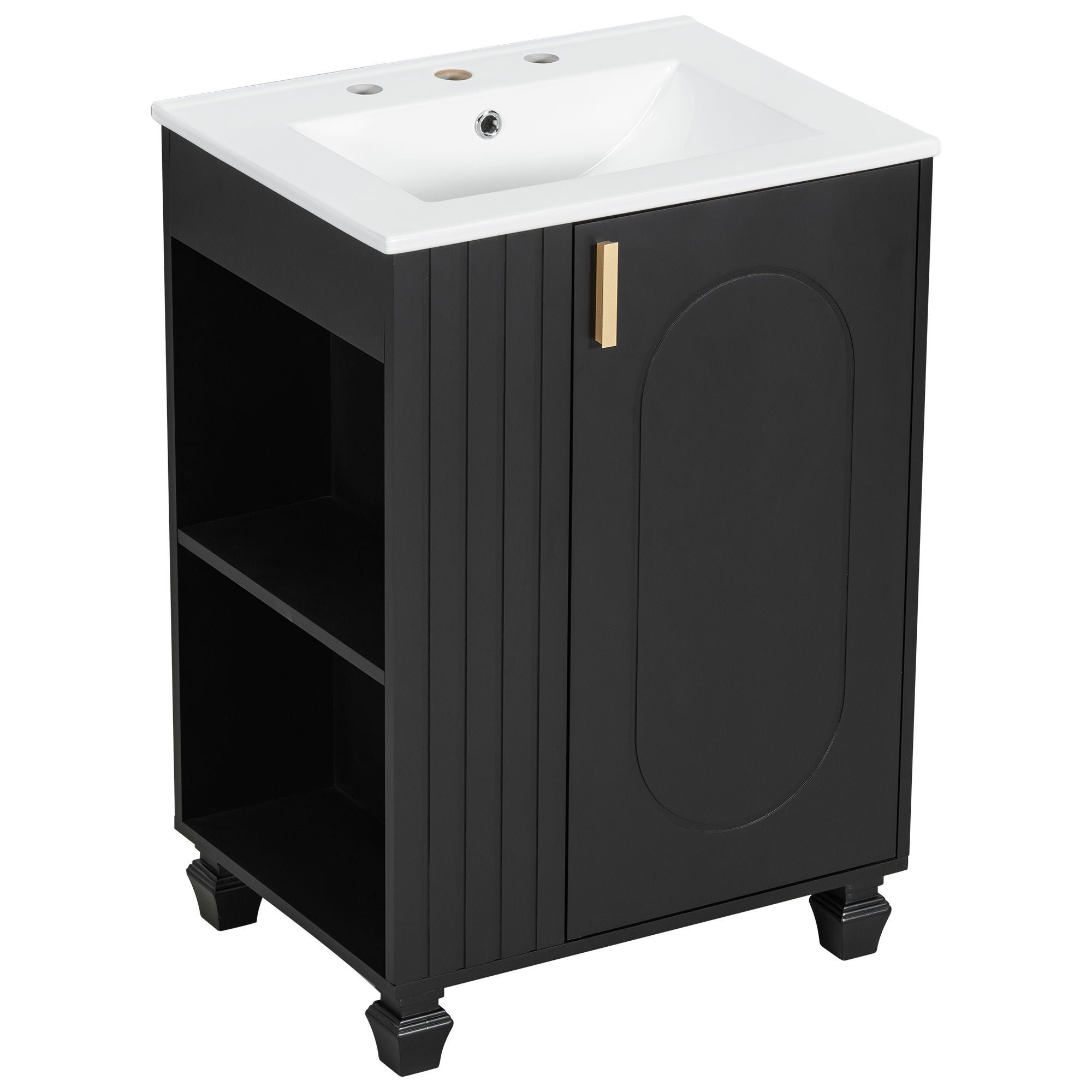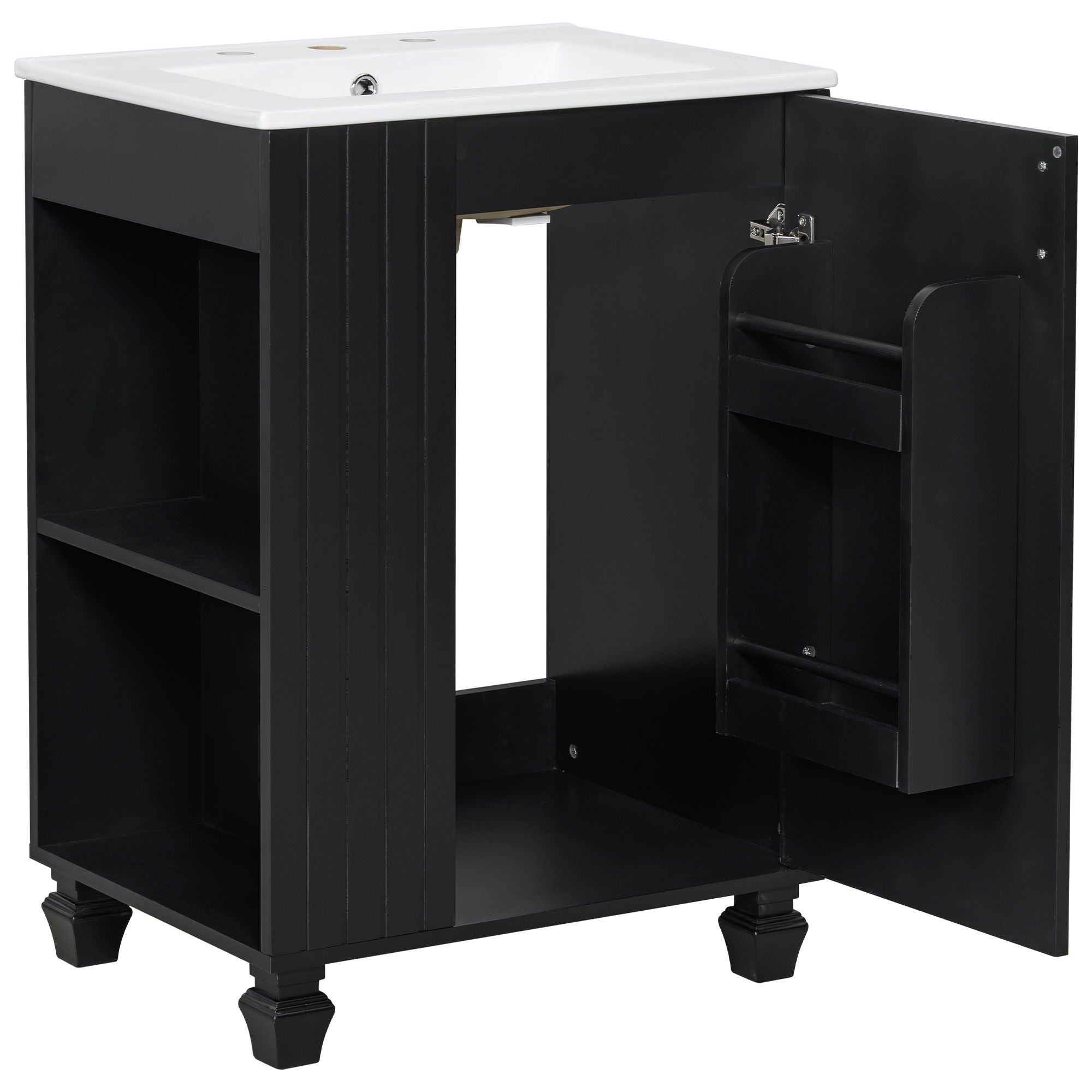 Classic Retro 24" Bathroom Vanity With Sink, Door Shelf, Side Open Storage Frame, Soft Closing Door - Black24.1"W x 18.3"D x 34.4"H - 71.65 lb