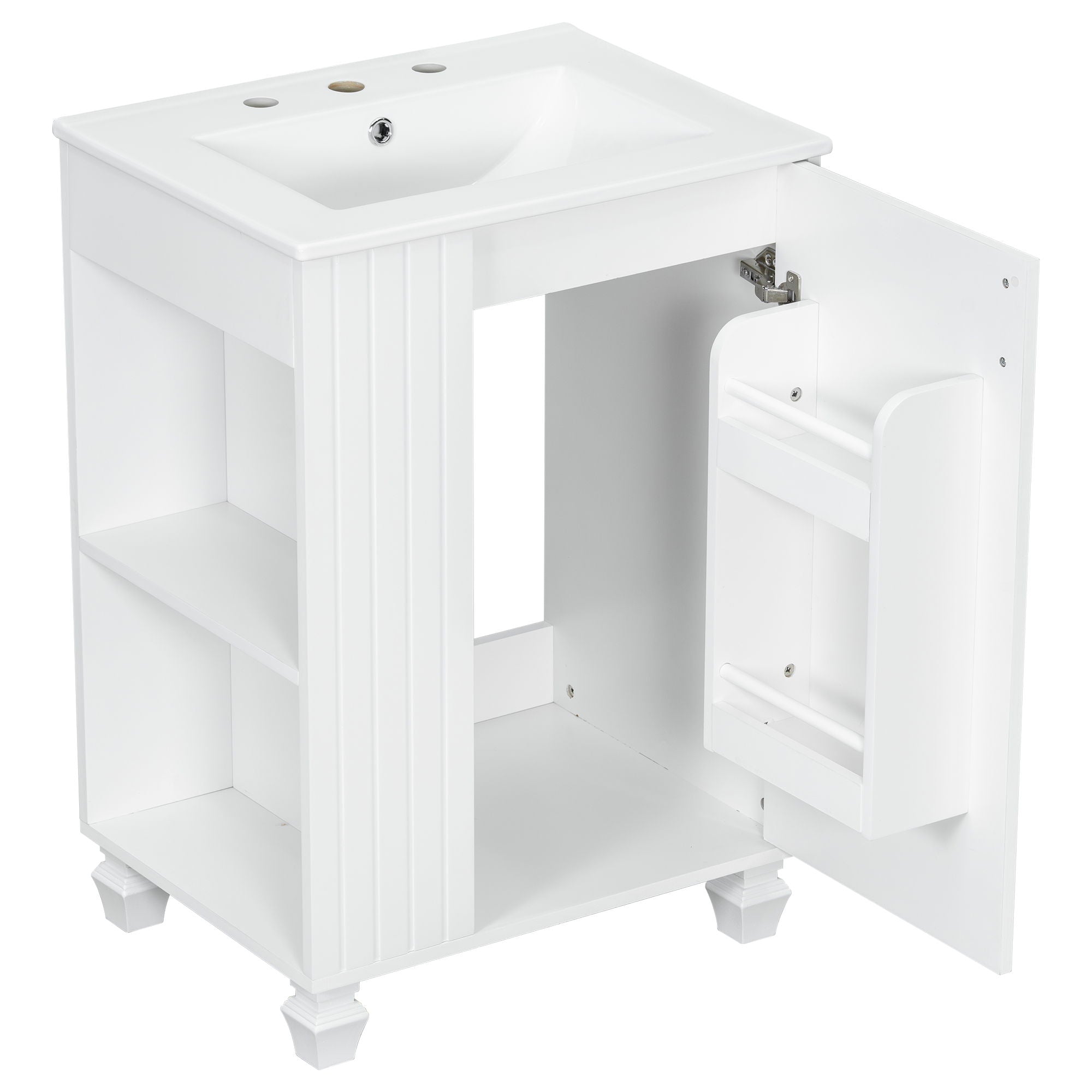 Classic Retro 24" Bathroom Vanity With Sink, Door Shelf, Side Open Storage Frame, Soft Closing Door - White24.1"W x 18.3"D x 34.4"H - 71.65 lb