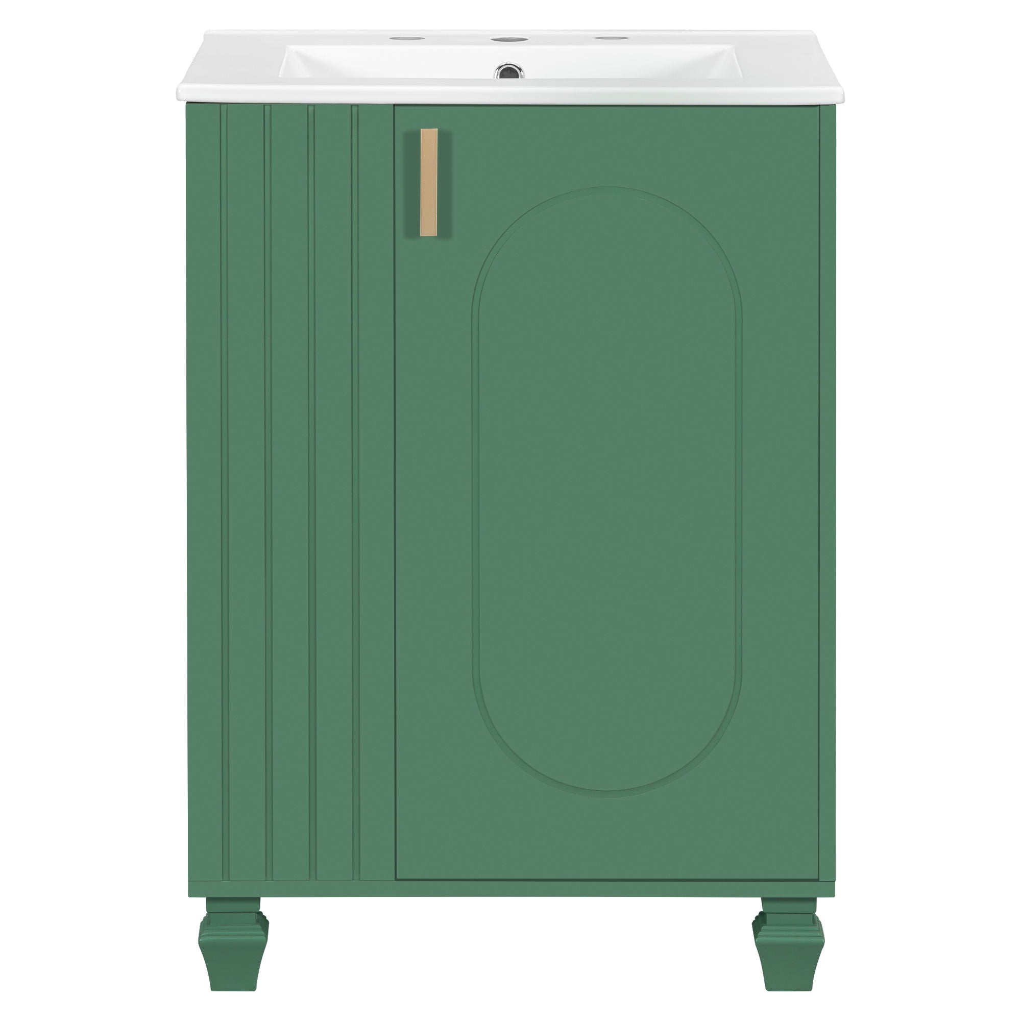 Classic Retro 24" Bathroom Vanity With Sink, Door Shelf, Side Open Storage Frame - Green24.1"W x 18.3"D x 34.4"H - 71.65 lb
