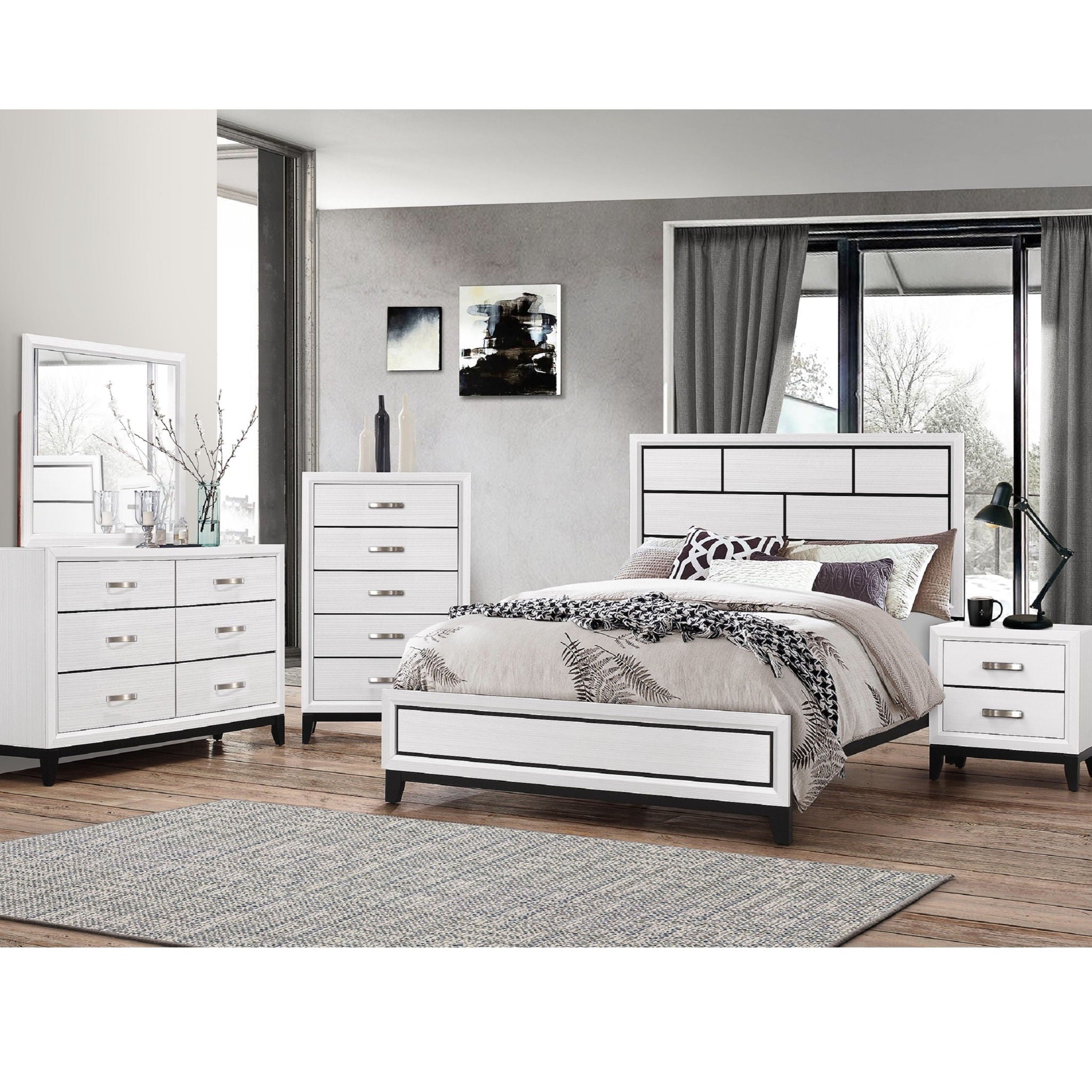 Contemporary Style: Modern design complements current bedroom decor Finish: Elegant neutral tone suits various interior themes Five Storage Drawers: Ample...