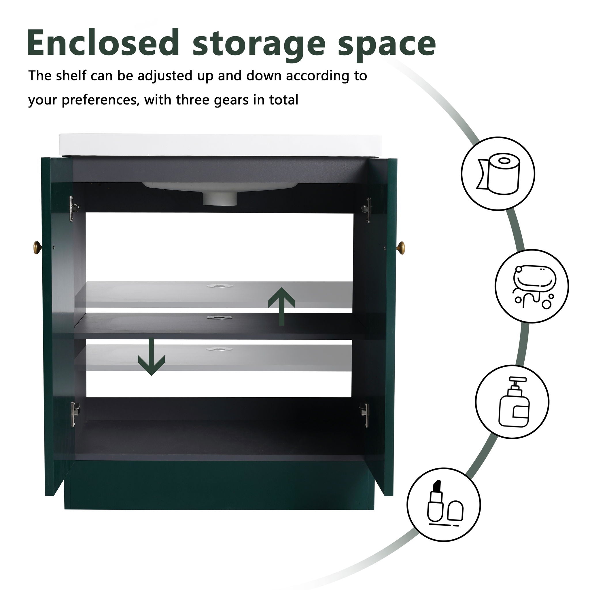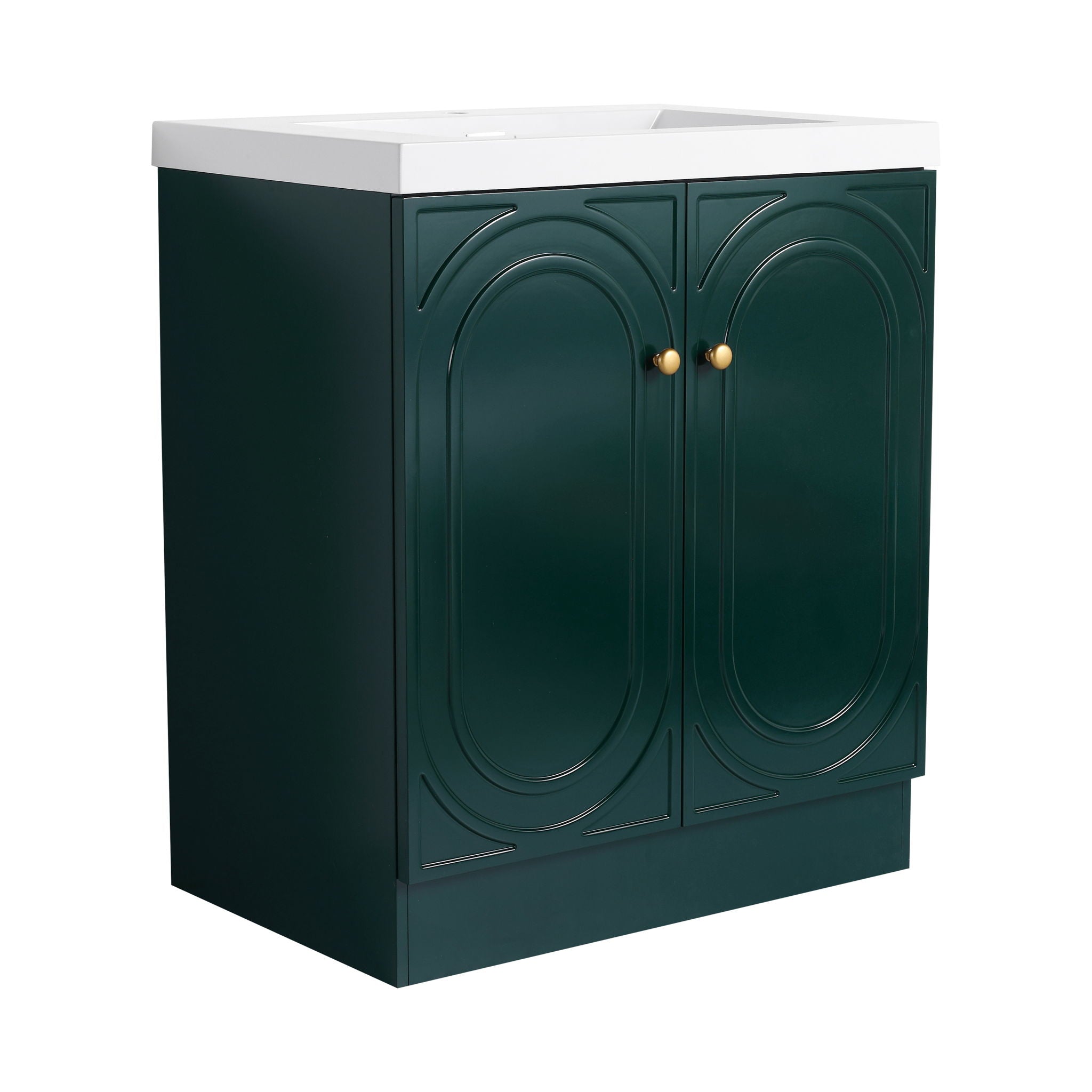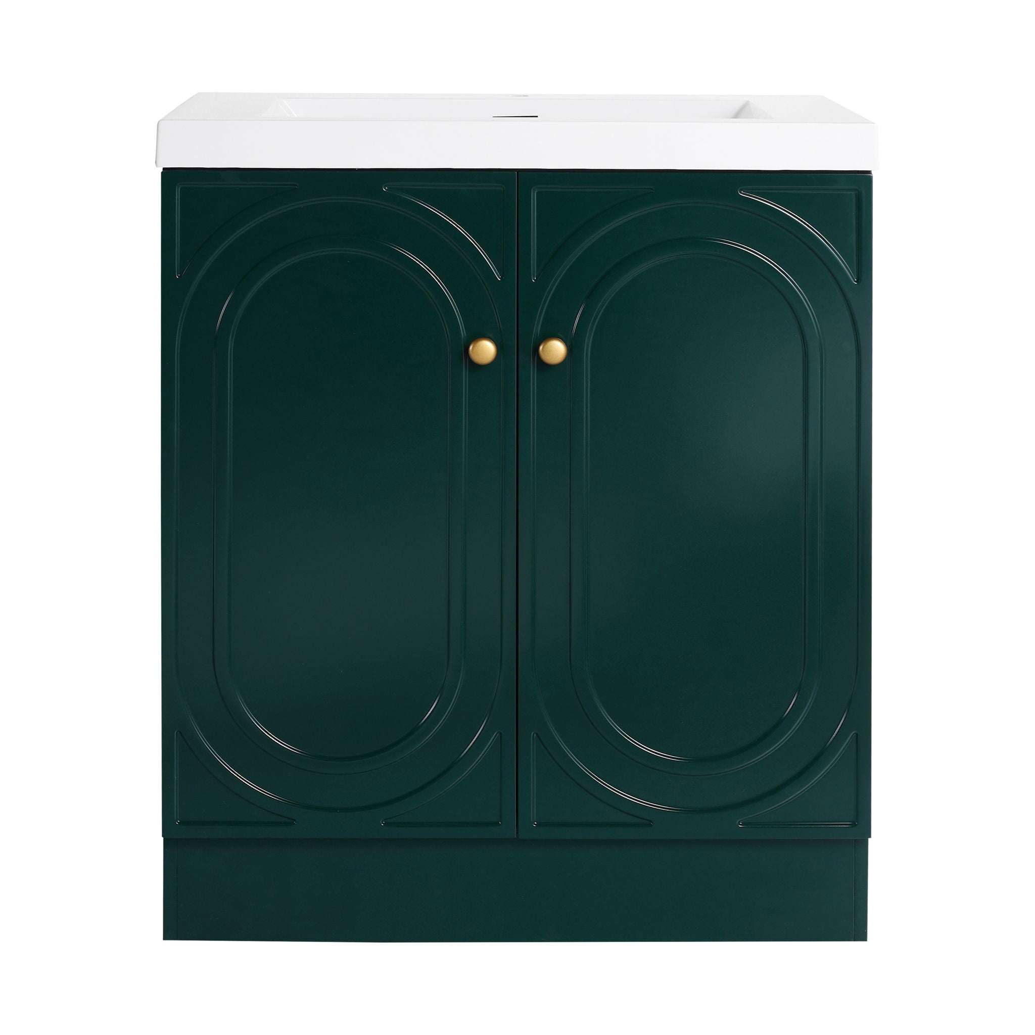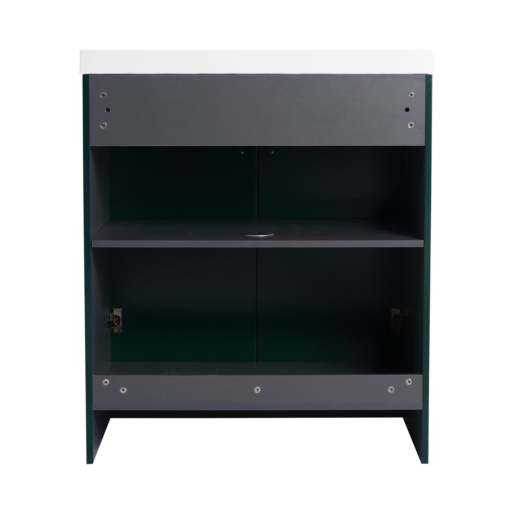 Contemporary Freestanding Bathroom Vanity With White Resin Sink & Soft Close Cabinet Doors - Dark Green29.5"W x 19.7"D x 35.4"H - 81.11 lb