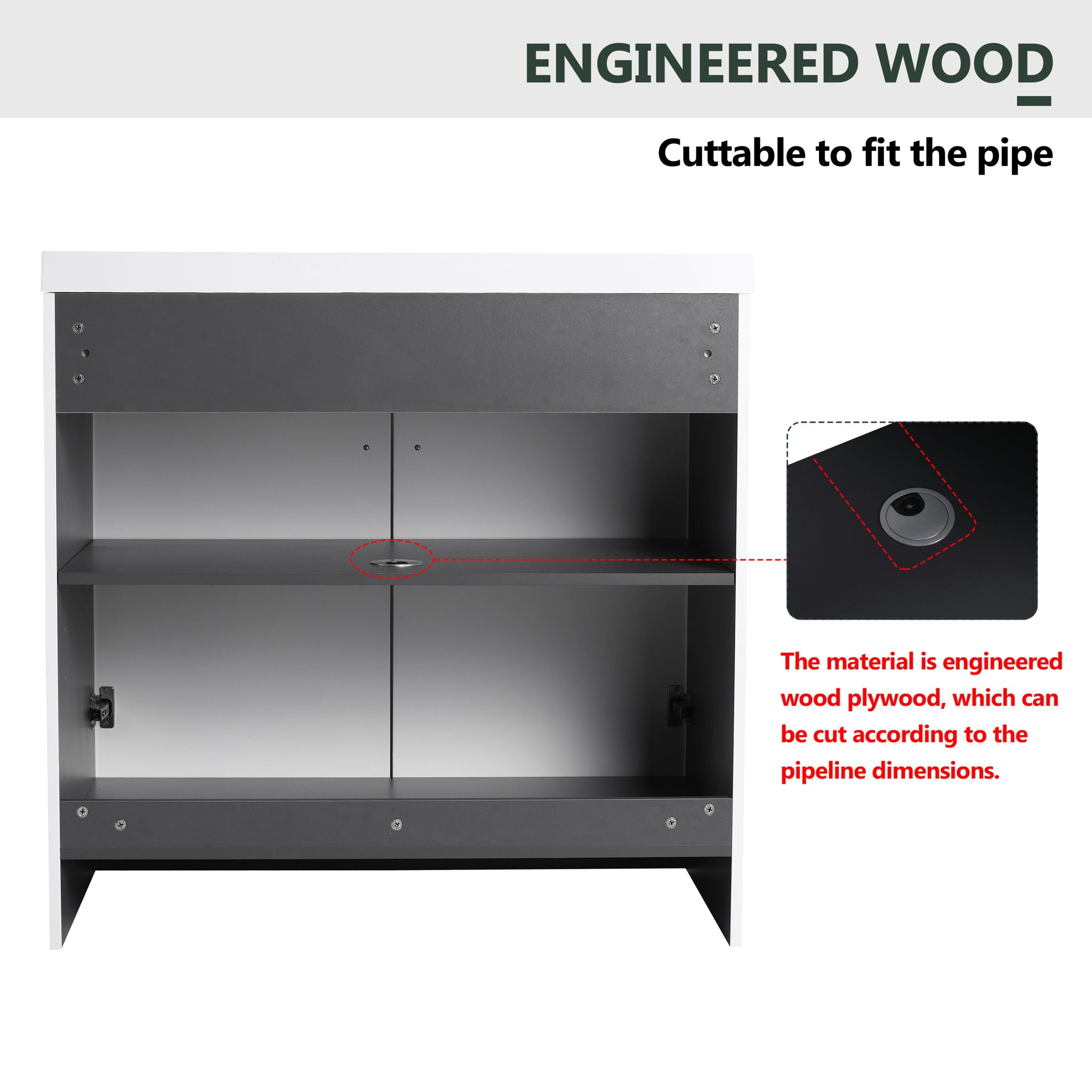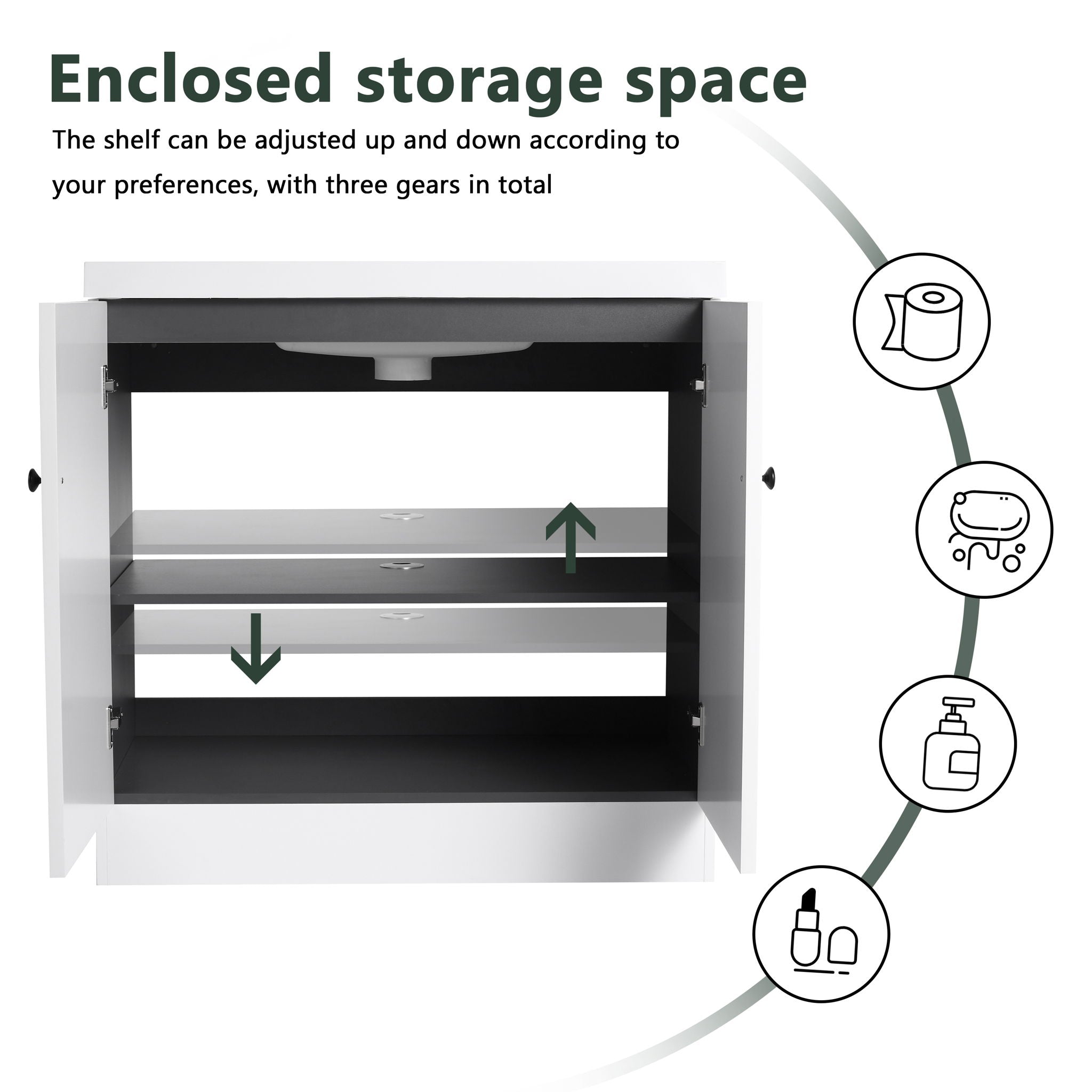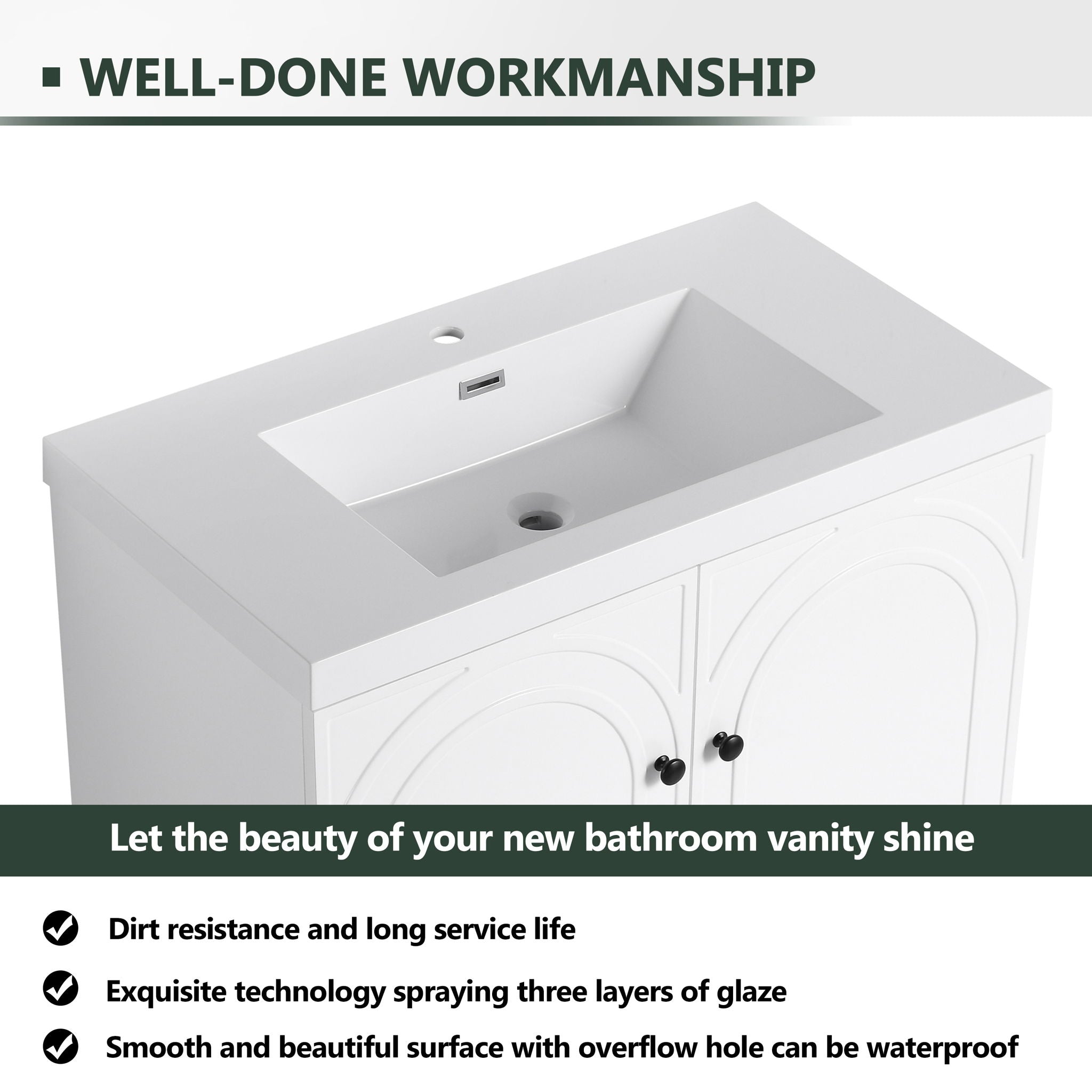 Modern Freestanding Bathroom Vanity Resin Sink With Soft Close Cabinet Doors - White29.5"W x 19.7"D x 35.4"H - 81.11 lb